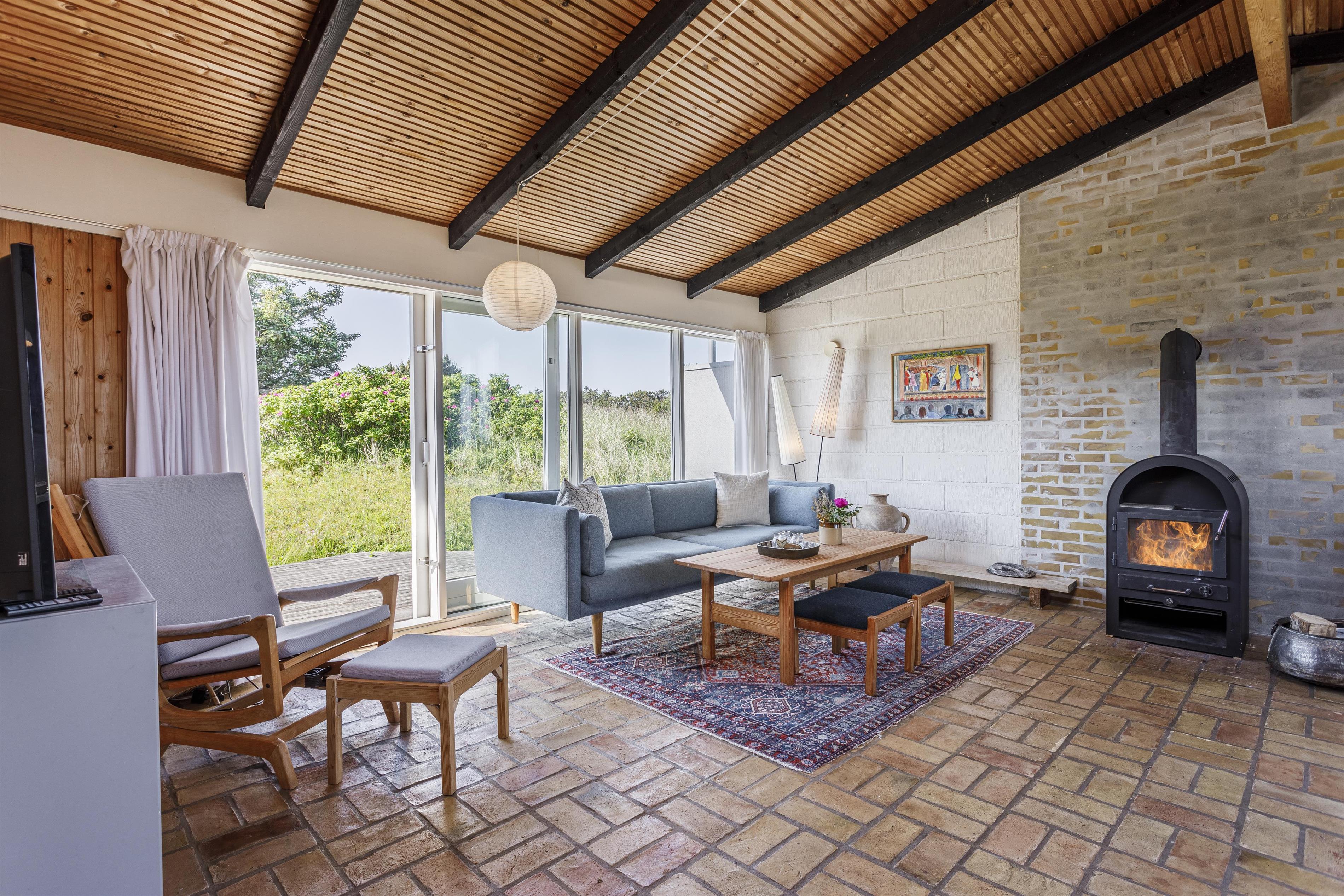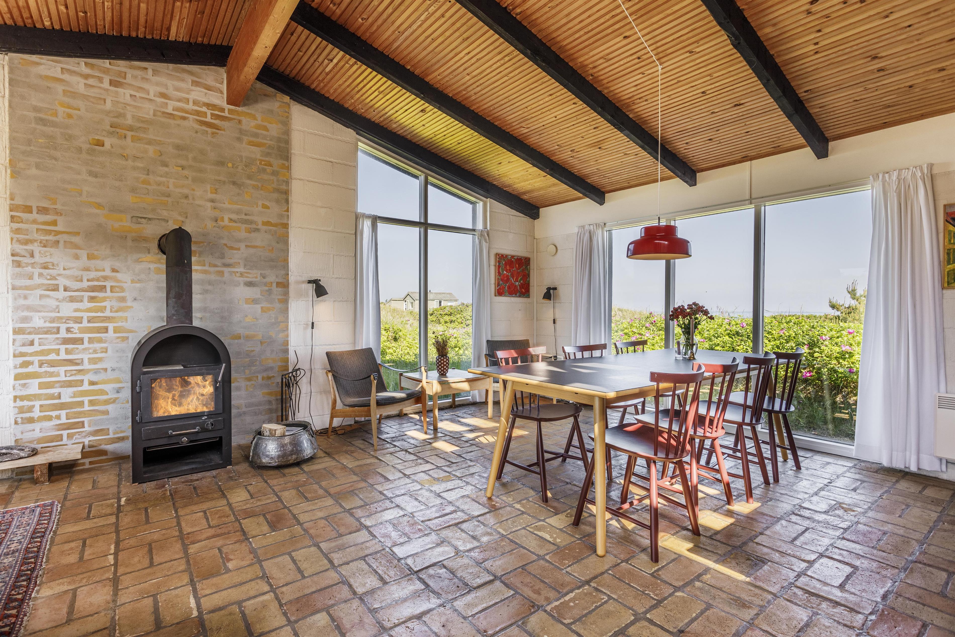 Dette charmerende feriehus er indrettet med fokus på hygge og funktionalitet. Huset rummer tre praktiske soverum, et badeværelse og et opholdsrum med åbent køkken. De store vinduespartier trækker lyset ind, og fra flere rum kan I nyde udsigten over havet. Brændeovnen i stuen skaber en varm atmosfære på kølige aftener, mens det rummelige køkken og spiseområdet indbyder til fælles madlavning og samvær. I opholdsrummet er der god plads til alle. Tag for eksempel et spil med familien, mens I gennemgår dagens oplevelser. Her finder I alt, hvad I har brug for til en vellykket ferie. Desuden tilføjer annekset ekstra fleksibilitet med mulighed for yderligere opredning – perfekt til større familier.