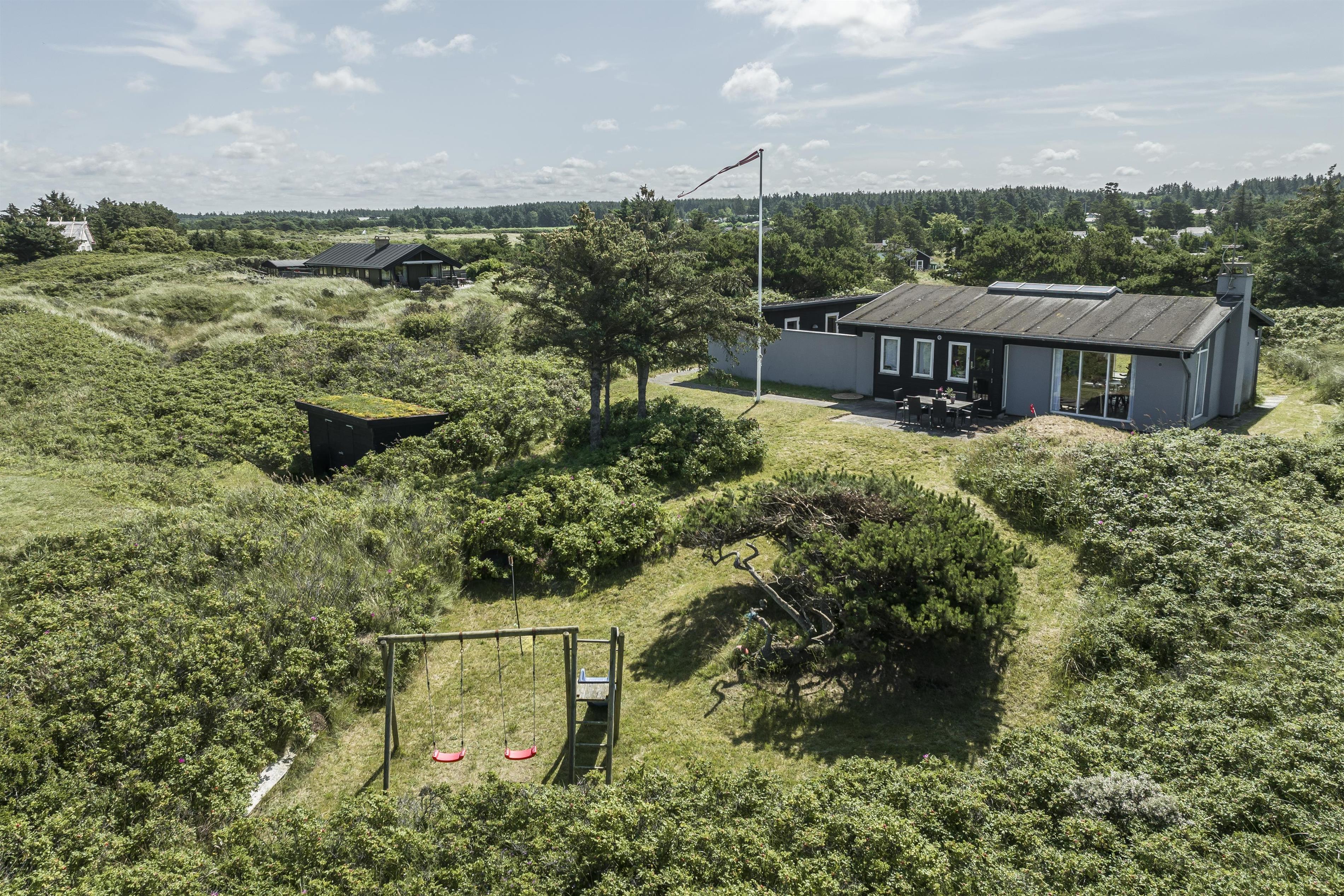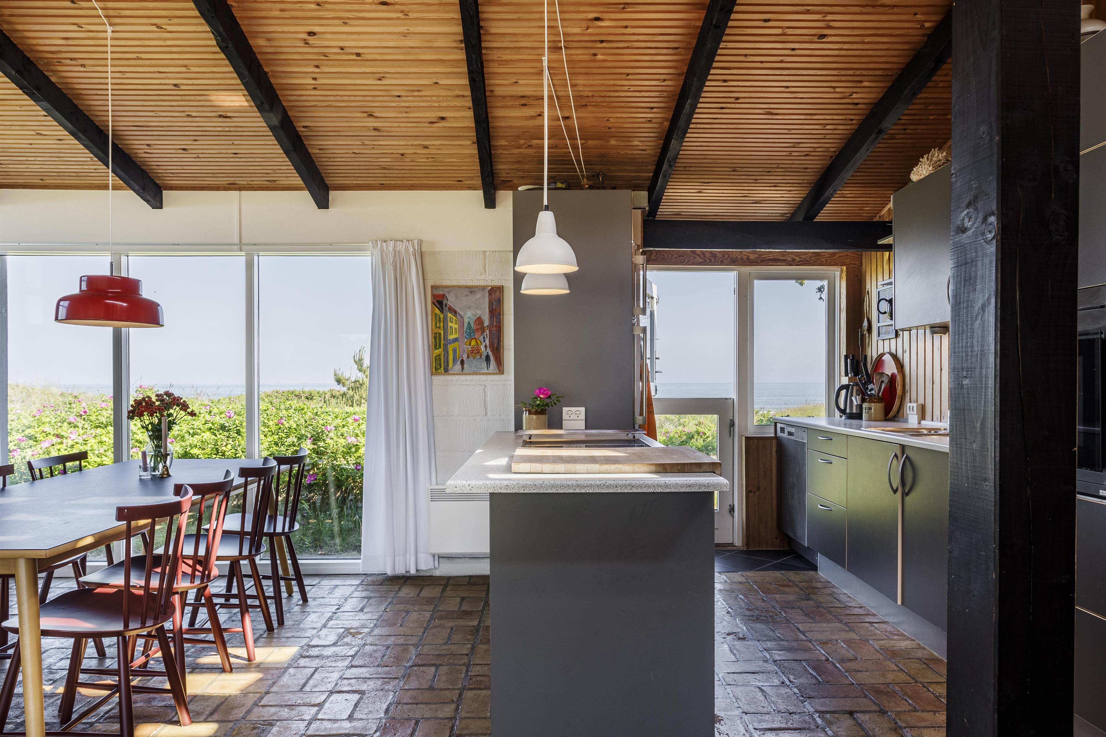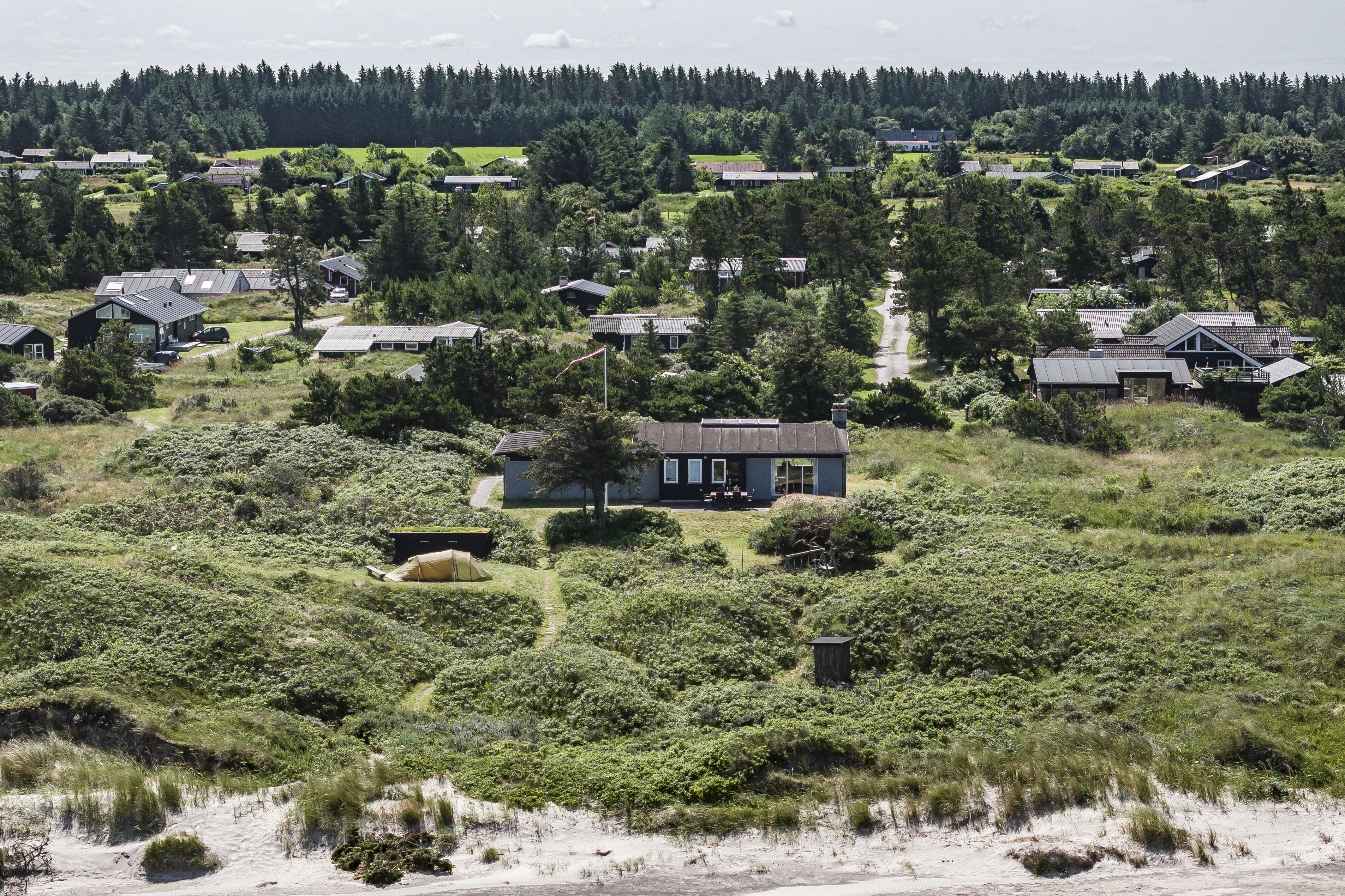 Sommerhuset ligger midt i dejlig natur i Kjul og med en betagende havudsigt fra det meste af huset. Udenfor venter flere terrasser og en hyggelig gårdhave, hvor I kan finde læ og nyde solen hele dagen alt efter vind og vejr. Fra grunden er der direkte adgang til stranden via en sti – perfekt til en morgenløbetur eller en forfriskende dukkert i havet. Oplev en sommeraften på terrassen med solnedgangen over Vesterhavet som baggrund – en uforglemmelig oplevelse.