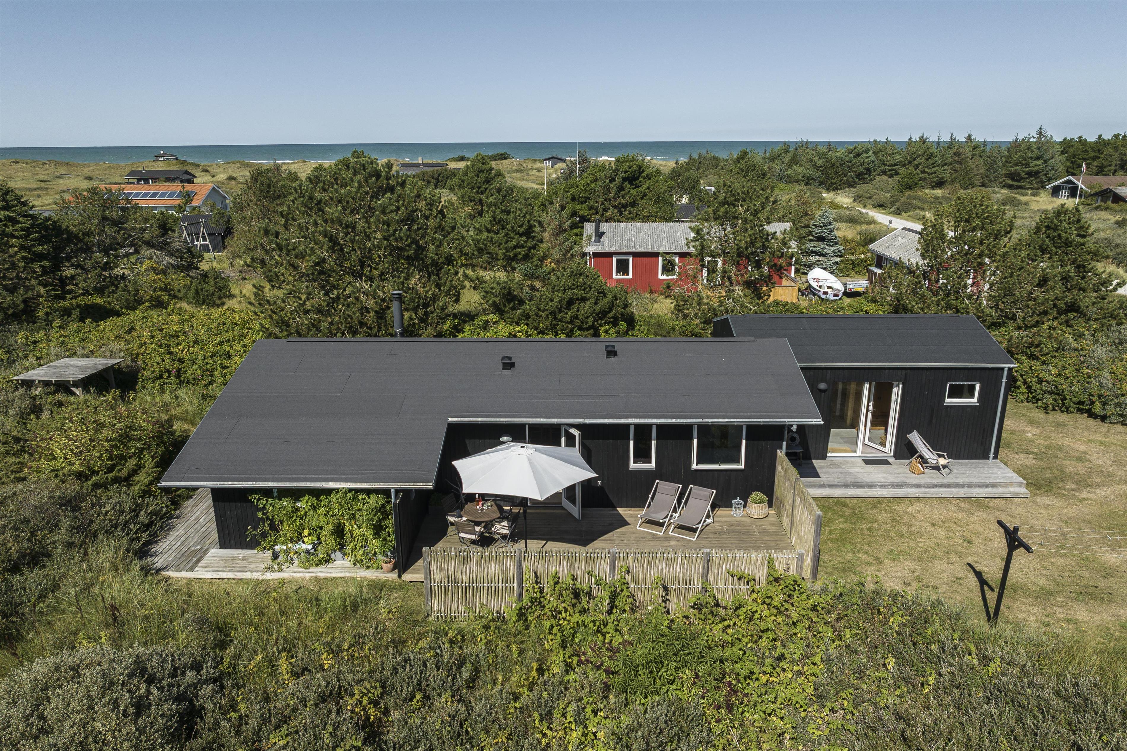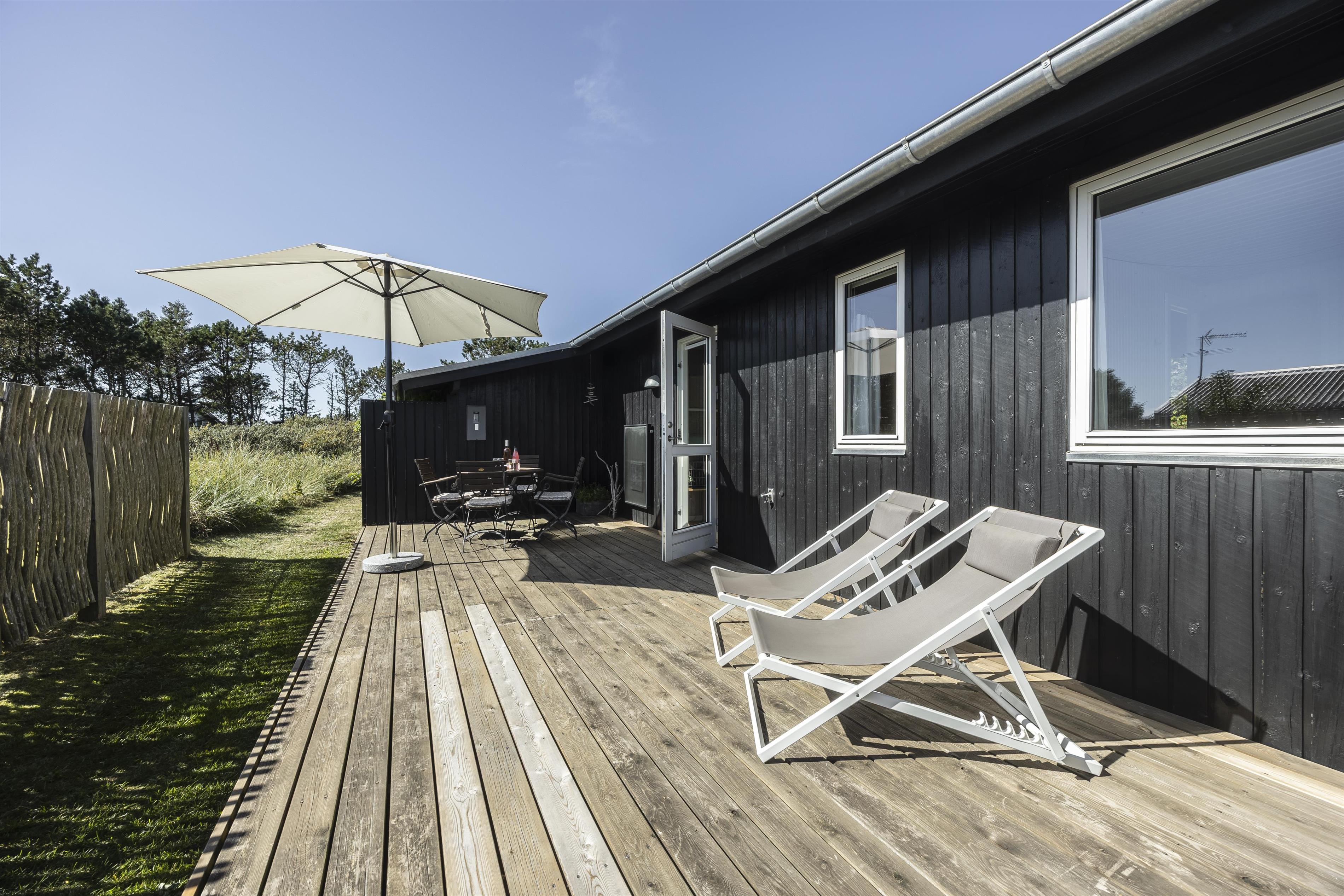 Drømmer du om en familieferie tæt på havet, hvor du kan mærke roen, høre bølgernes brusen og nyde solen fra flere skønne terrasser? Så er dette feriehus ved Kjul Strand på Vestkysten i Nordjylland det perfekte valg.