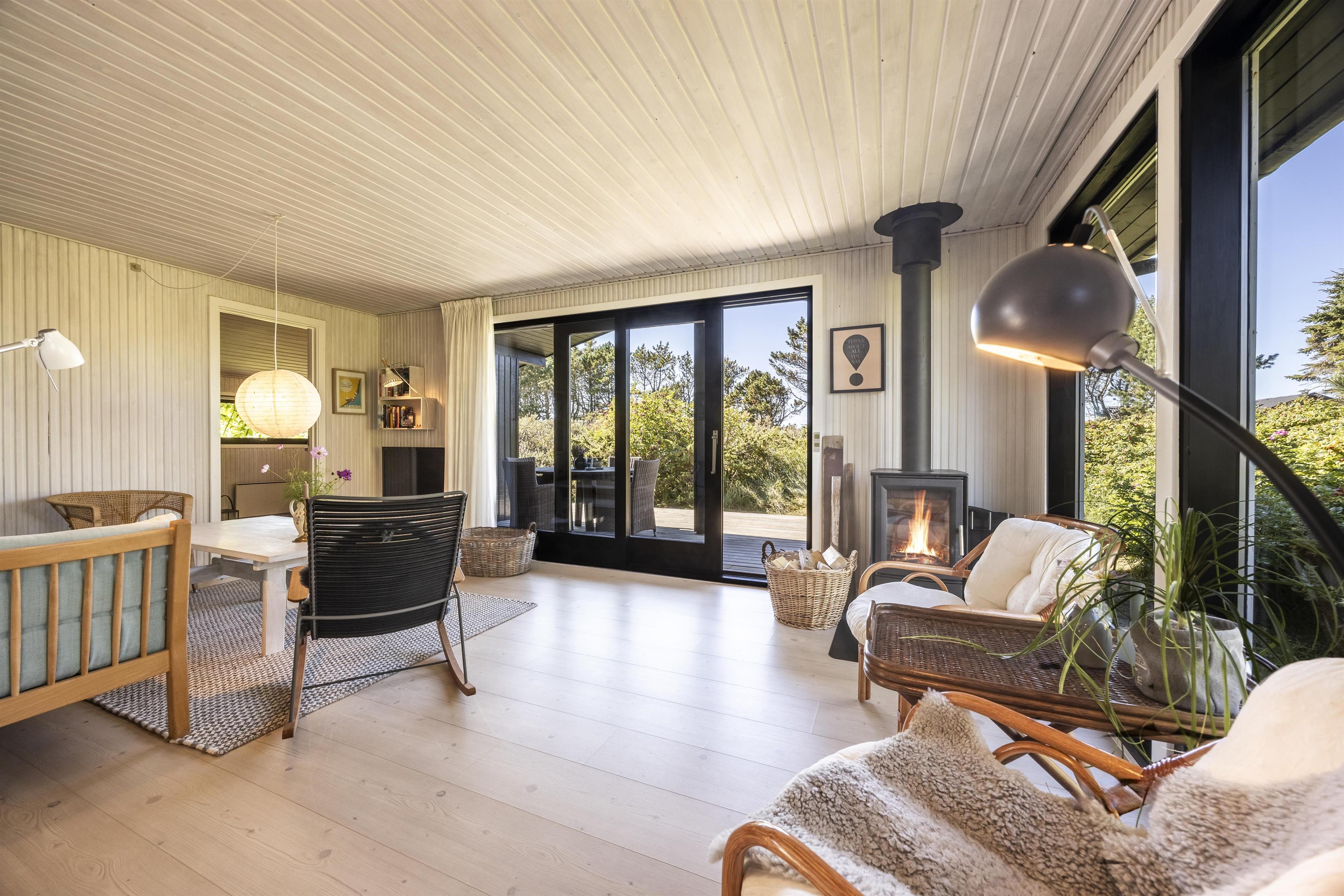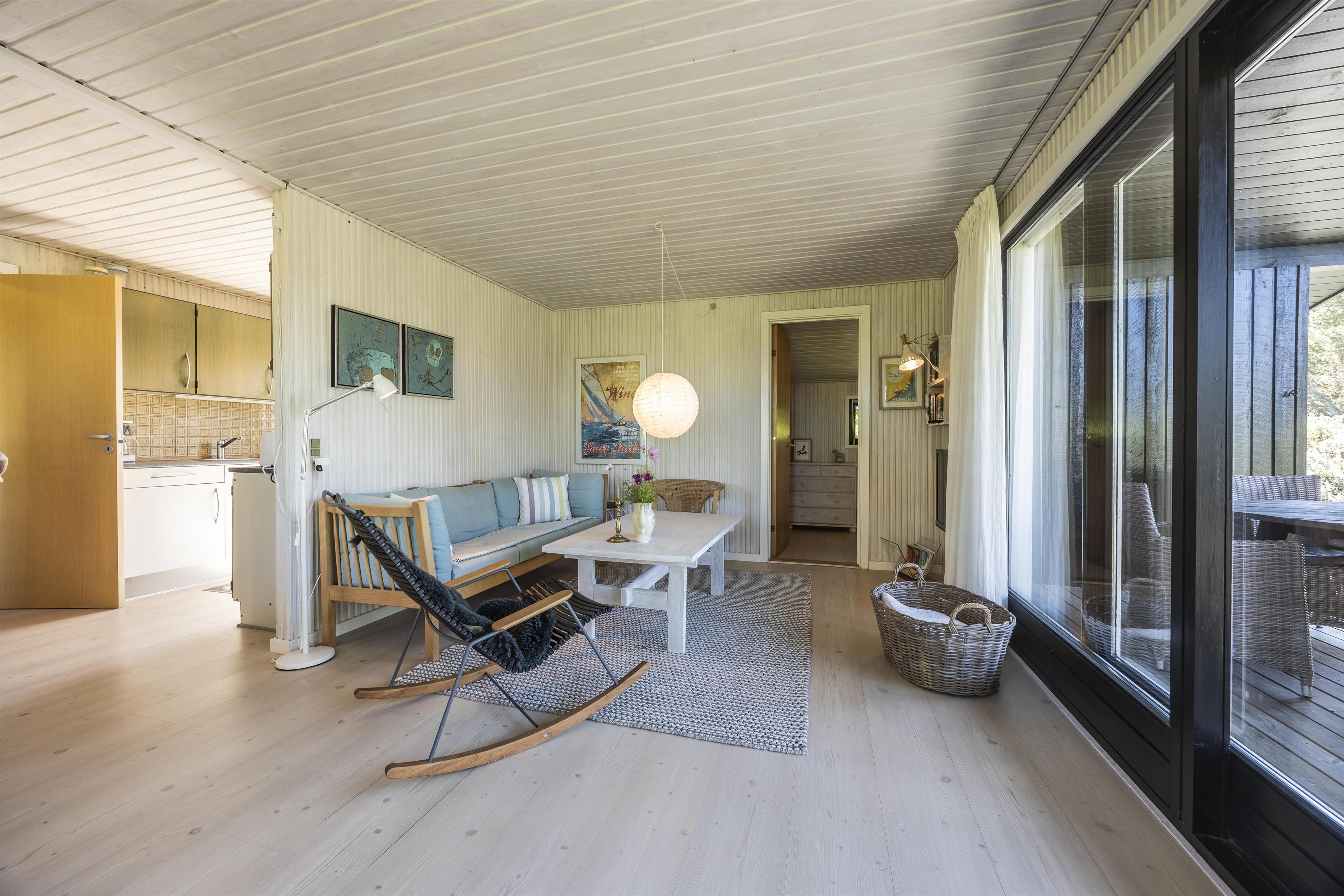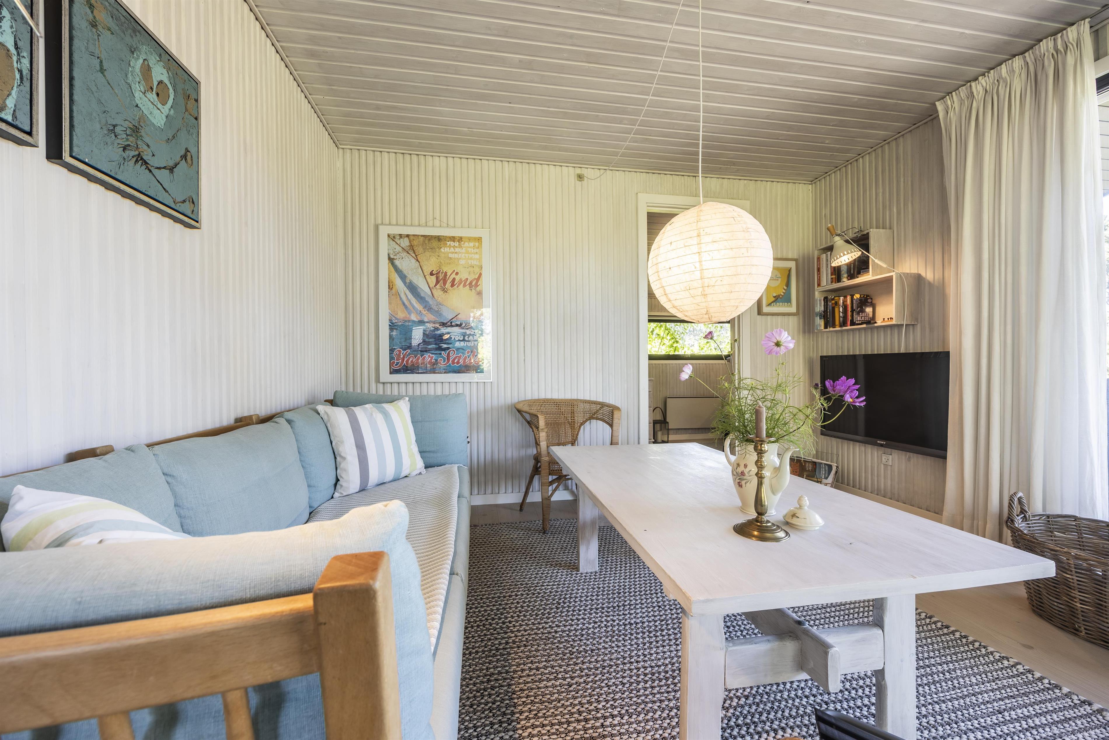 Indenfor mødes du af en varm og hjemlig atmosfære, hvor der er kræset for detaljerne. Feriehuset er løbende renoveret, så komfort og charme går hånd i hånd. Køkkenet er fra husets opførelse, men stadig i virkelig god stand med nye hvidevarer og fuldt udstyret til en afslappende sommerhusferie. I 2021 kom en skøn tilbygning til med ekstra soveværelse, badeværelse og et hyggeligt opholdsrum – oplagt til brætspil, kortspil eller stille stunder med en god bog.