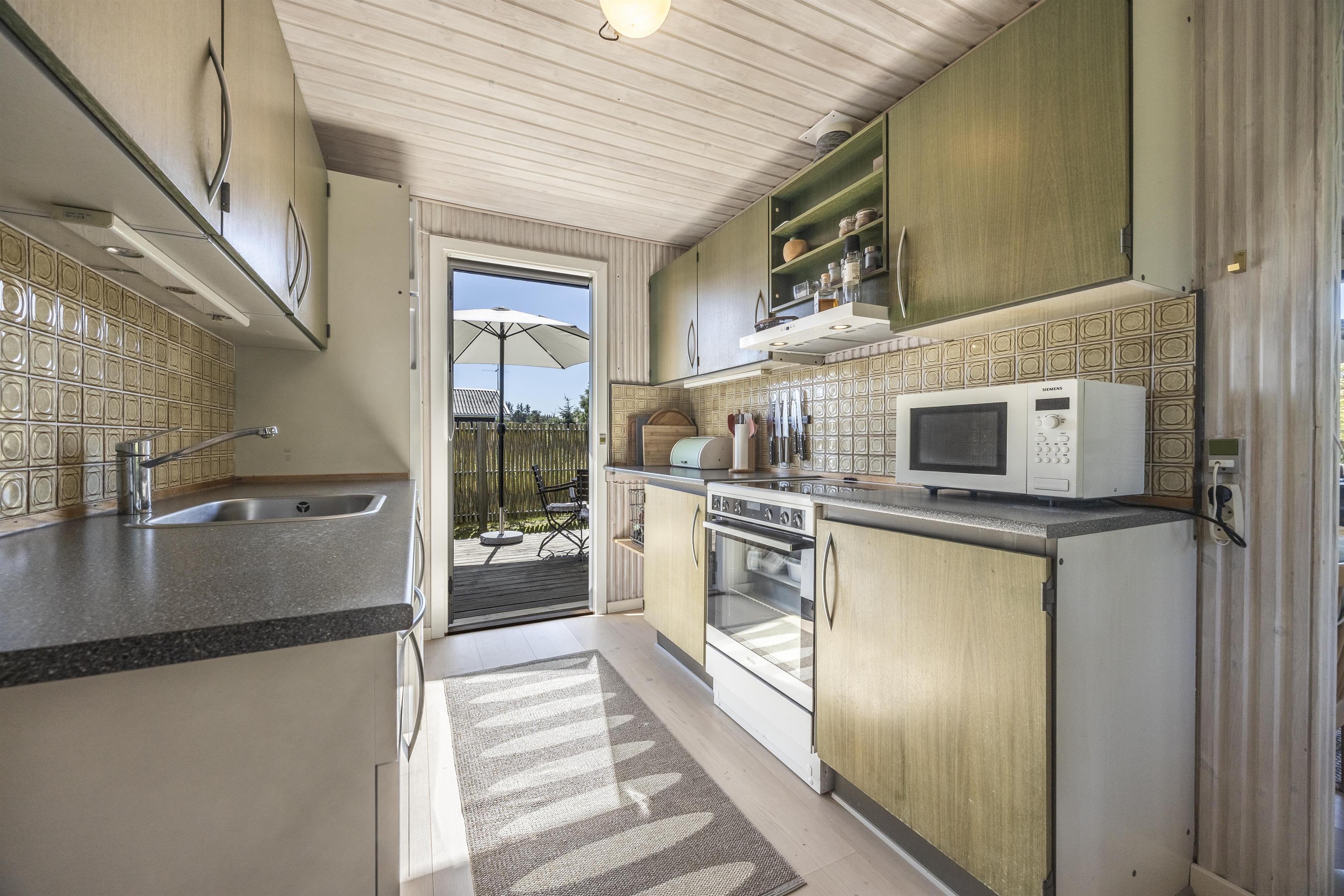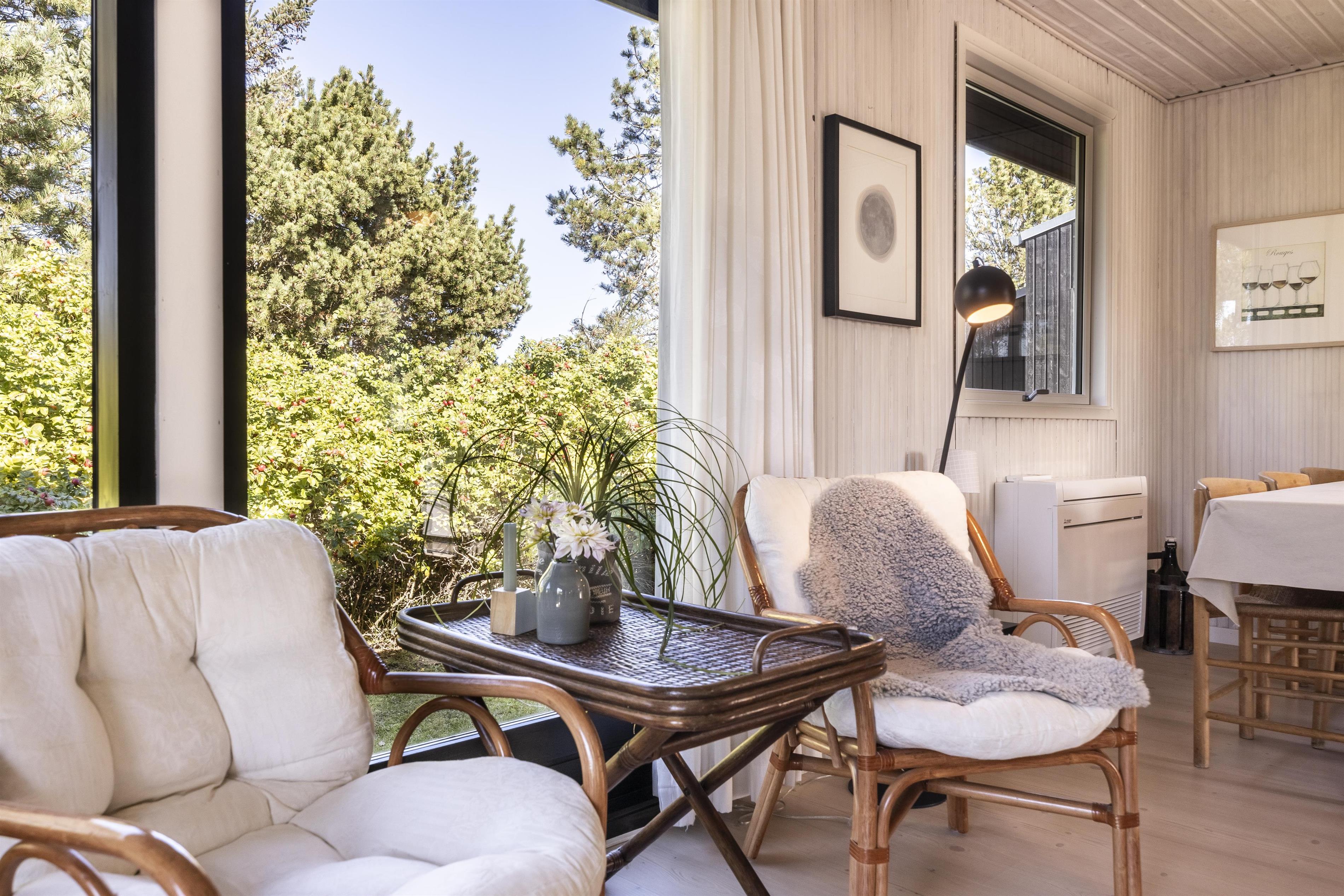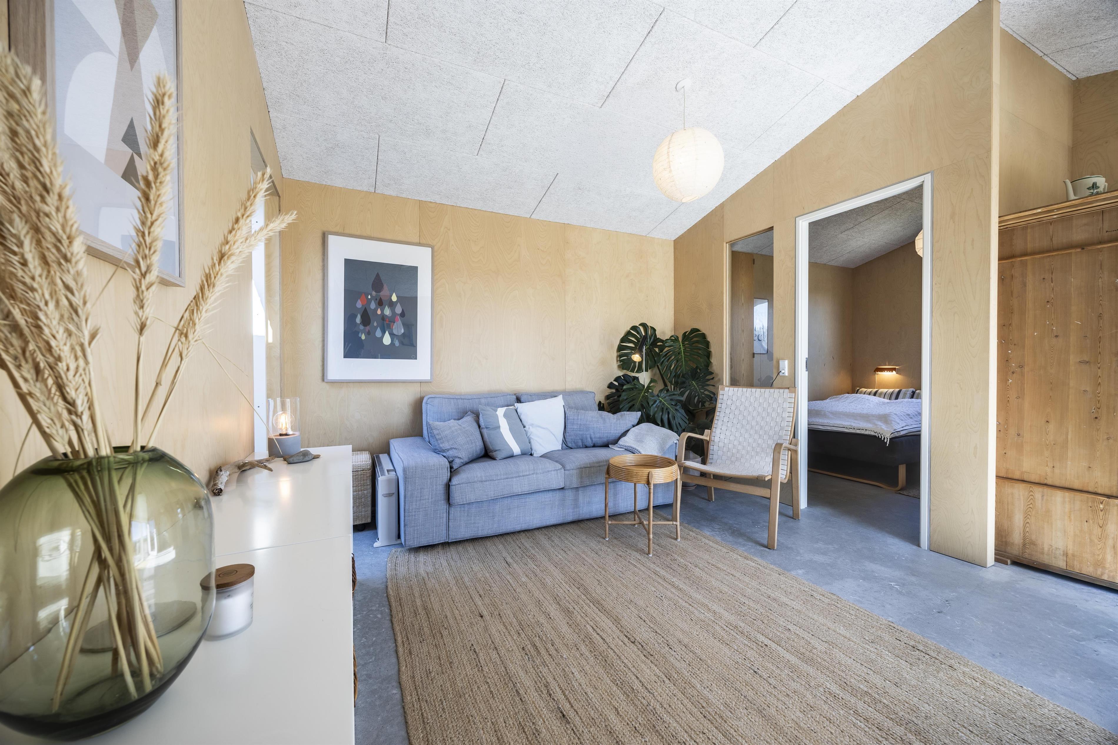 Indenfor mødes du af en varm og hjemlig atmosfære, hvor der er kræset for detaljerne. Feriehuset er løbende renoveret, så komfort og charme går hånd i hånd. Køkkenet er fra husets opførelse, men stadig i virkelig god stand med nye hvidevarer og fuldt udstyret til en afslappende sommerhusferie. I 2021 kom en skøn tilbygning til med ekstra soveværelse, badeværelse og et hyggeligt opholdsrum – oplagt til brætspil, kortspil eller stille stunder med en god bog.