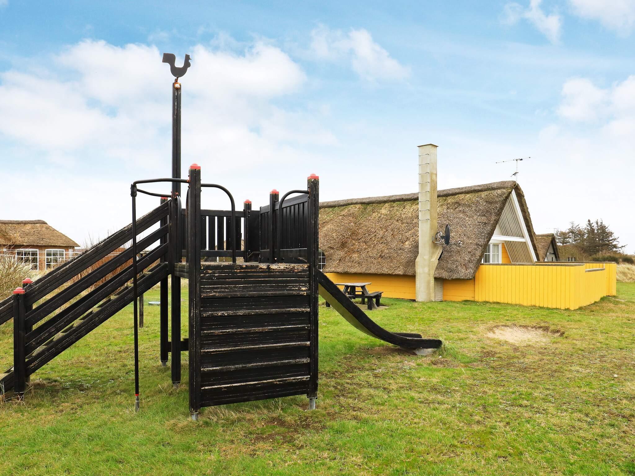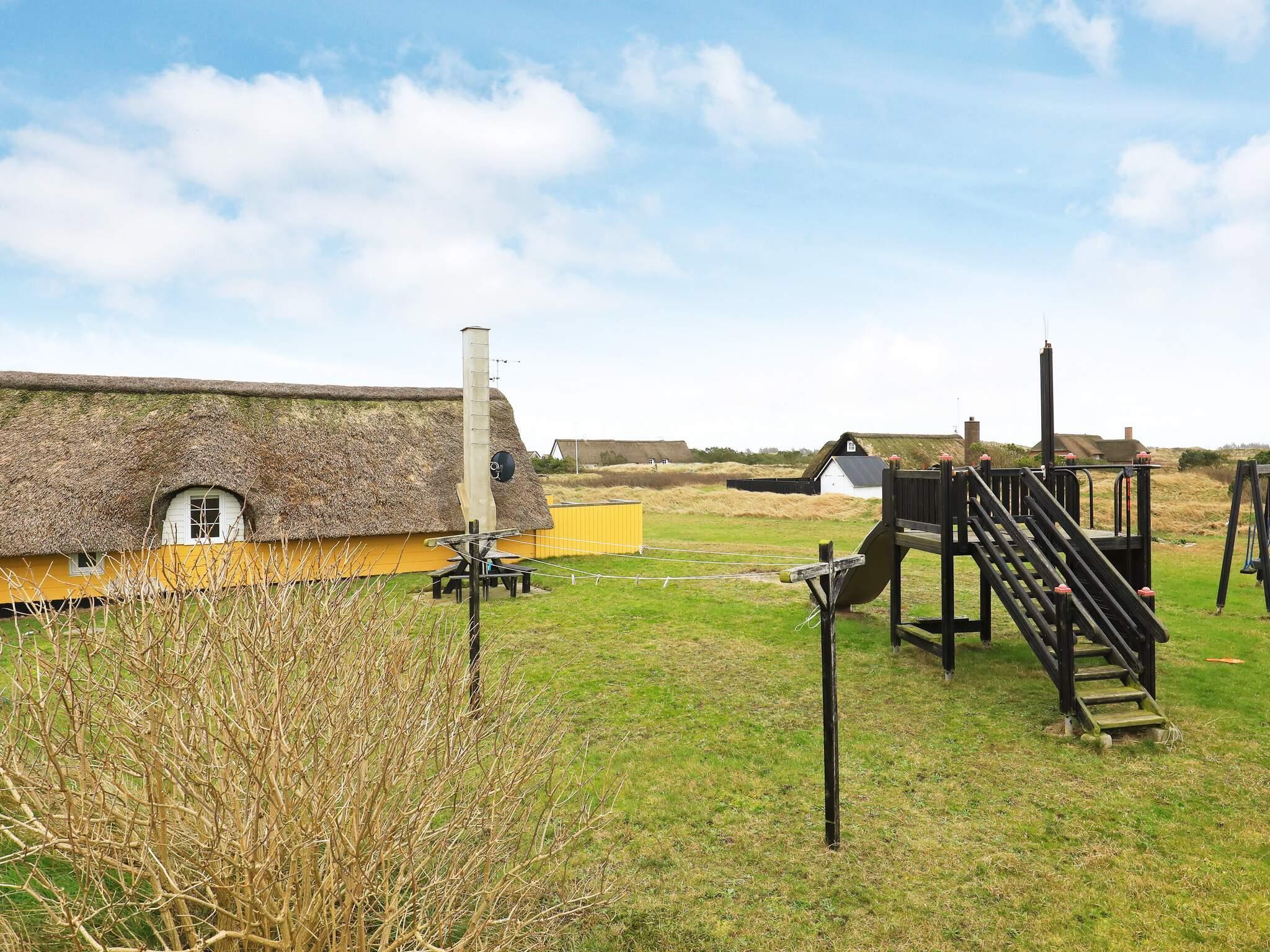 Fra stuen er der udgang til sydvest vendt terrasse med lukket terrasse, der giver læ og hvor solnedgangen mod vest også kan nydes. På grunden er der både sandkasse, gynge og legetårn til børnene at boltre sig i. Der er gasgrill til huset. Sommerhuset er beliggende i Klegod, kun godt 5 km fra den populære badeby Søndervig.