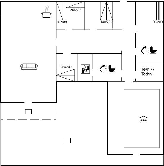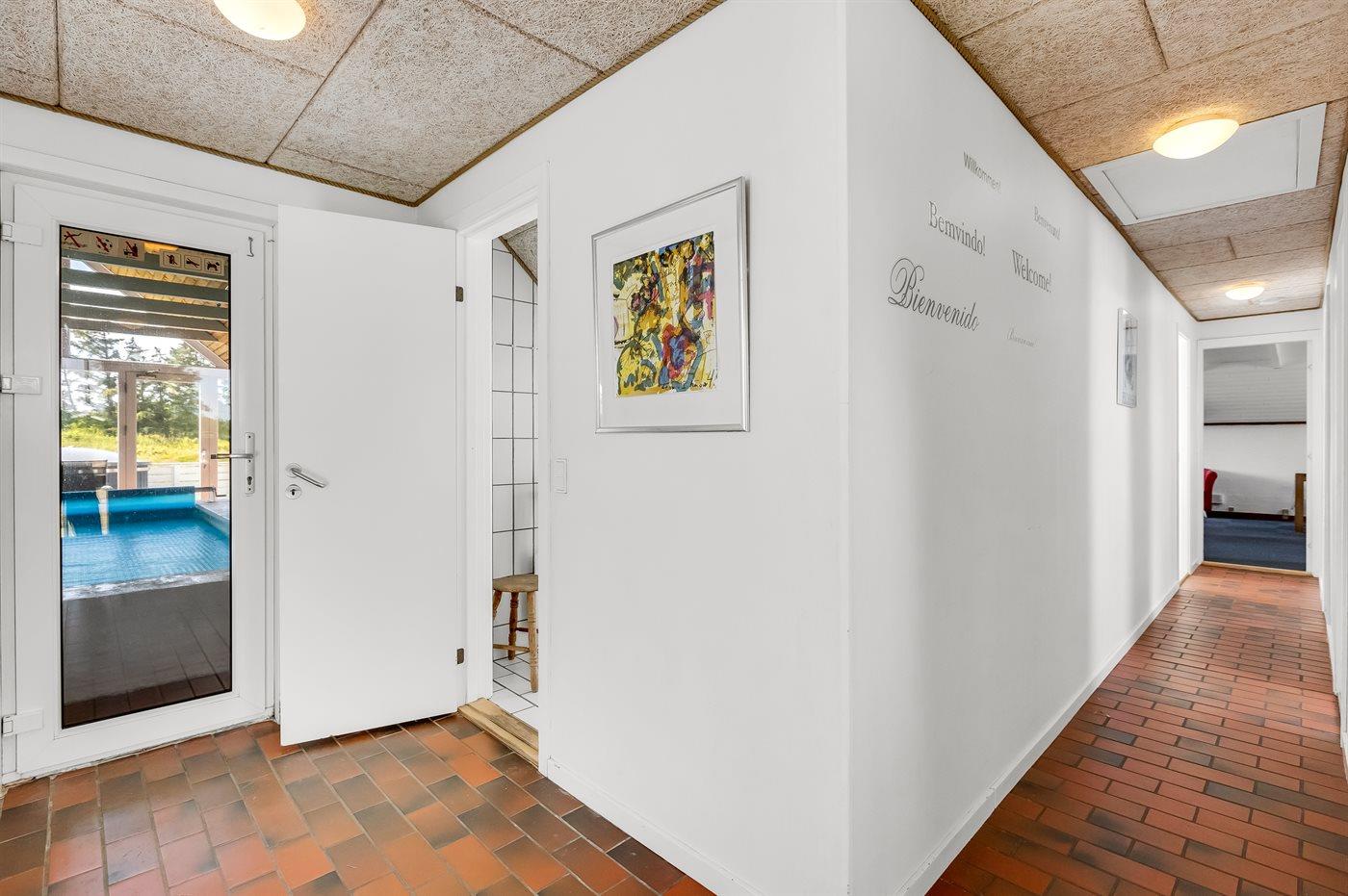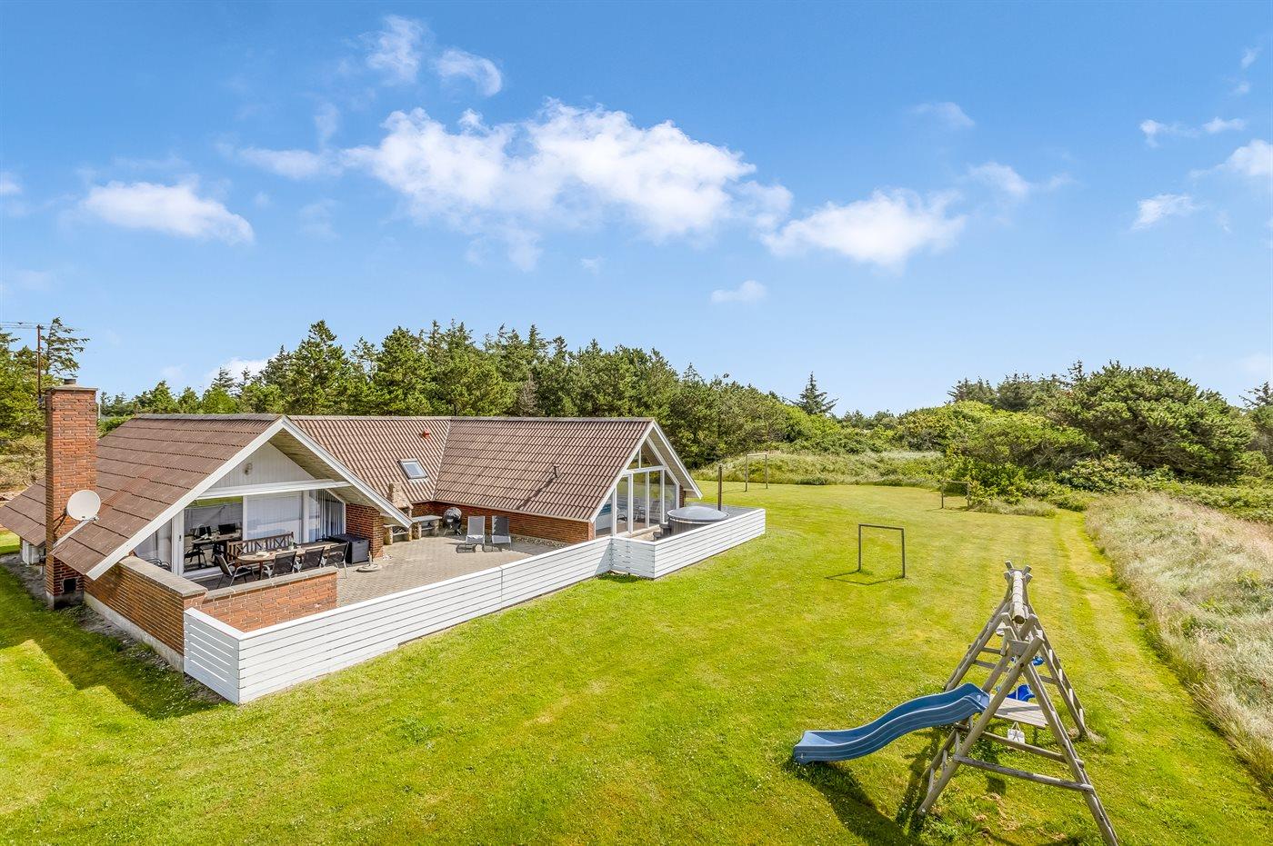 Rummeligt og velholdt sommerhus i sten med swimmingpool og sauna. Huset er løbende moderniseret og ligger på en stor naturgrund. Til huset hører et stort og dejligt, lukket terrasseareal med gode læforhold og havemøbler samt udendørs grill/pejs. På grunden, hvor der er gode legemuligheder, findes legetårn med gynge og rutsjebane samt sandkasse. Der er installeret 2 energibesparende varmepumper; 1 luft til vand varmepumpe i swimmingpoolafdelingen og 1 luft til luft varmepumpe i opholdsstuen. Huset er velegnet til såvel 1 som flere familier. Et godt sommerhus beliggende i et område med gode aktivitetsmuligheder, og få min. kørsel fra badebyen Søndervig.