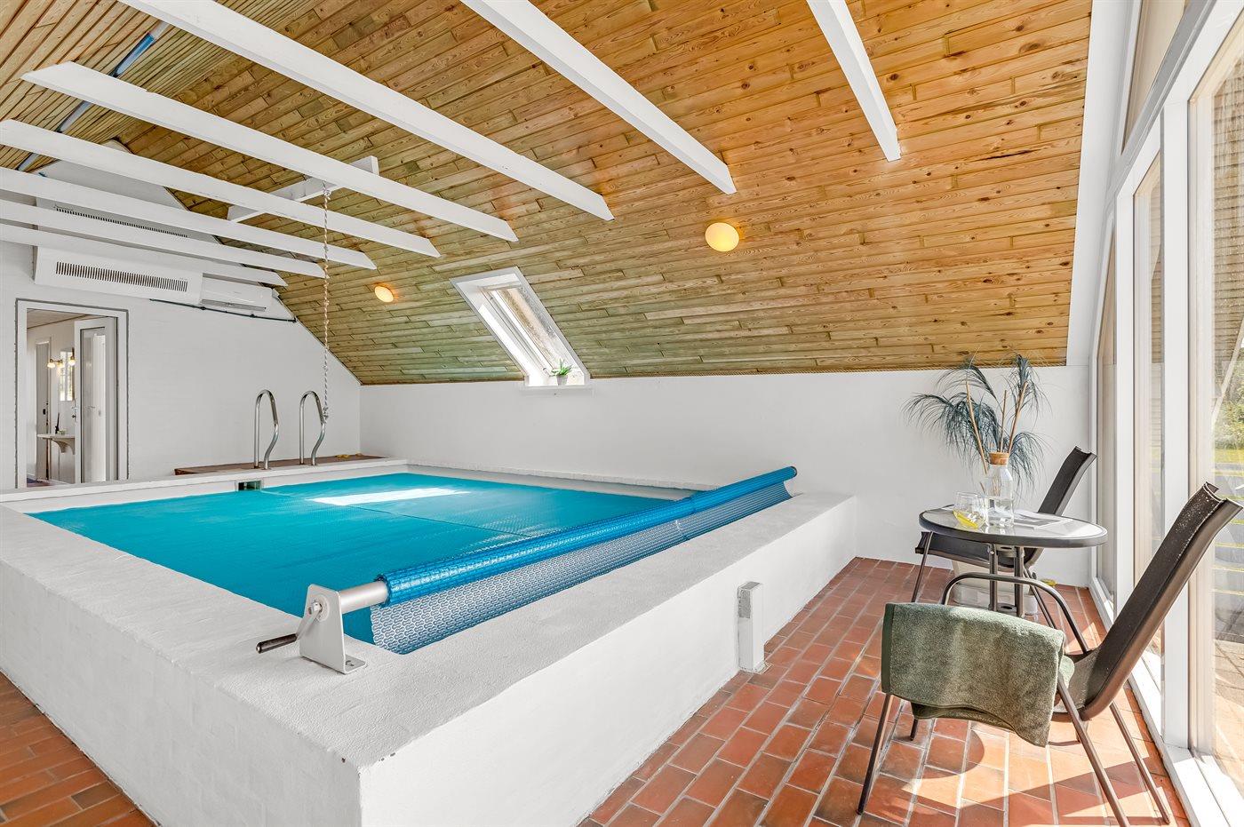 I den indendørs swimmingpool er der mulighed for leg og hyggeligt samvær. Swimmingpoolen måler op til 4 m i bredden, 5 m i længden og den er op til 1,2 m dyb. Vandet er mellem 24 og 28° C varmt.
