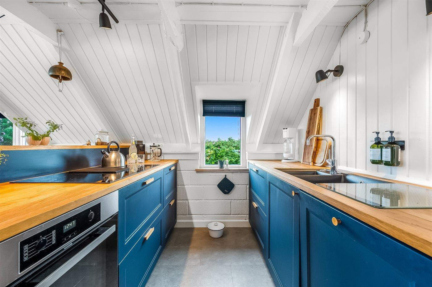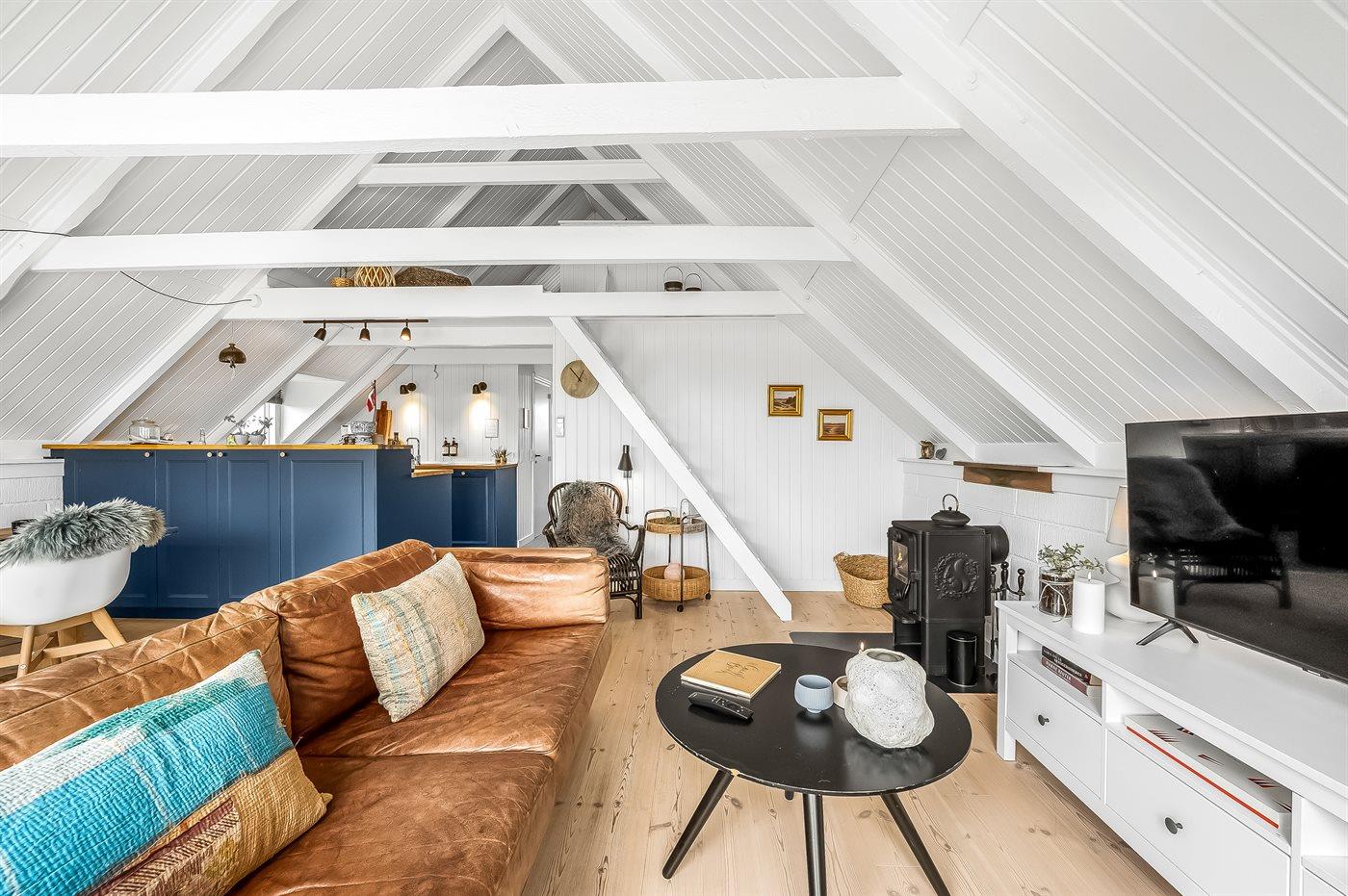 Totalrenoveret sommerhus med velafstemt indretning og brændeovn på stor åben grund i naturskønt sommerhusområde imellem hav og fjord