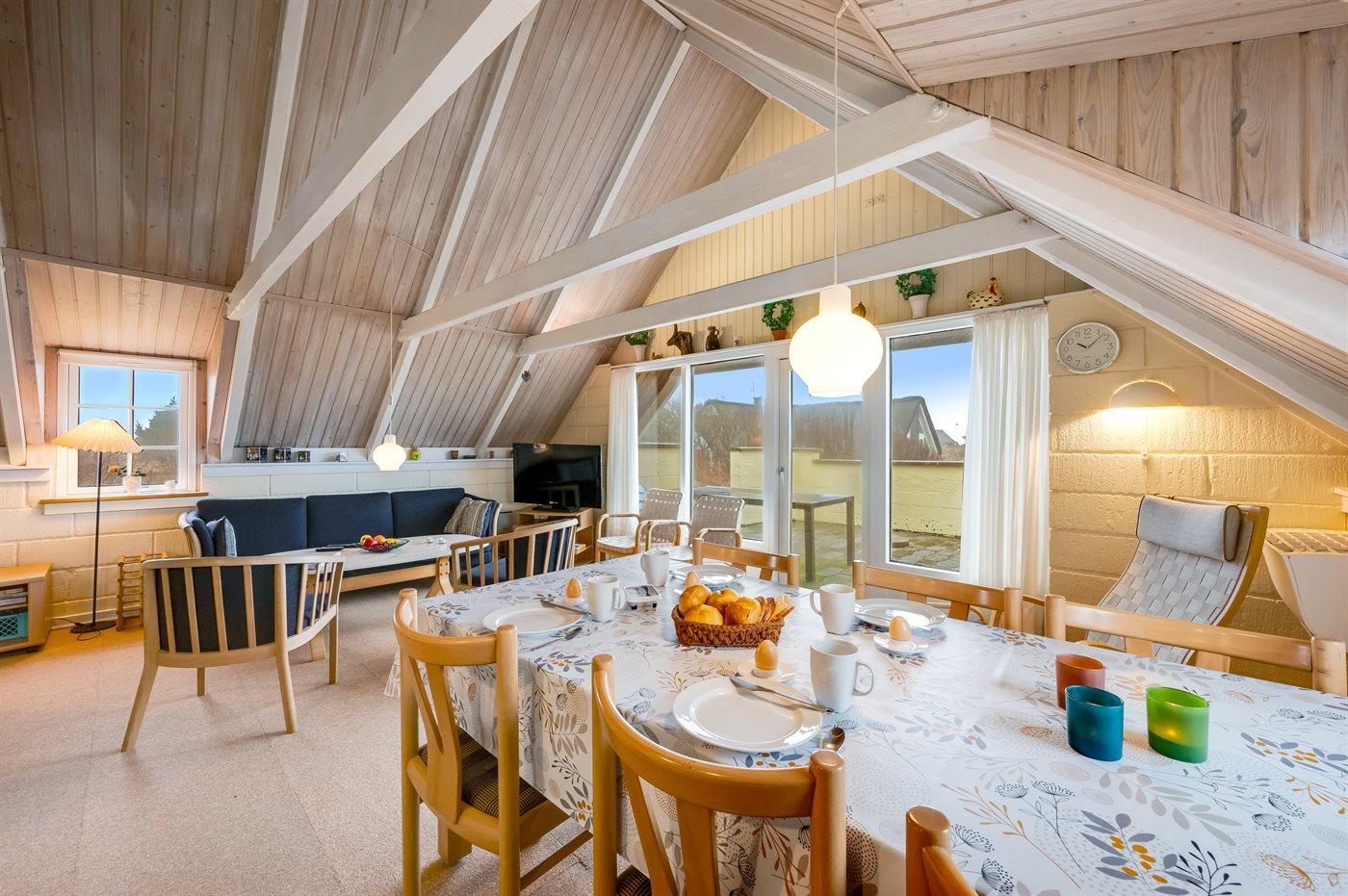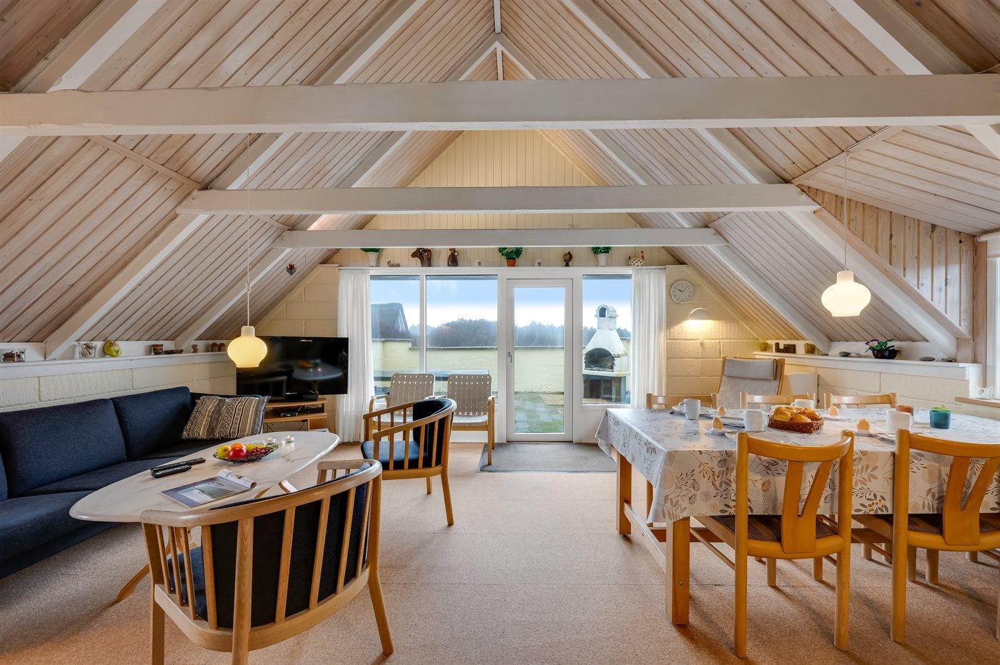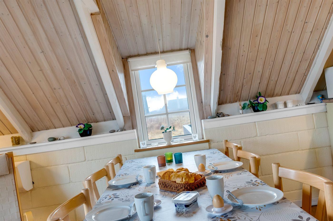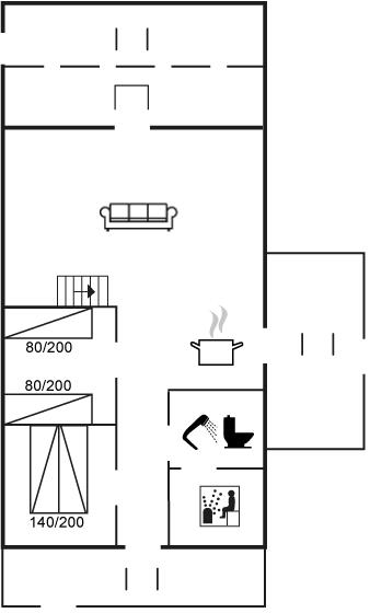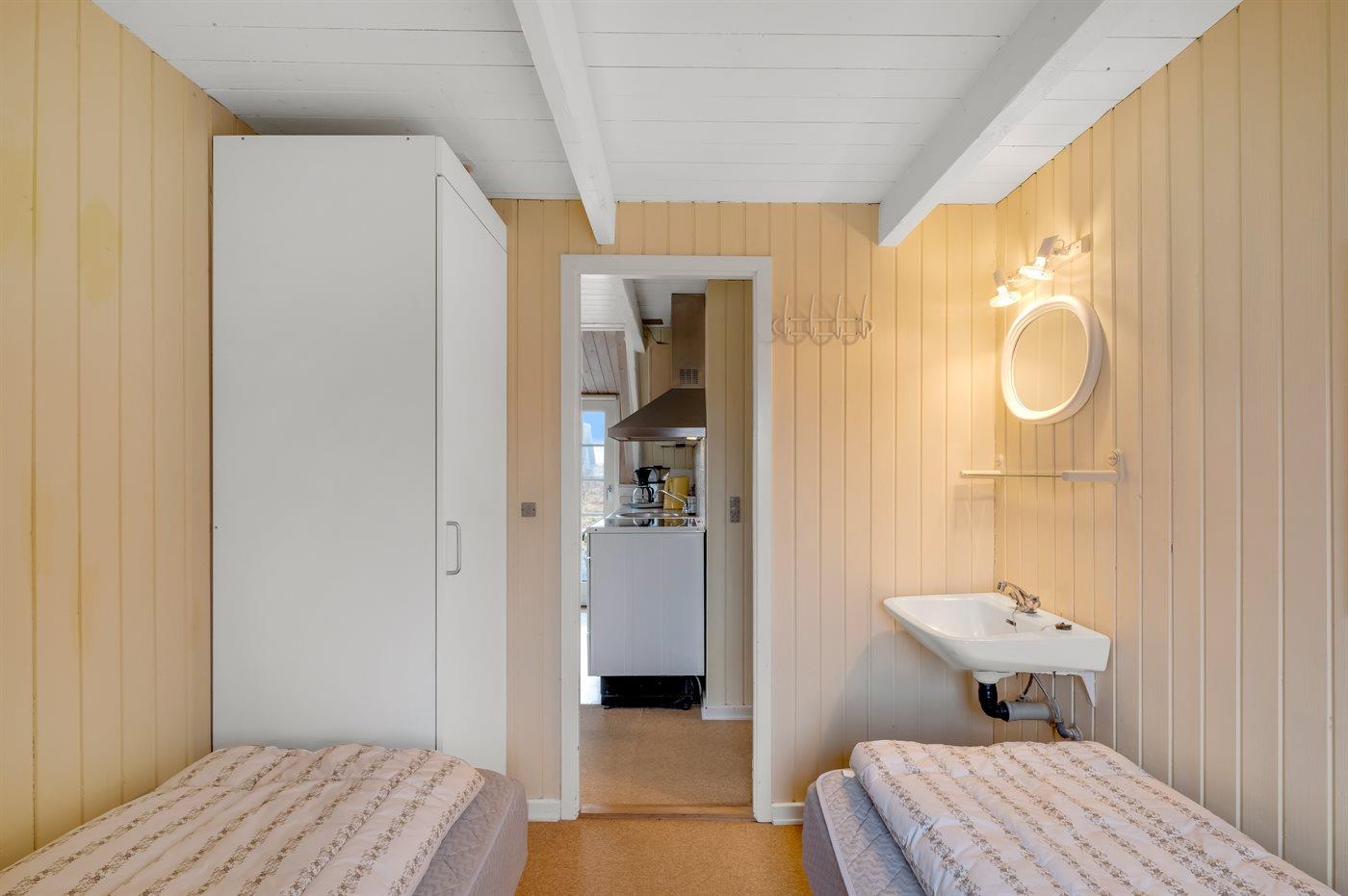 Der er i alt 2 soveværelser. Sovepladserne fordeler sig på: 2 sovepladser i dobbeltseng. 4 sovepladser i enkeltsenge. 2 af disse sovepladser befinder sig på husets hems.