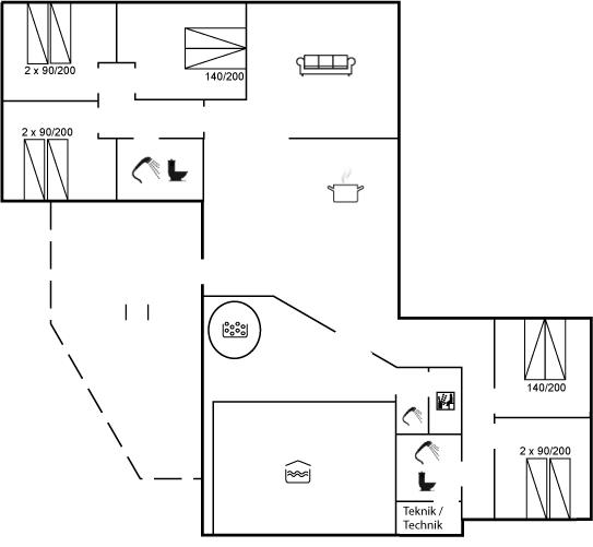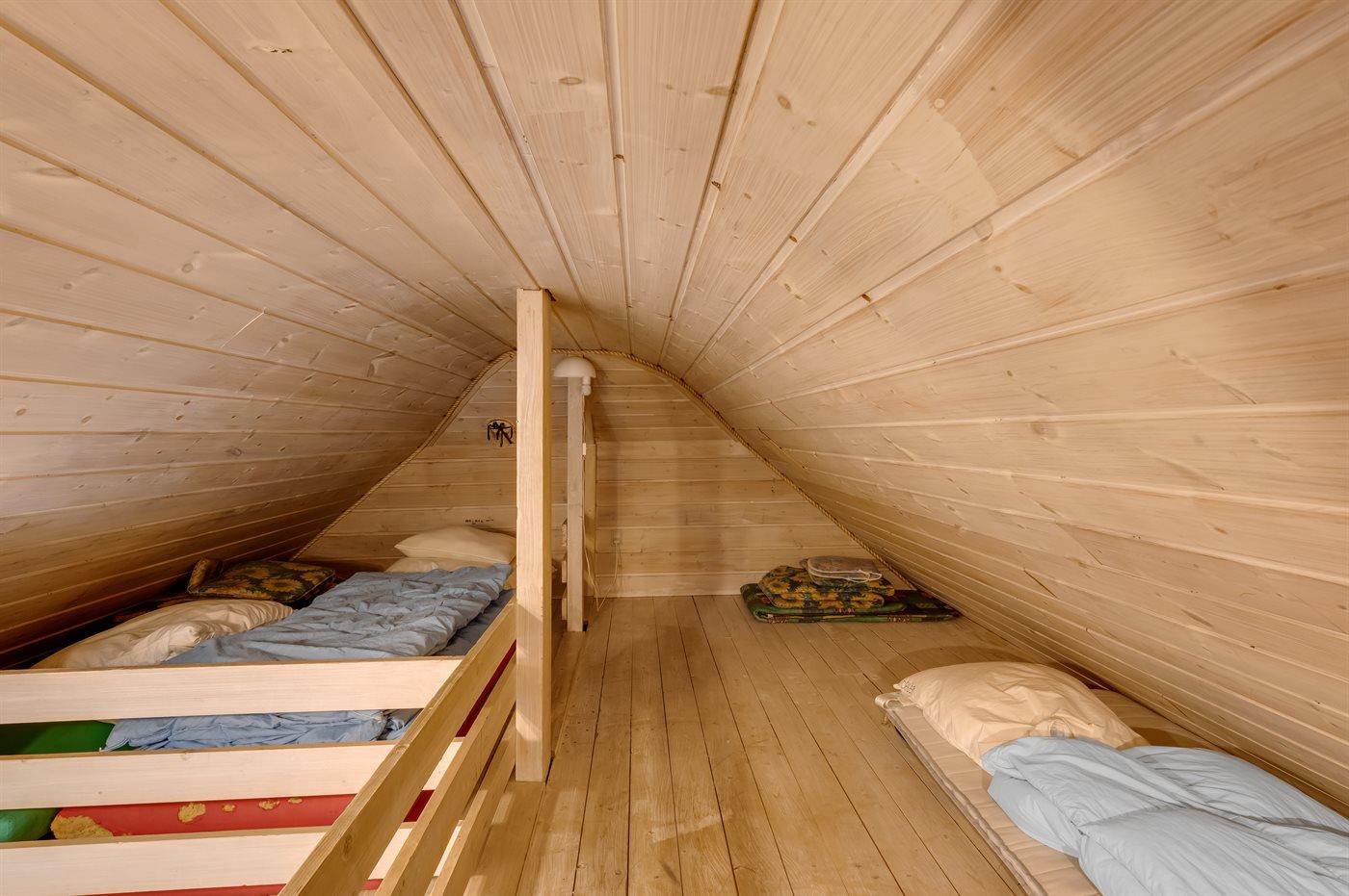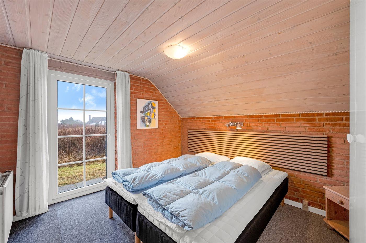 Der er i alt 5 soveværelser. Sovepladserne fordeler sig på: 10 sovepladser i dobbeltsenge. 4 sovepladser på madrasser. 4 af disse sovepladser befinder sig på husets hems. Derudover er der 1 stk. barneseng.