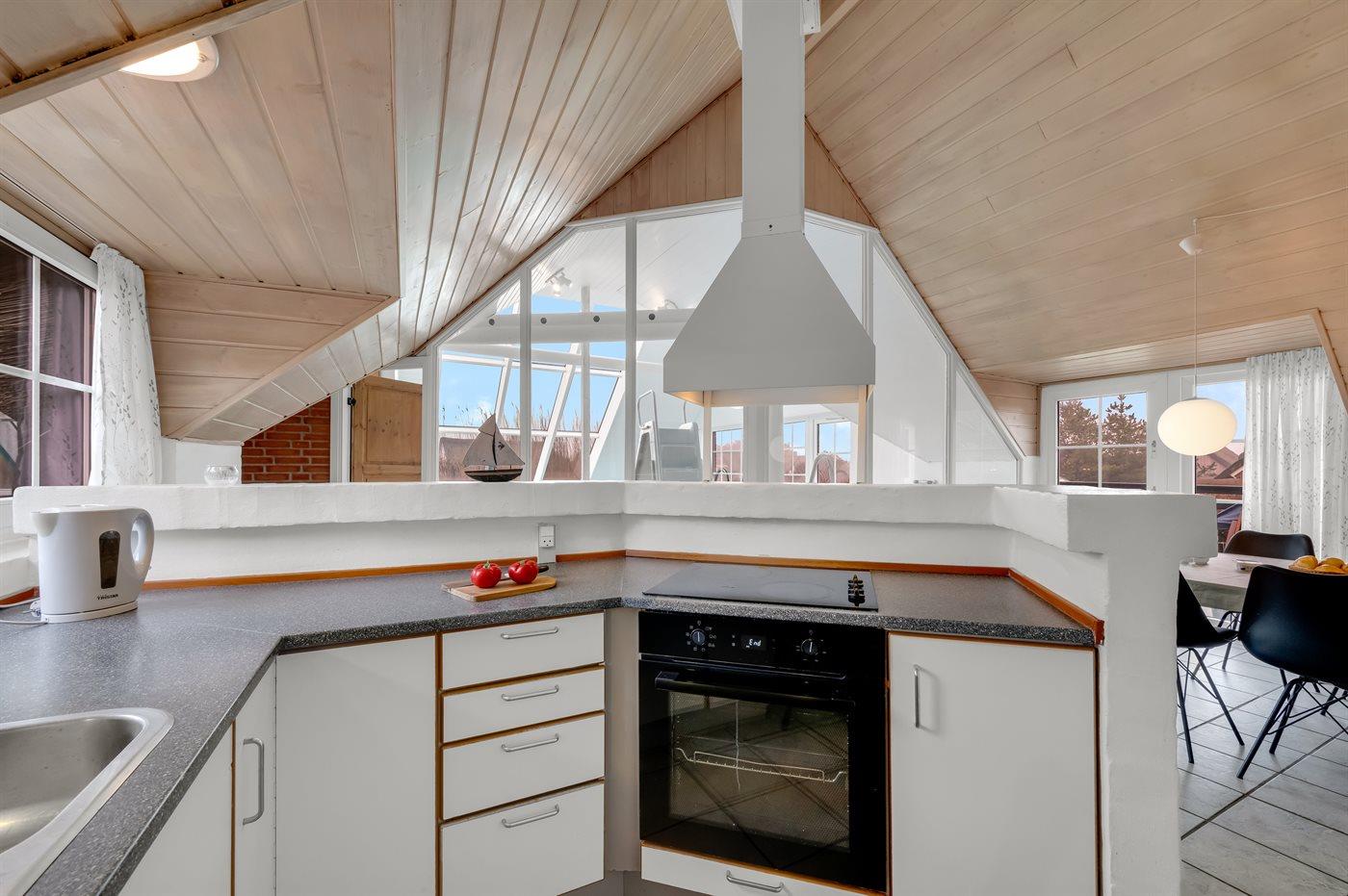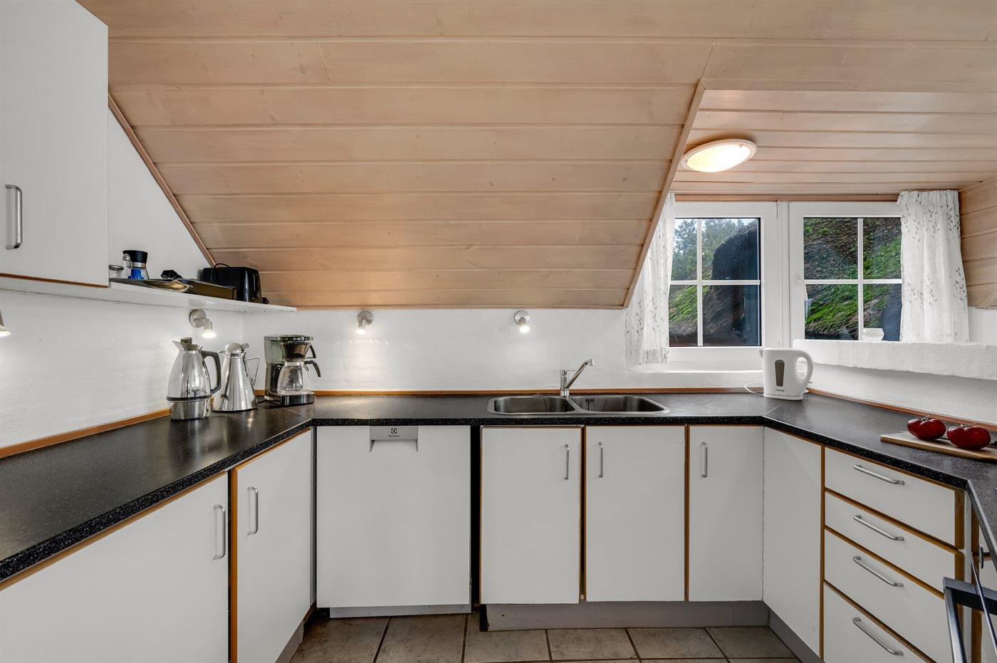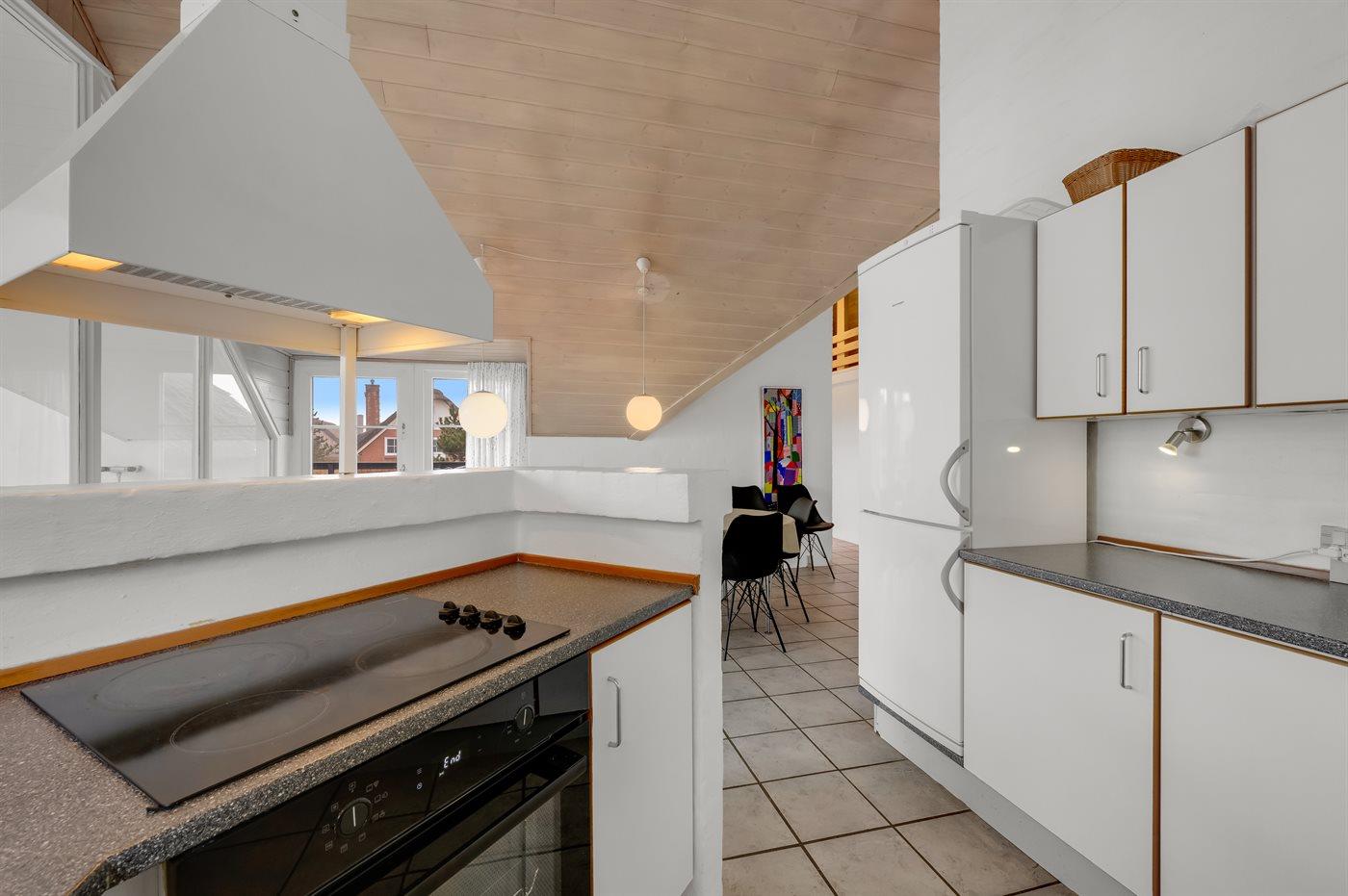 Køkkenet er udstyret med 1 køleskab. Der er 4 keramiske kogeplader, varmluftovn, mikrobølgeovn samt opvaskemaskine.