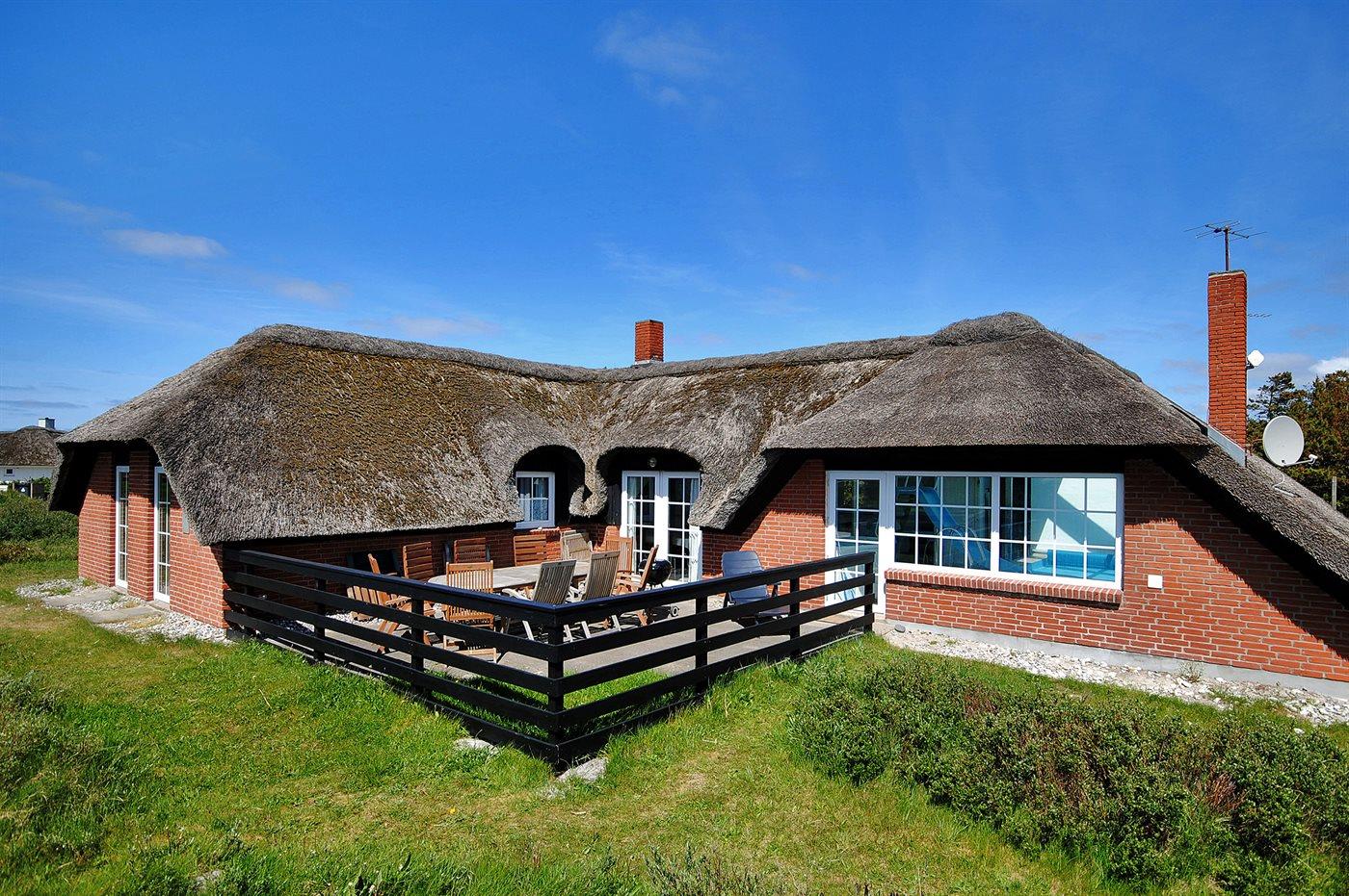 Dette hyggelige, stråtækte sommerhus ligger smukt placeret på en klitgrund tæt ved Vesterhavet. Her er der rig mulighed for at nyde afslappende øjeblikke med familie og venner – både udenfor på terrassen og indenfor i de indbydende, varme rammer.