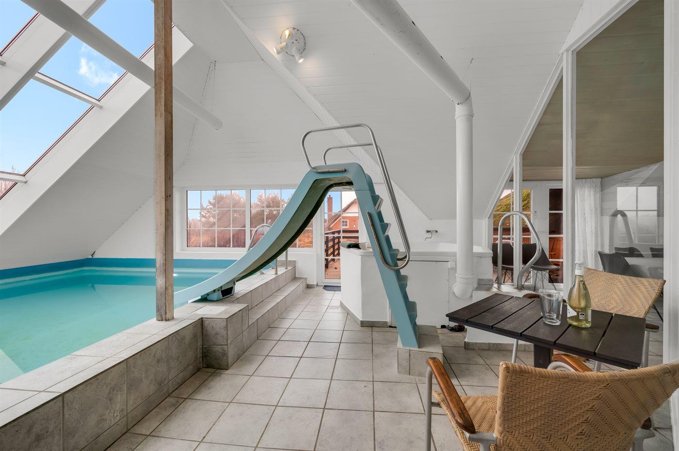 I den indendørs swimmingpool er der mulighed for leg og hyggeligt samvær. Swimmingpoolen måler op til 4 m i bredden, 5 m i længden og den er op til 1,45 m dyb. Vandet er mellem 24 og 28° C varmt. Der er gulvvarme i swimmingpoolområdet.