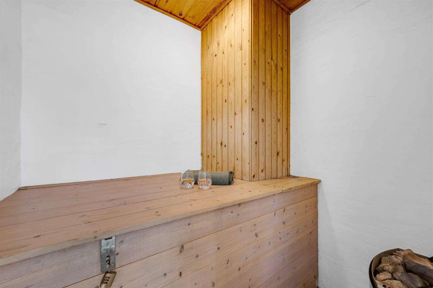 Der er 2 badeværelser med bruseniche og 2 toiletter. Der er gulvvarme på 2 badeværelser. I saunaen er der mulighed for afslapning.