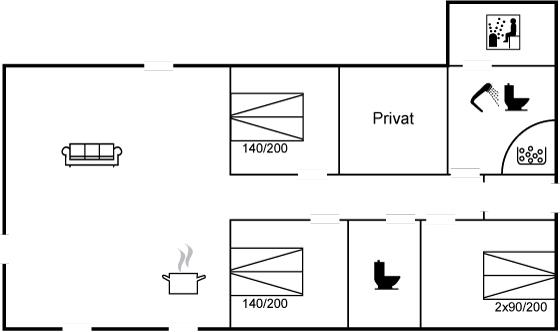 Der er i alt 3 soveværelser. Sovepladserne fordeler sig på: 6 sovepladser i dobbeltsenge.