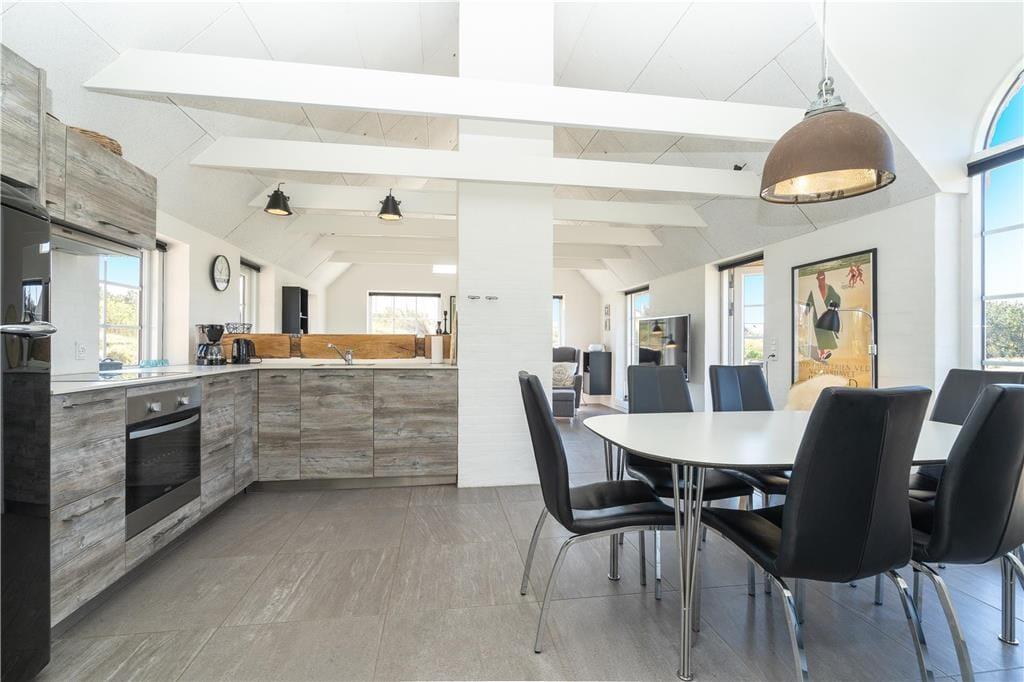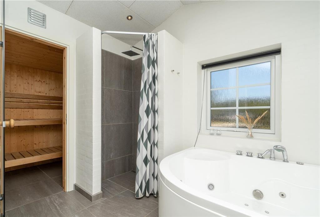 Under opførelsen i 2014 blev det stråtækte rødstenshus udstyret med alle bekvemmeligheder – inklusiv et spabad og en sauna, der gør ferielivet ekstra luksuriøst. Begge dele finder I på det største af husets to badeværelser, mens det andet rummer en dobbelt bruser med rainshower, så det har bestemt også wellnessfaktor. Sommerhusets tre store soveværelser er indrettet med gode boksmadrasser og garderobeskabe, og den rummelige entré er udstyret med vaskemaskine og tørretumbler. Sidst, men ikke mindst, er der opholdsafdelingen, som består af stue og køkken i åben forbindelse. Med loft til kip og fritlagte hanebjælker er her en skøn rumfornemmelse, og brændeovnen bidrager med både varme og hyggestemning. Hvis alle ikke er i gang med madlavningen i det veludstyrede køkken, kan dele af familien slå sig ned ved disken og holde kokken med selskab – med mindre I er mere i humør til sofaafslapning med en film på fladskærmen. Der er for øvrigt gulvvarme i opholdsafdelingen og på de to badeværelser, og en energivenlig varmepumpe har kølefunktion til de hede sommerdage.