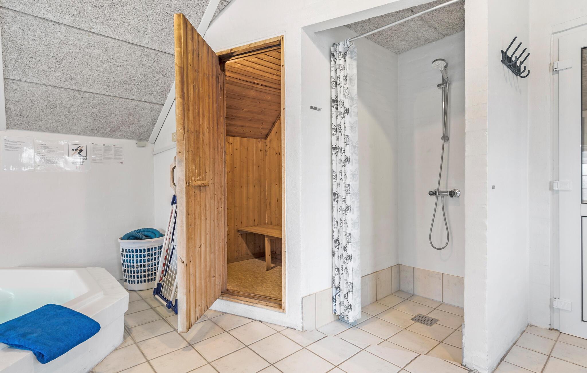 Skønt feriehus på stor klitgrund nær Vesterhavet med pool, sauna og spa for afslapning og aktiviteter.