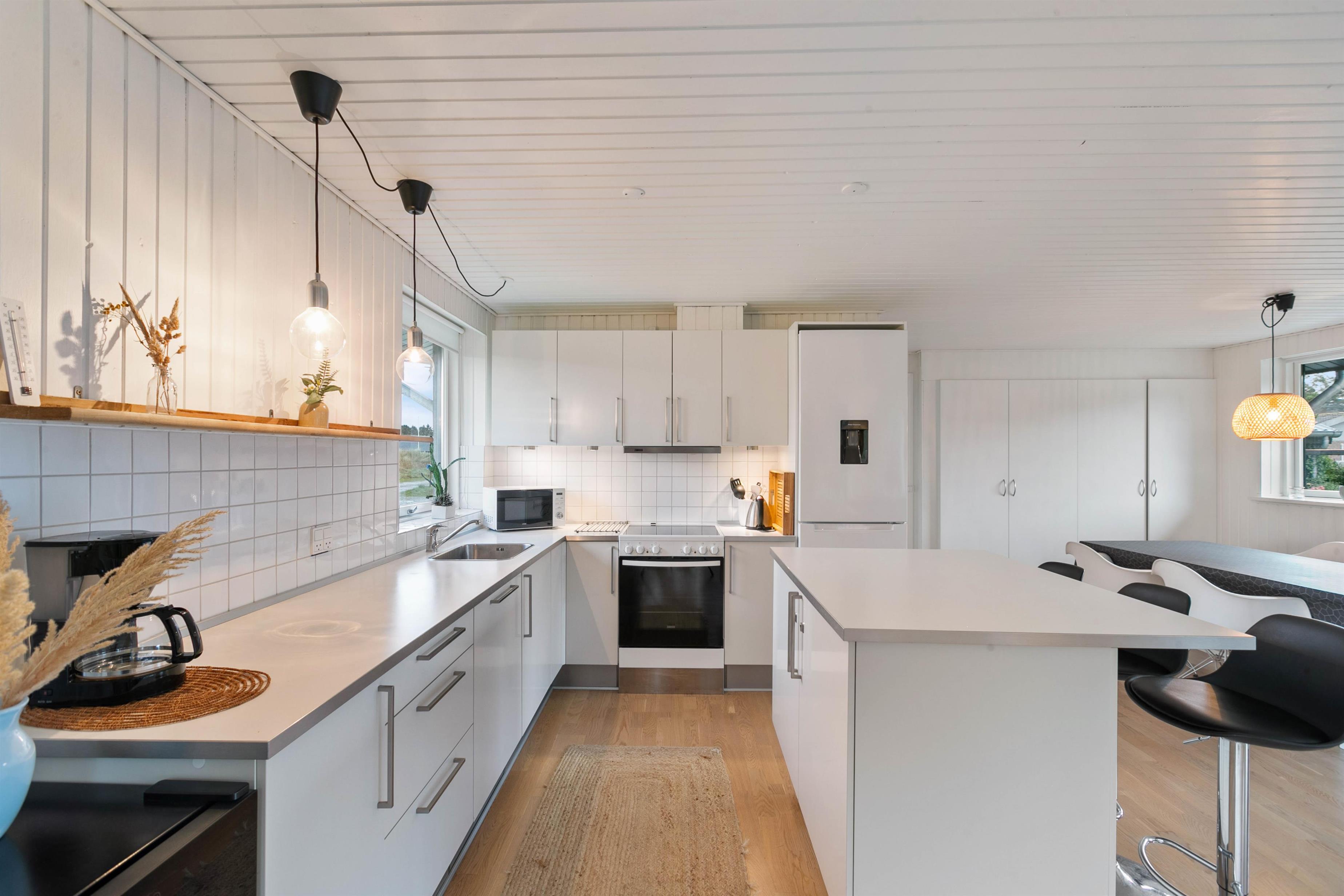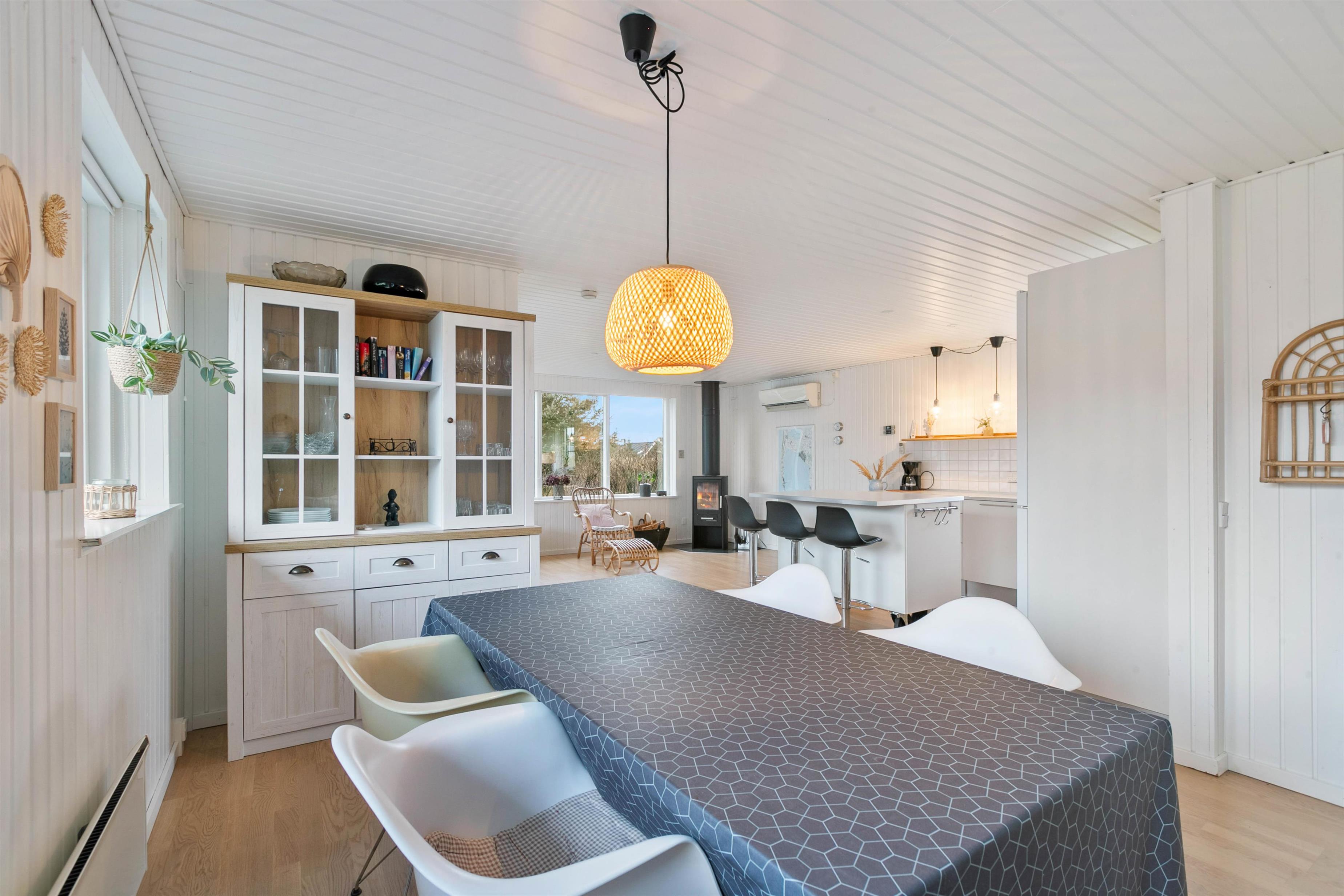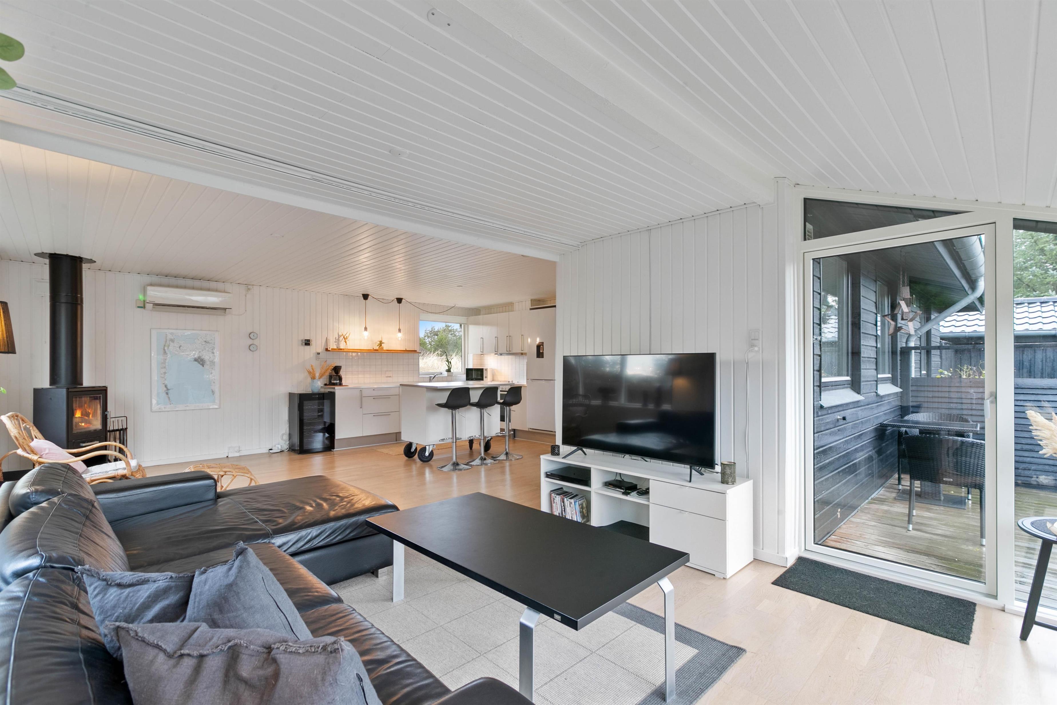 Alrummet udgør hjertet i feriehuset, og her kan I samles til mange hyggelige stunder i løbet af jeres ferie. Med den åbne forbindelse mellem køkken, spiseplads og stue har I mulighed for at være sammen om madlavning, spil og film i alrummet, mens brændeovnen knitrer i baggrunden.