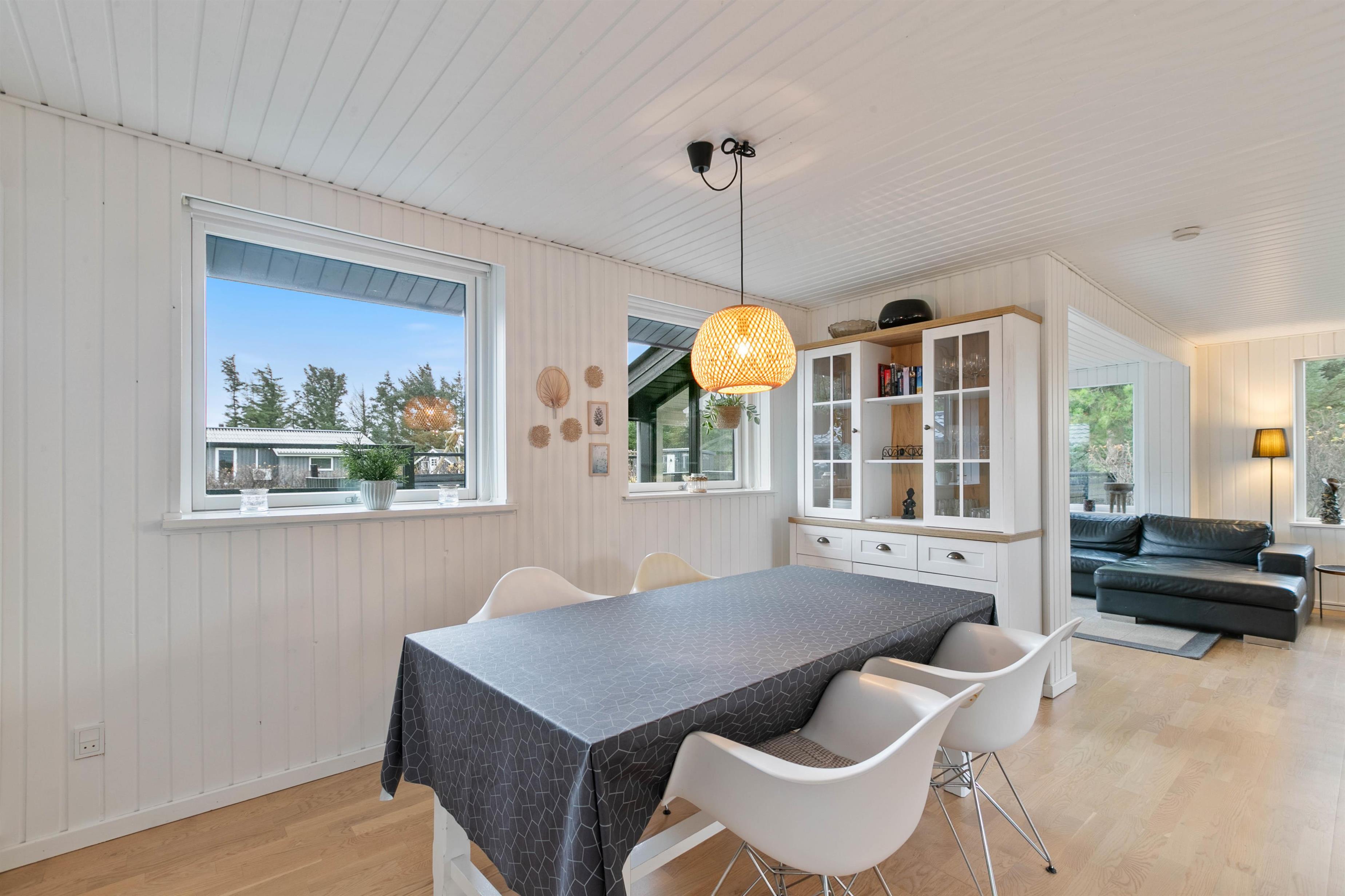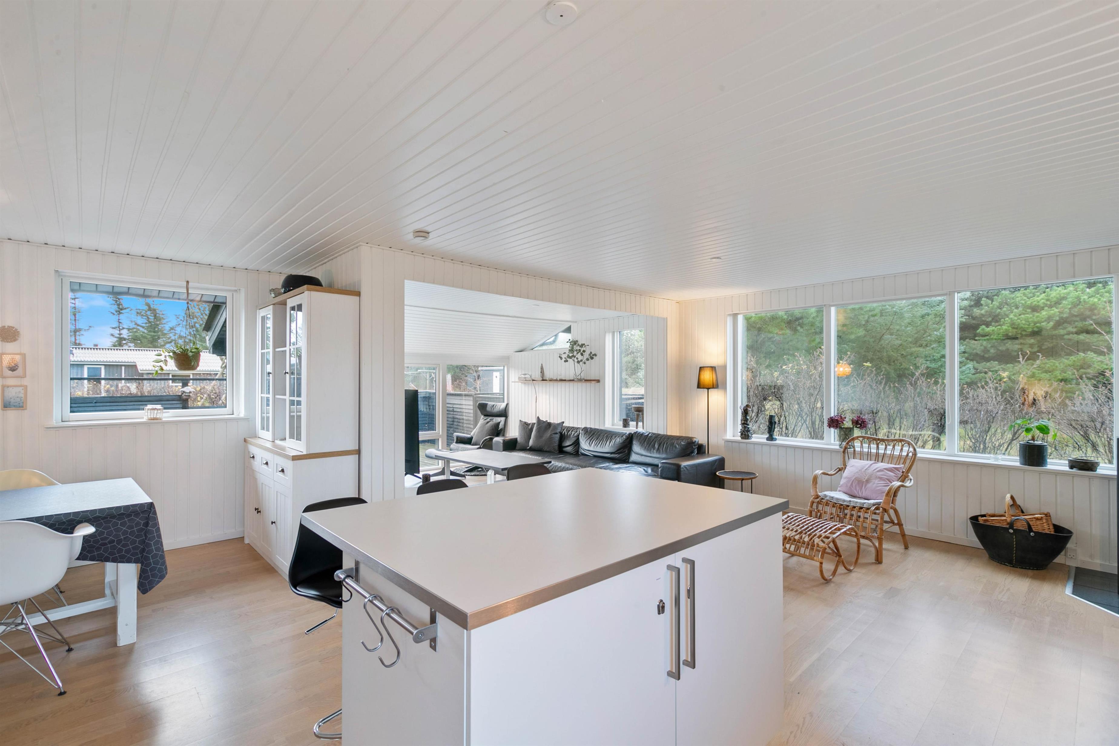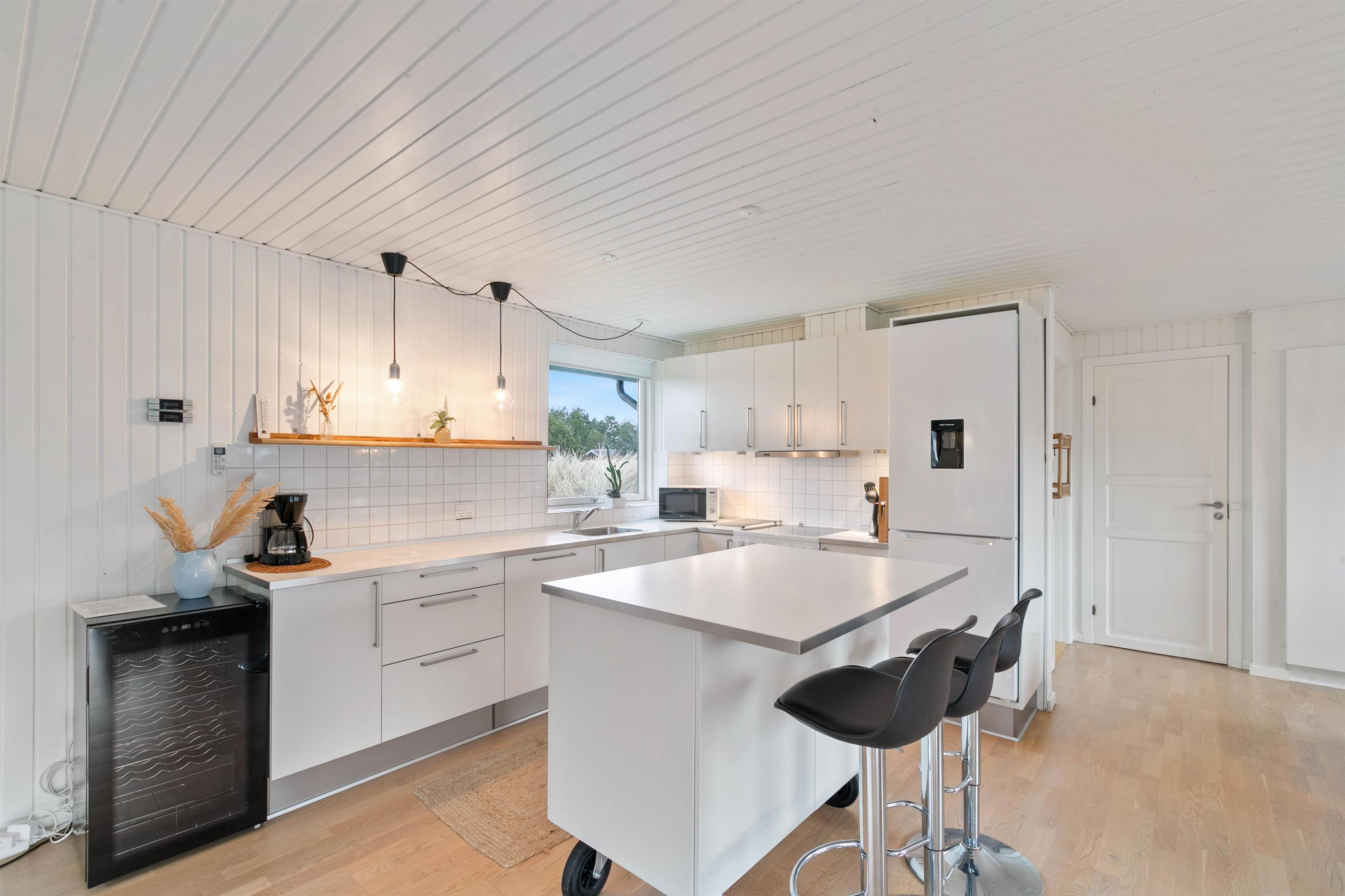 Alrummet udgør hjertet i feriehuset, og her kan I samles til mange hyggelige stunder i løbet af jeres ferie. Med den åbne forbindelse mellem køkken, spiseplads og stue har I mulighed for at være sammen om madlavning, spil og film i alrummet, mens brændeovnen knitrer i baggrunden.