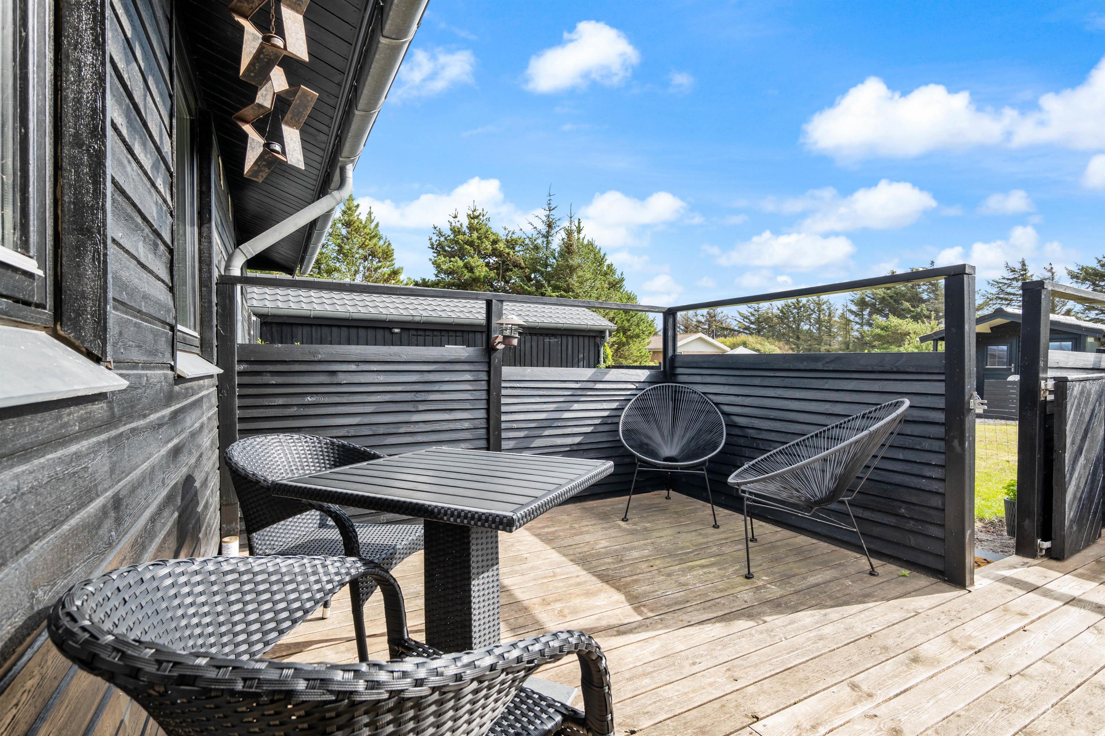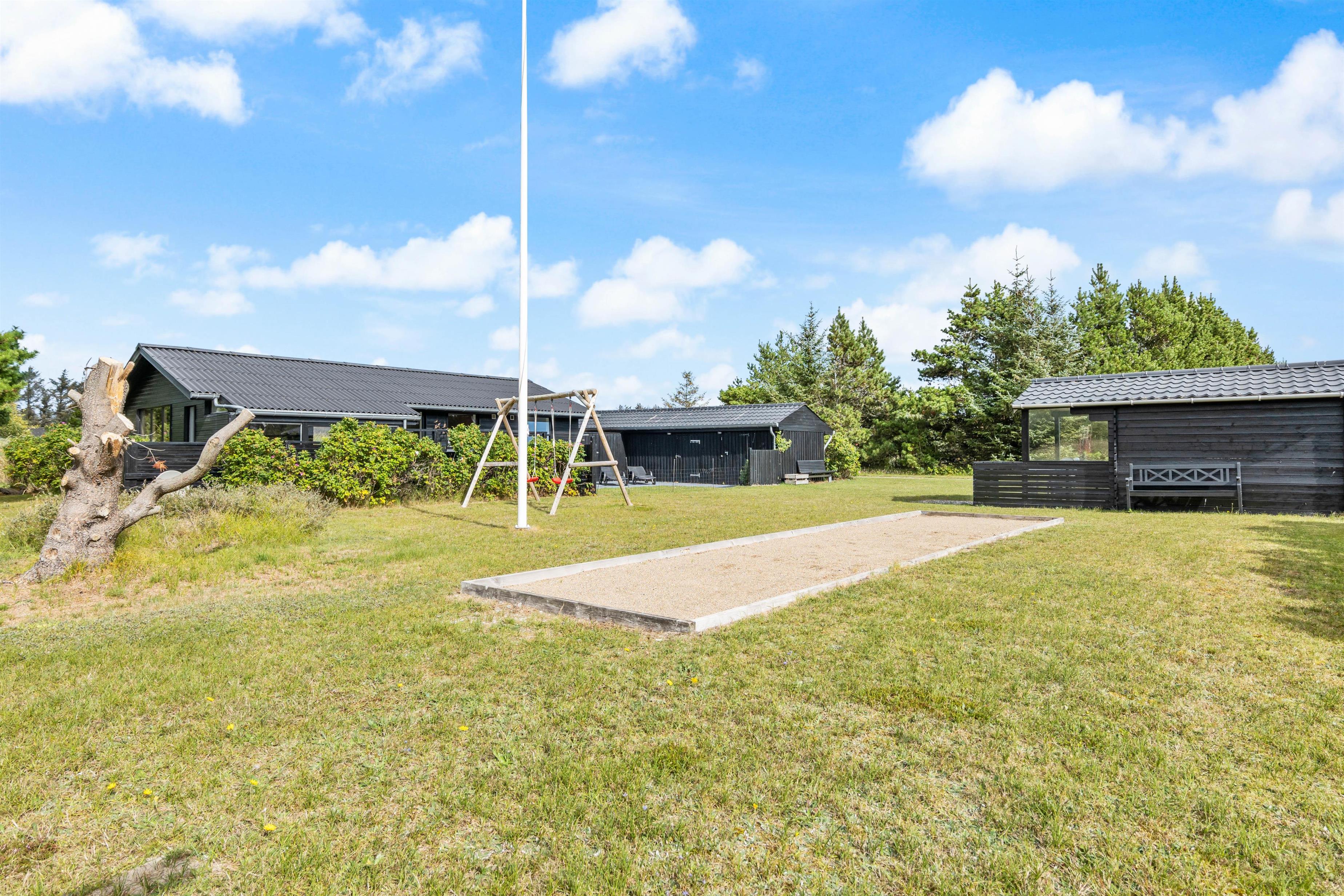 Udendørs venter jer en hyggelig have, hvor især børnene helt sikkert vil elske at lege. Til dem er der desuden et gyngestativ, de kan få glæde af i løbet af ferien. Mens børnene har fuld gang i legen i haven, kan I finde jer en god plads på en af terrasserne, hvor I kan sætte jer til rette i havemøbler og liggestole.