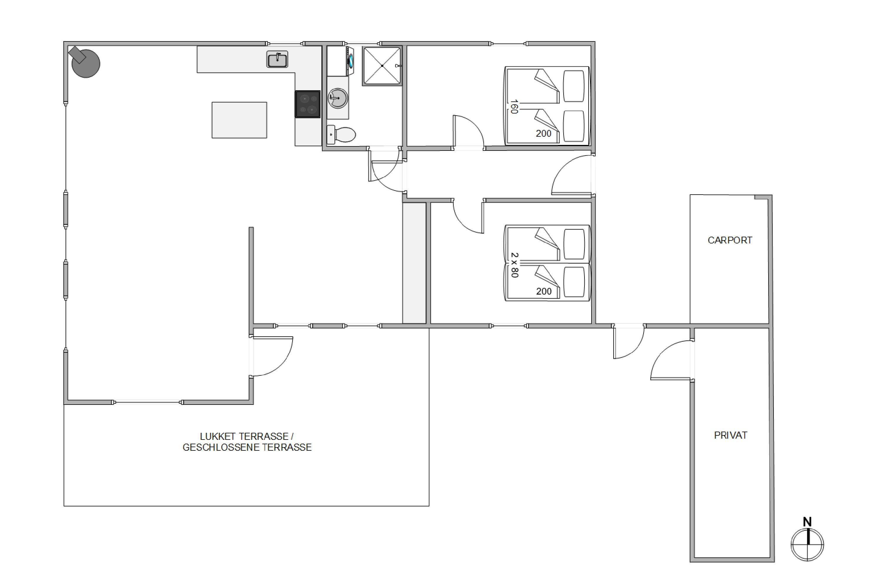 Efter en hyggelig feriedag i Klegod kan I bevæge jer mod sommerhusets 2 gode soveværelser, så I kan få samlet ny energi. Begge soveværelser er indrettet med en dobbeltseng hver. På sommerhusets badeværelse er der gulvvarme, så I slipper for at fryse tæerne, når I står op næste morgen.