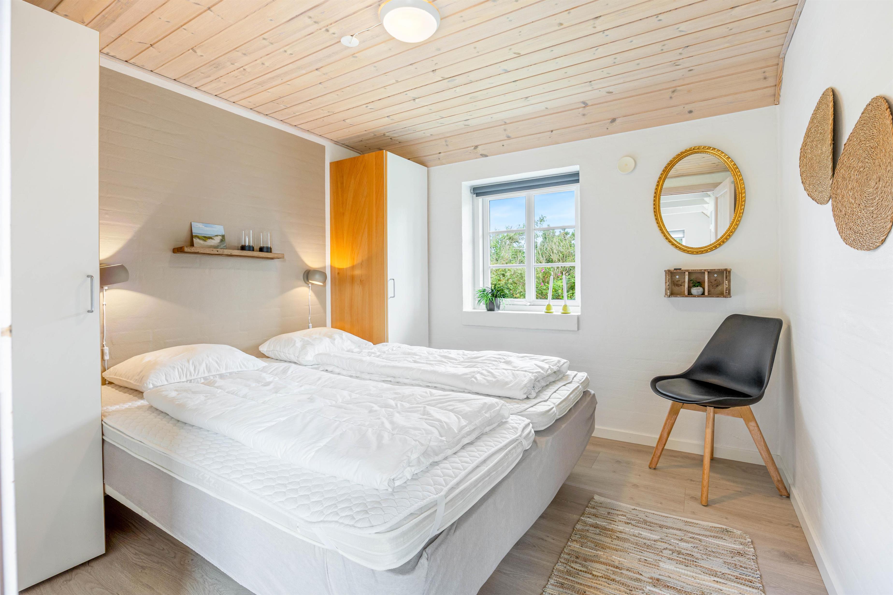 I dette hyggelige sommerhus med stråbelagt tag kan der bo 6 personer. Sommerhuset har både spa og sauna samt en dejlig lukket terrasse. Mod øst kan I nyde udsigten til smukke Ringkøbing Fjord, hvortil I også kan tage på udflugt.