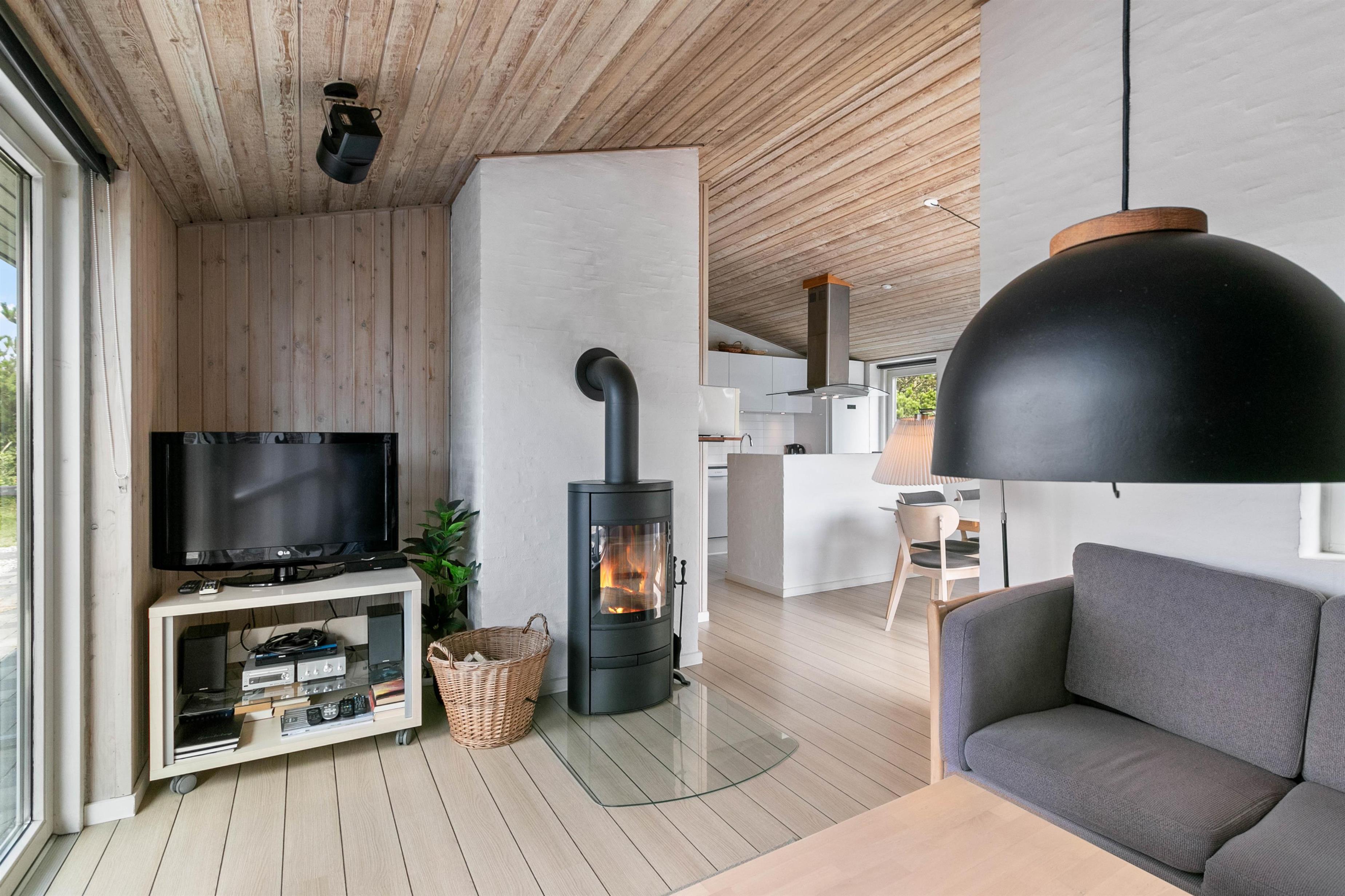 Har du lejet sommerhuset i F-sæson giver vi dig 25% rabat hvis du bliver i mindst 14 dage. Her sørger brændeovnen for hyggeligt stemning og billig opvarmning. Slap af på sofaen efter en lang dag i naturen, se en film på fladskærmen, eller hold kontakten med vennerne via den trådløse internetforbindelse.