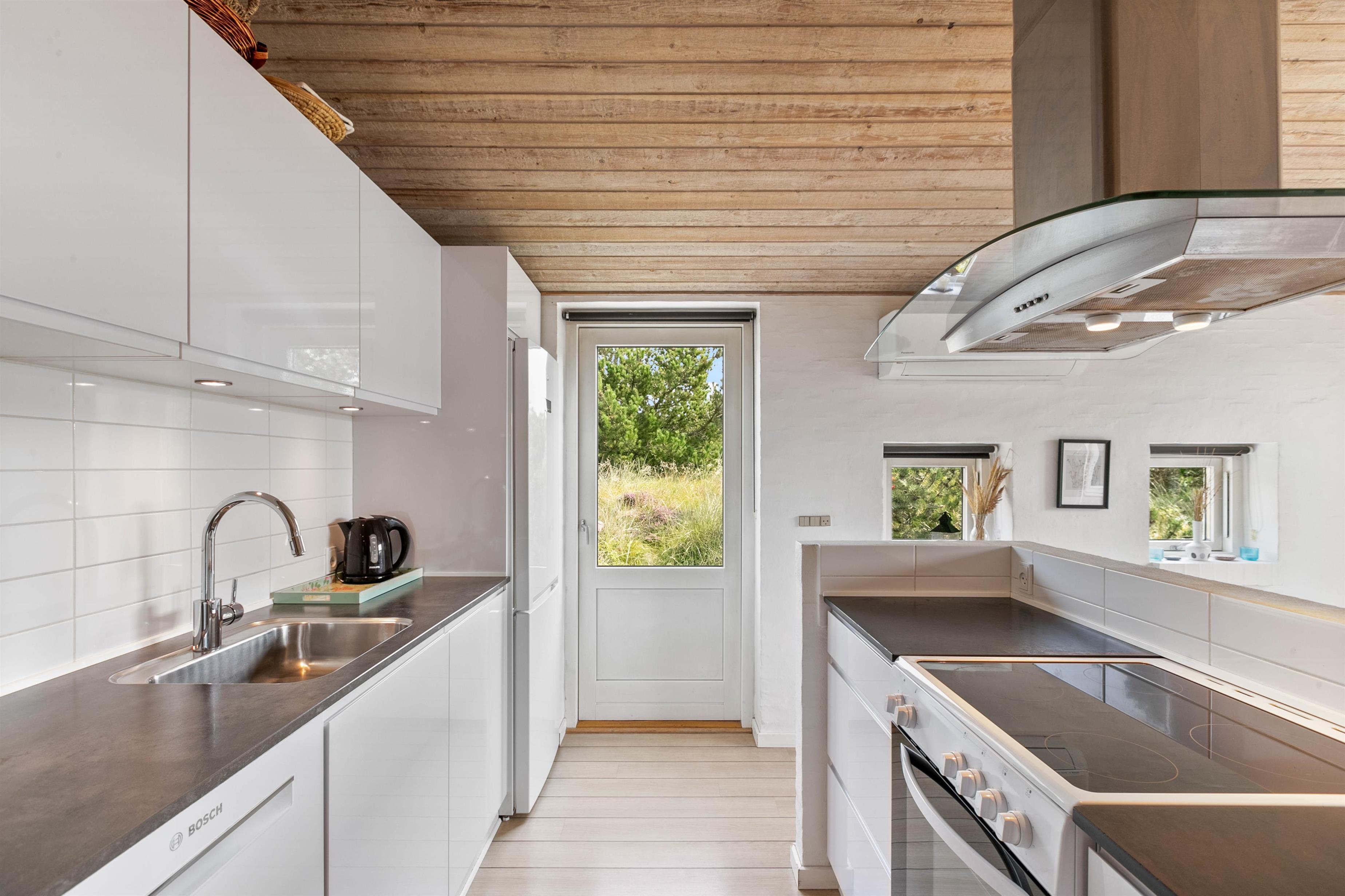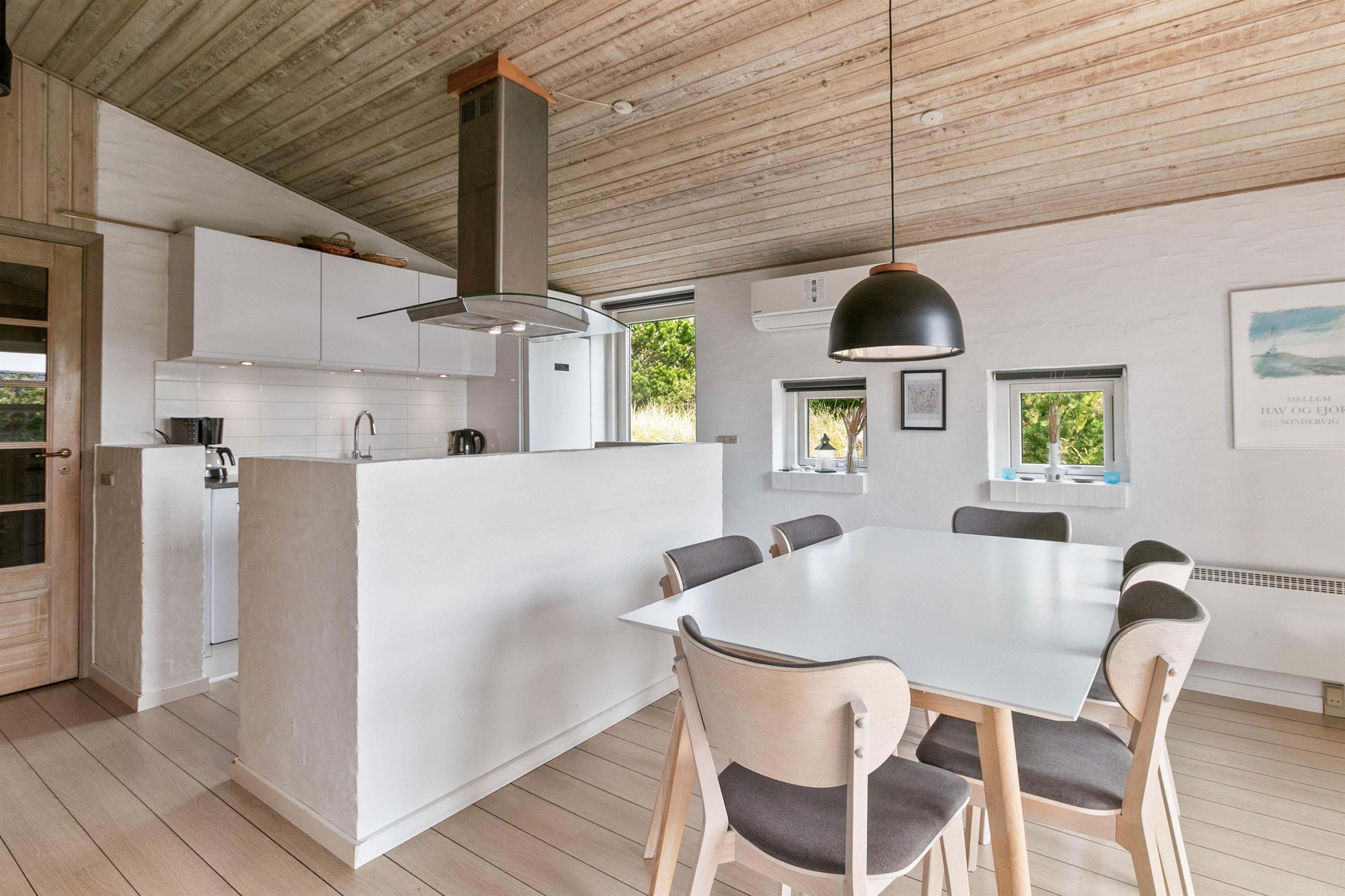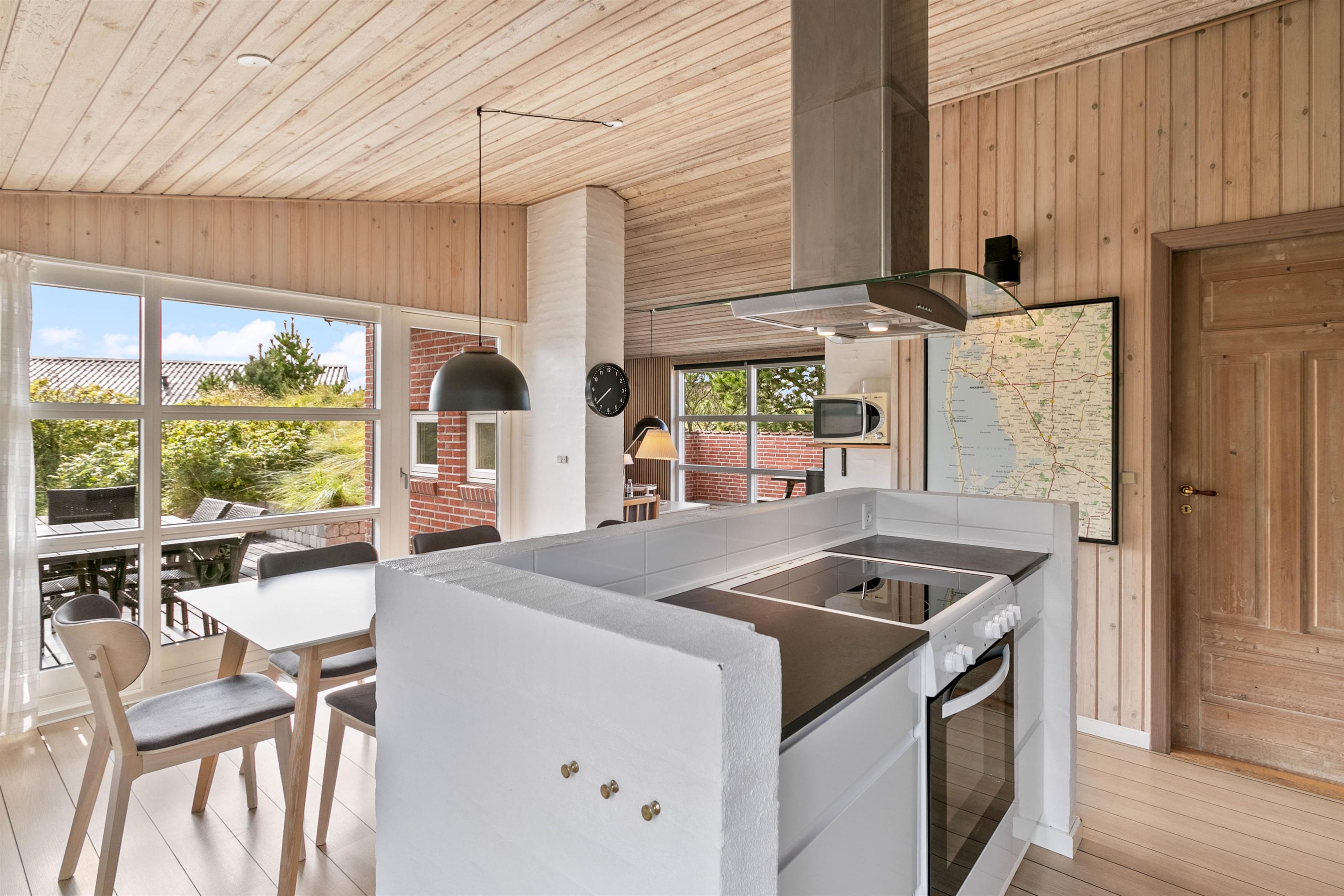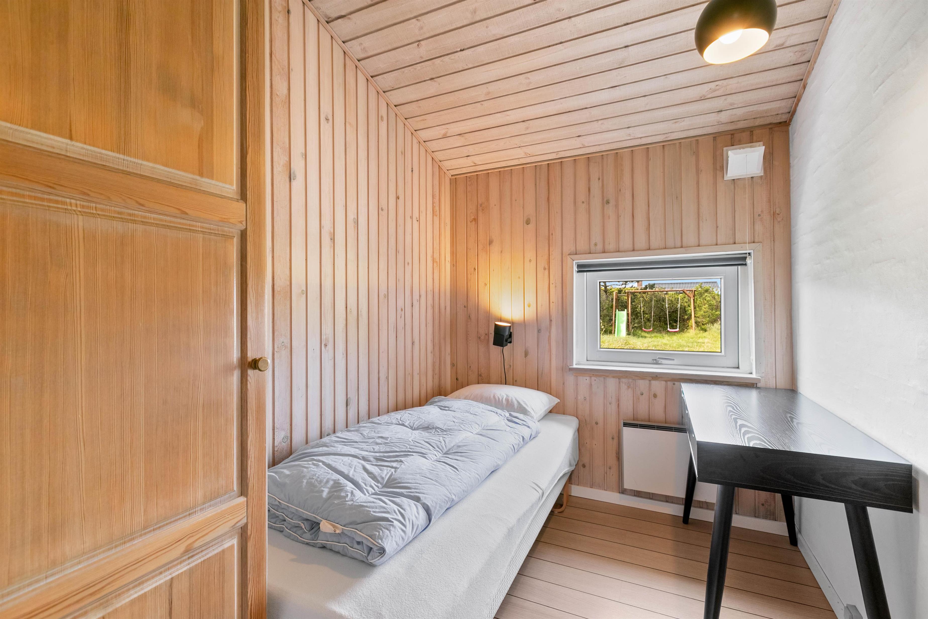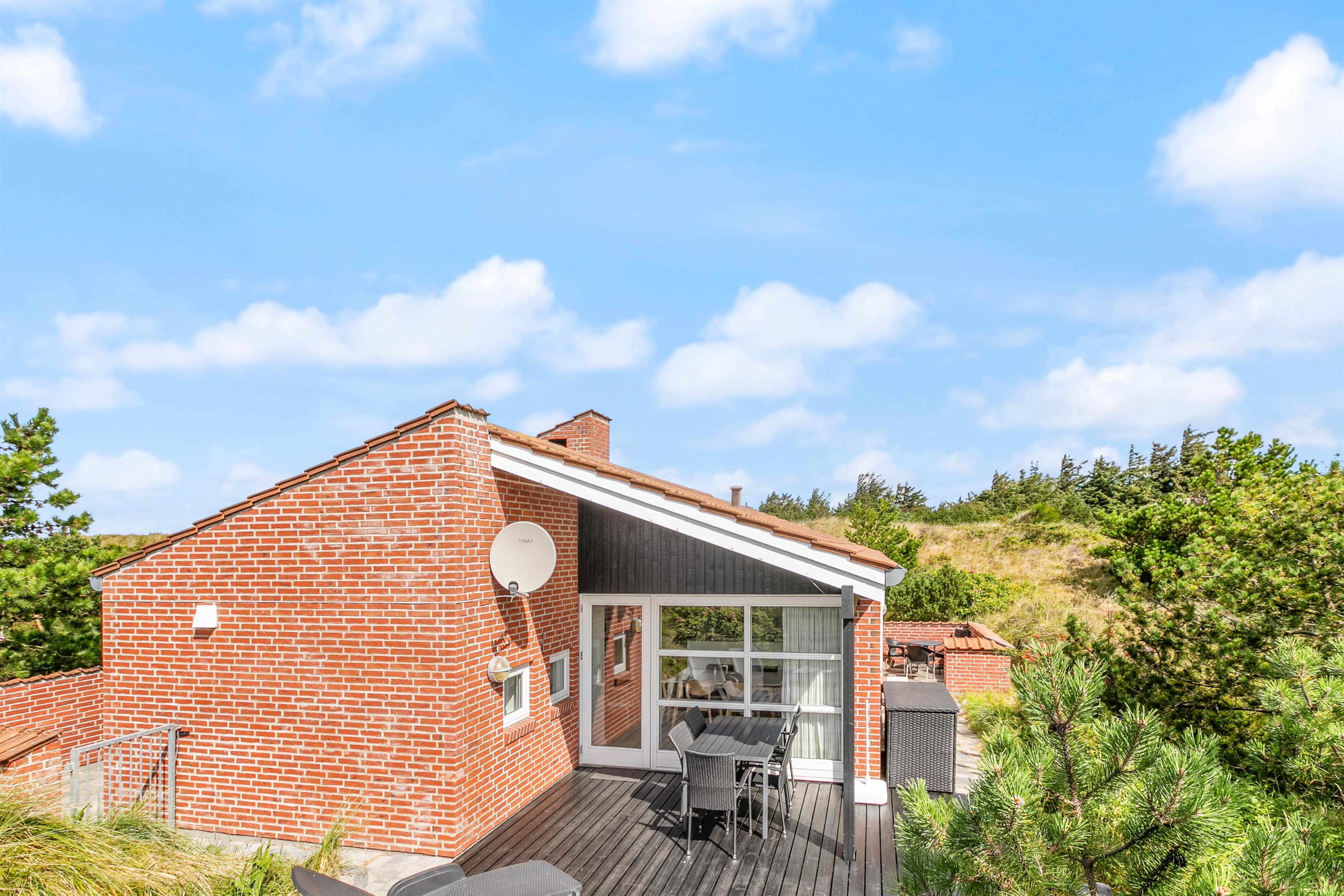 Sommerhuset har en god beliggenhed på Fladsbjergvej i Klegod, i et lettere træ bevokset og kuperet klitterræn. Der er 3 soveværelser i huset, 2 af værelserne har dobbeltsenge og det sidste har enkeltseng. På badeværelset er der gulvvarme og en bruseniche samt adgang til lille sauna. I køkkenet er der en fryser på 40 L, mikroovn og opvaskemaskine. Spiseafdelingen og køkkenet er placeret i forlængelse af hinanden, og i selve stuen kan man sidde helt uforstyrret og se TV eller læse.