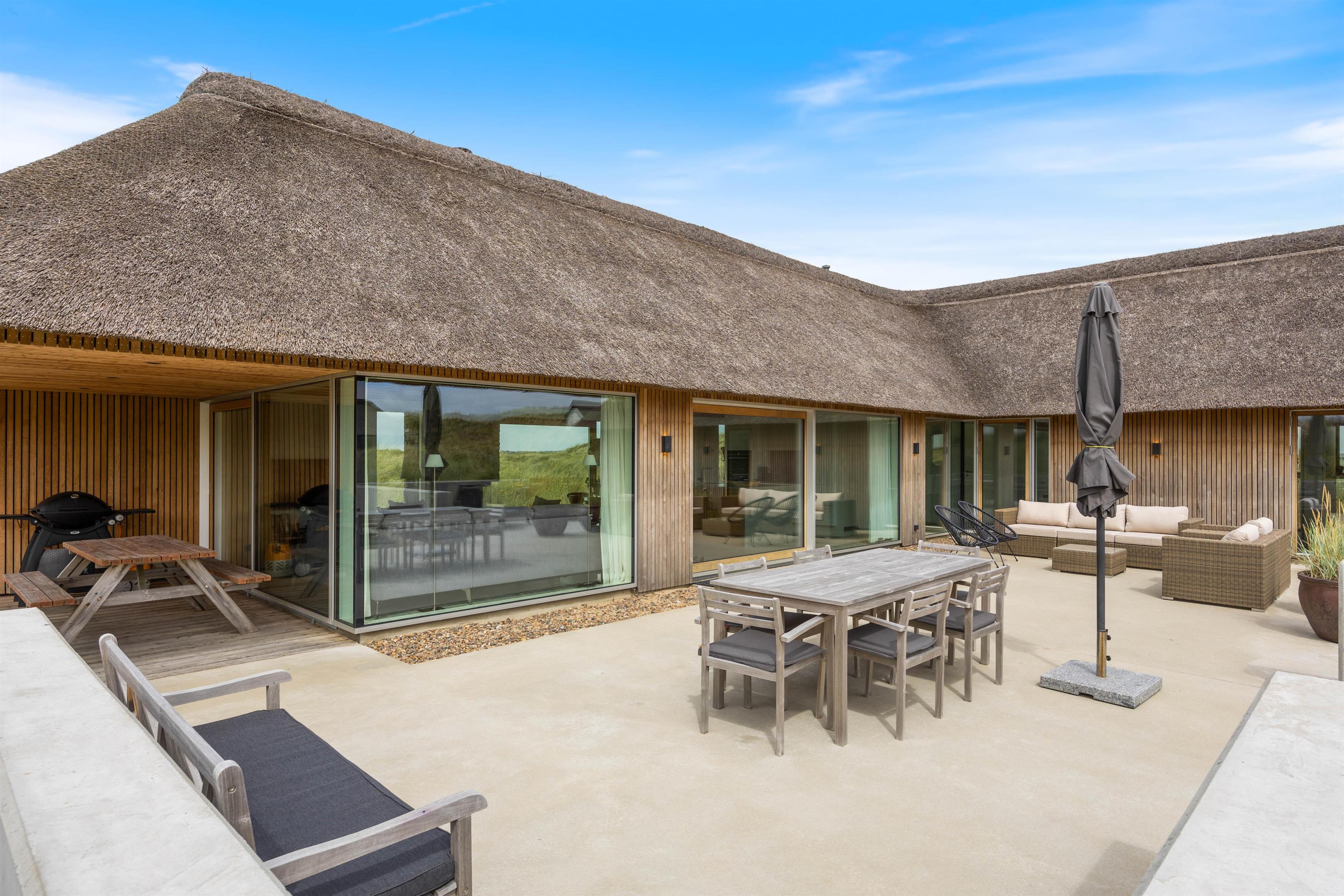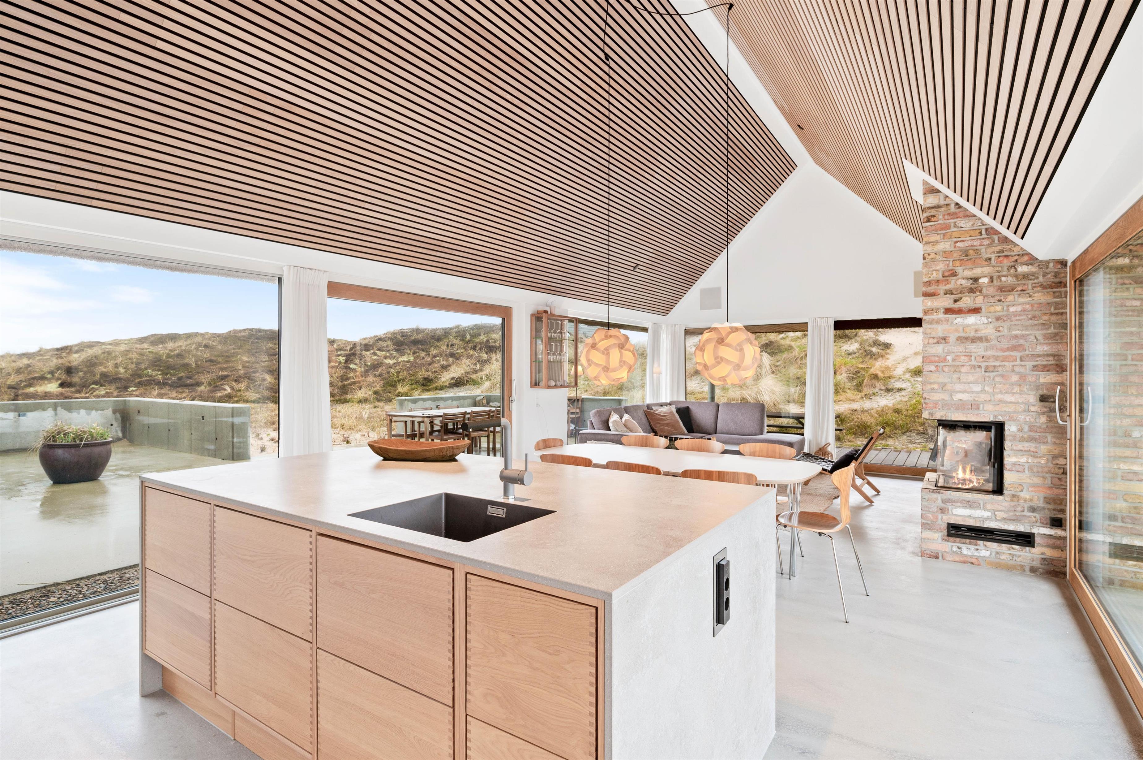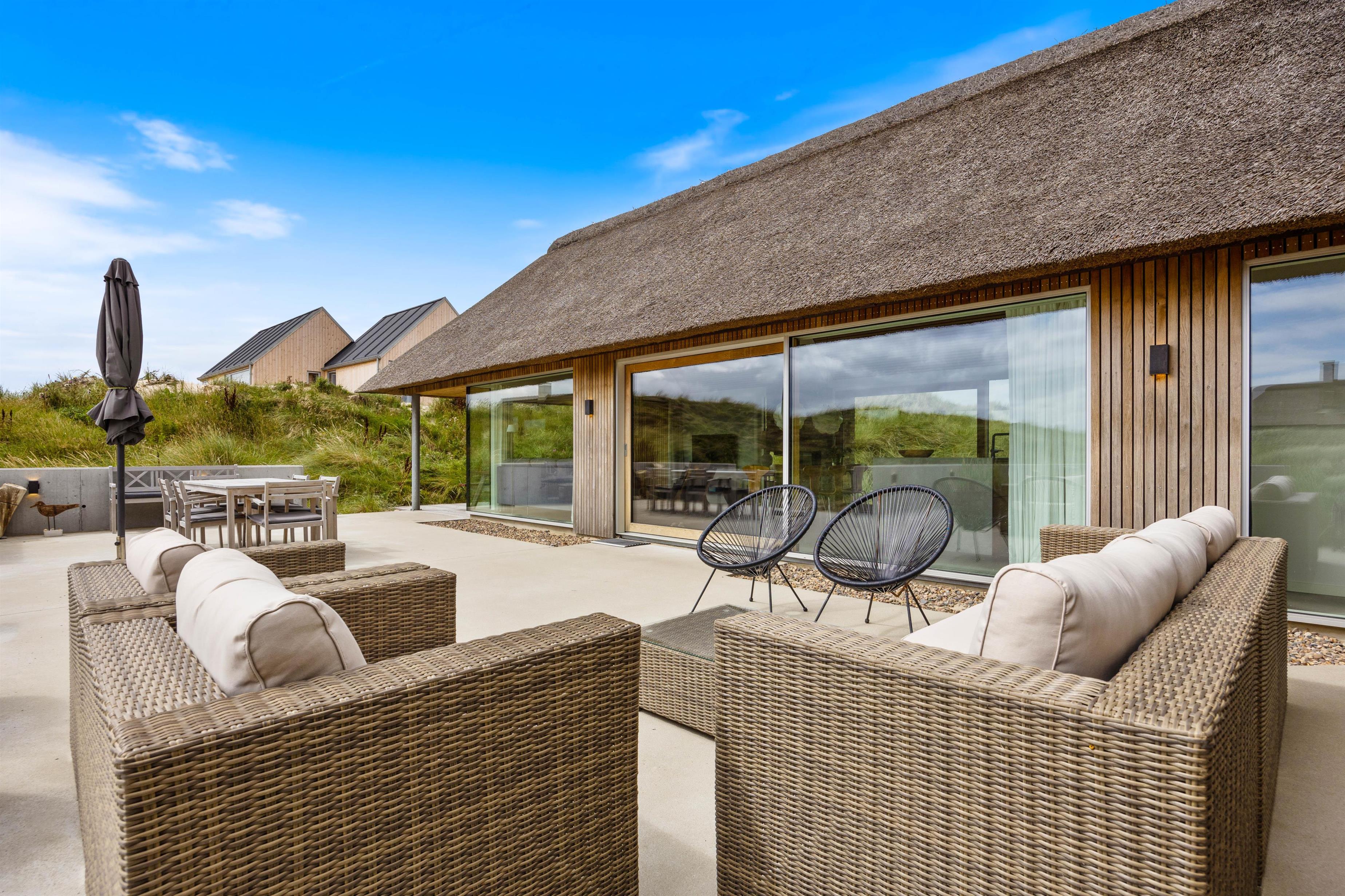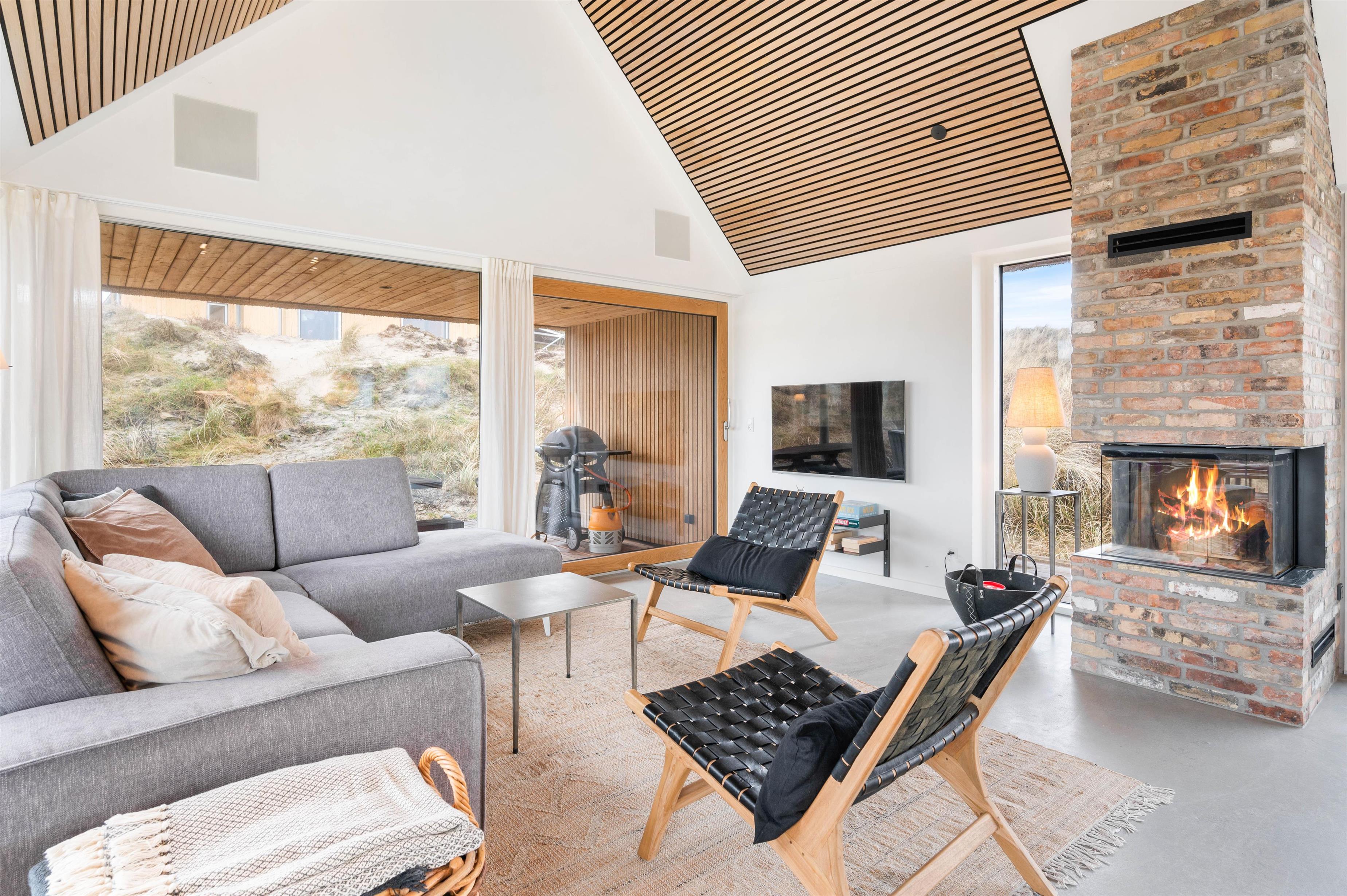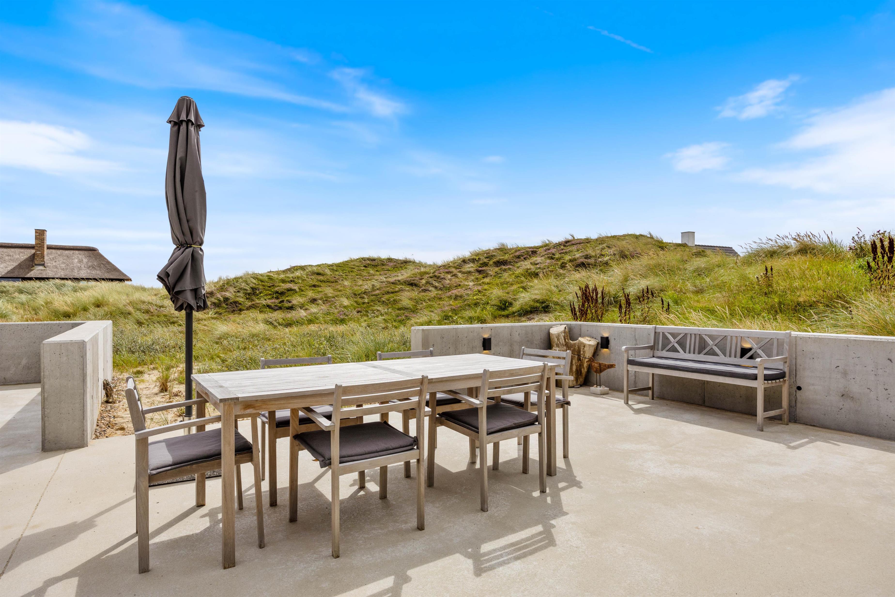 Med kun 450 meter til det brusende Vesterhav kan I på de varme sommerdage tage jer en frisk dukkert i havet og efterfølgende nyde godt af sommerhusets udebruser. Som et lille alternativ til det store Vesterhav råder feriehuset endda også over et koldtvandskar, hvor I kan dyppe kroppen. Uanset hvad I vælger, kan I få varmen igen i udesaunaen.