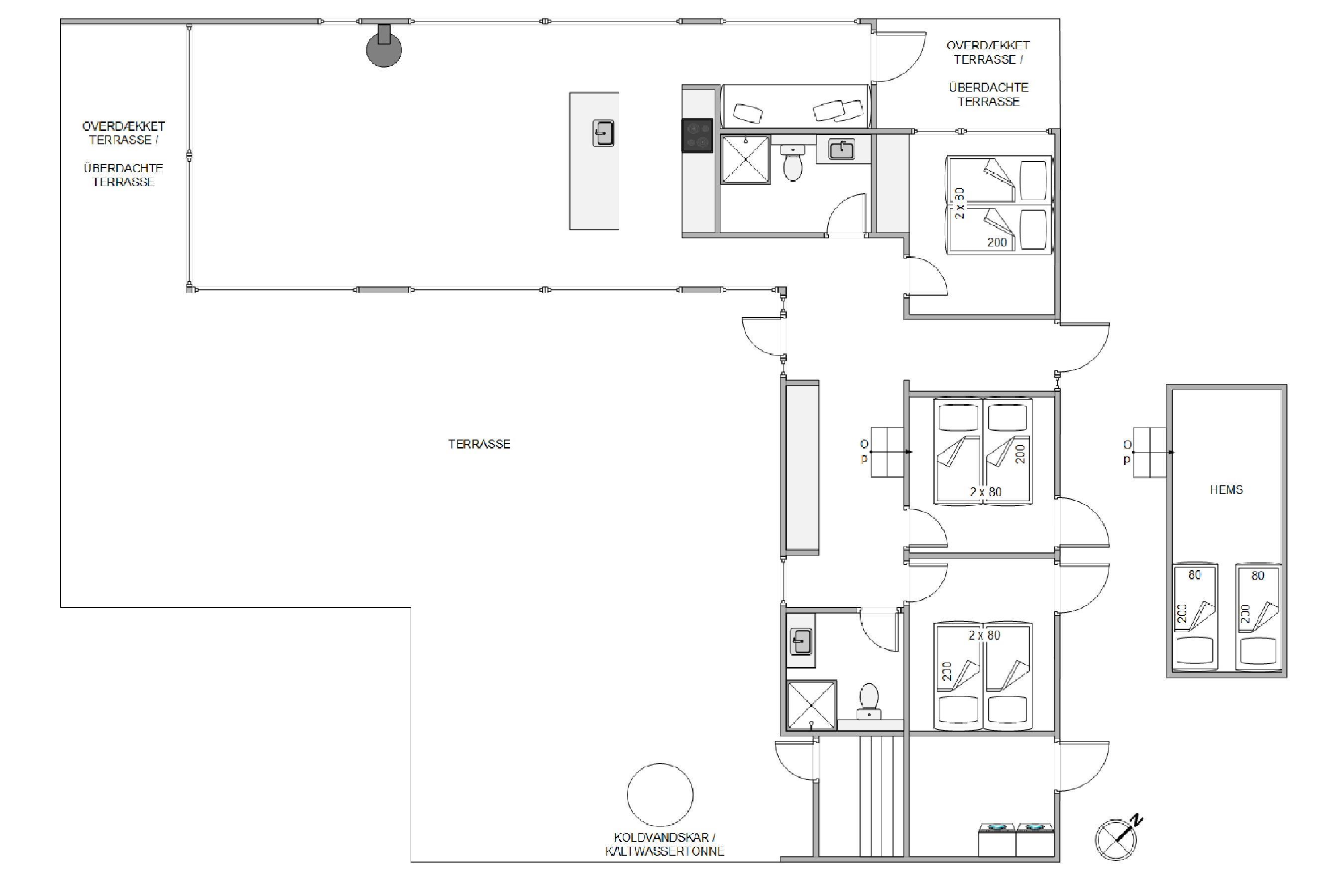 Desuden har sommerhuset en hems, der tilbyder soveplads til to personer - noget som børnene vil elske. Sommerhusets samlingspunkt vil uden tvivl være den store og lyse opholdsstue med kombineret stue, køkken og spiseplads, hvor I har rig mulighed for være sammen med hinanden. Imens nogle står for at tilberede aftensmaden, kan andre nyde en kop kaffe i sofaen til en god film - enten i fjernsynet eller med Chromecasten i sommerhuset.
