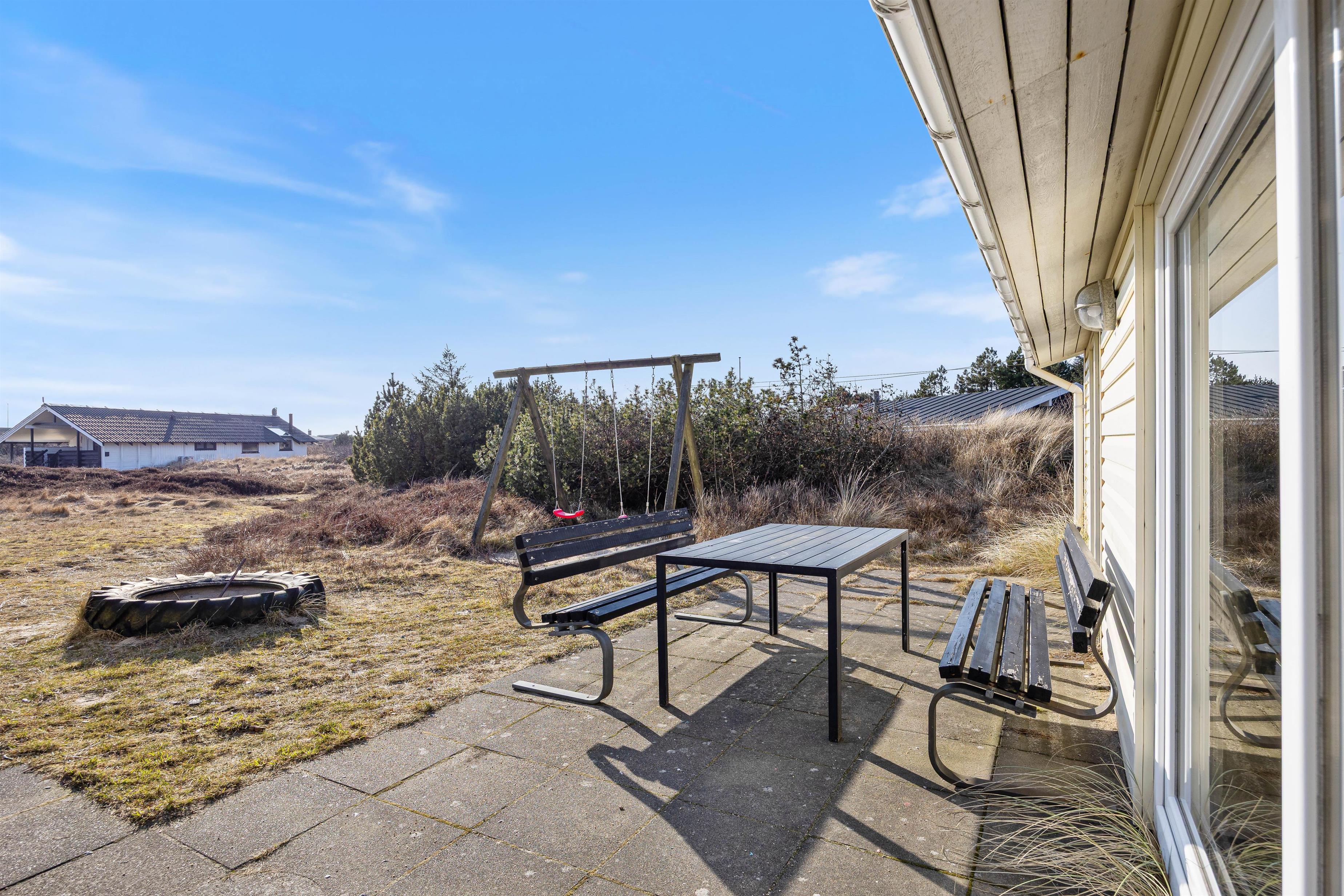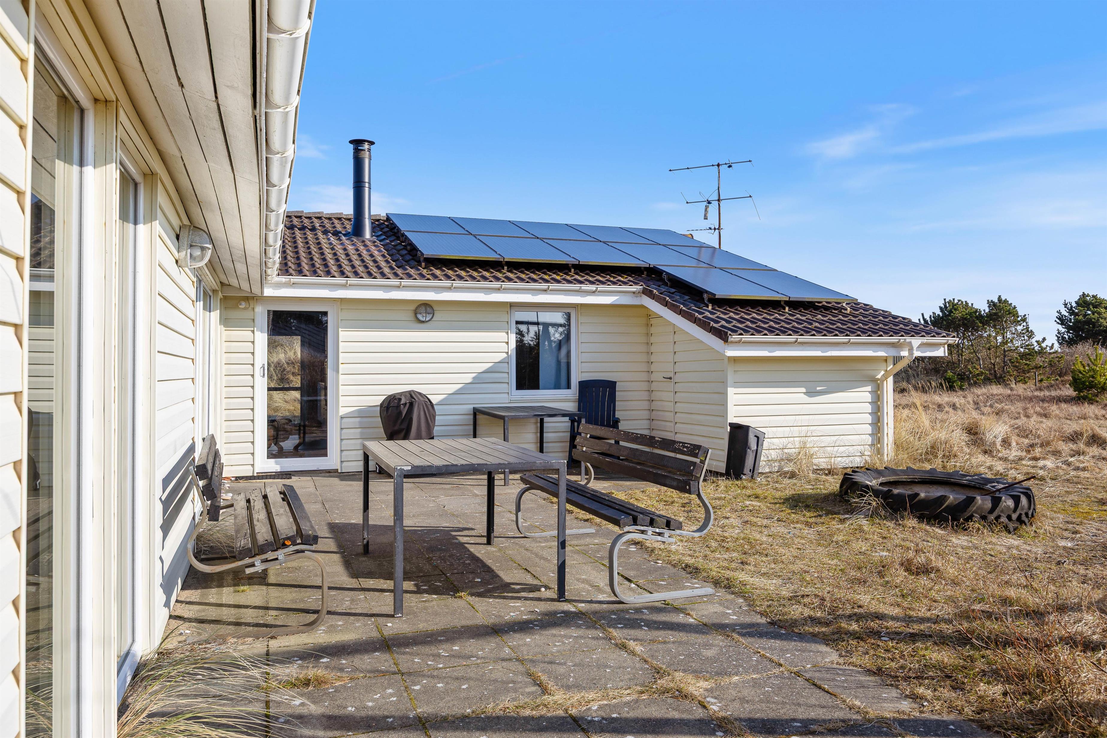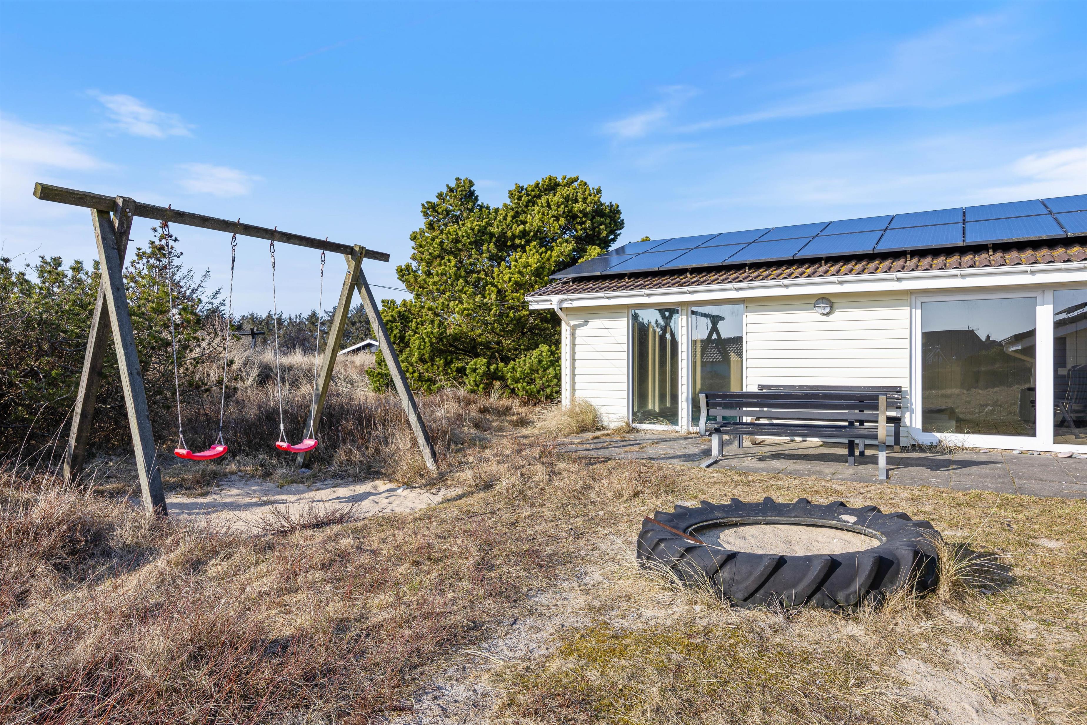 Sommerhuset ligger på en dejlig naturgrund omgivet af klitter, som skaber en rolig og privat atmosfære. Her er der god plads til både leg og afslapning.