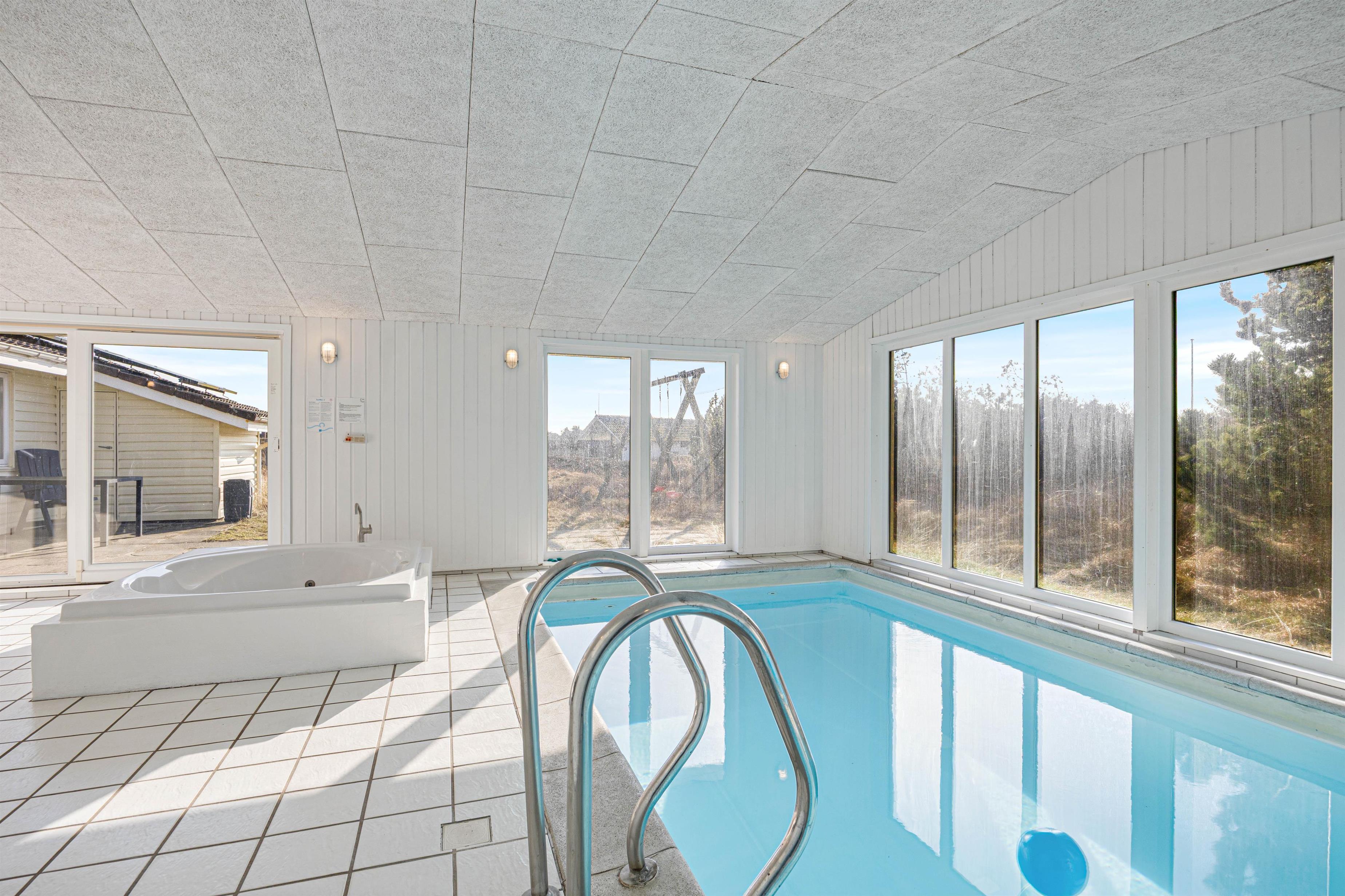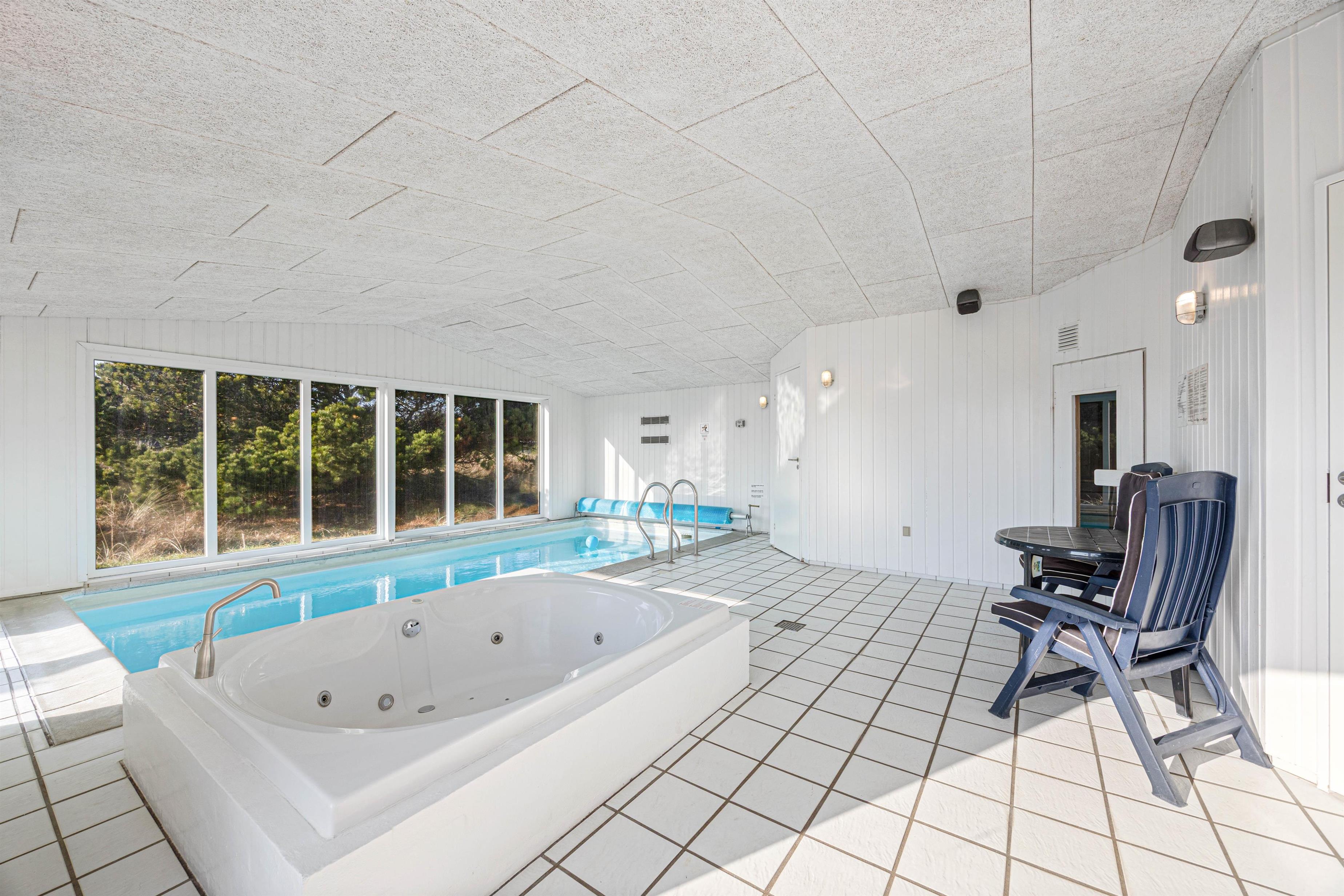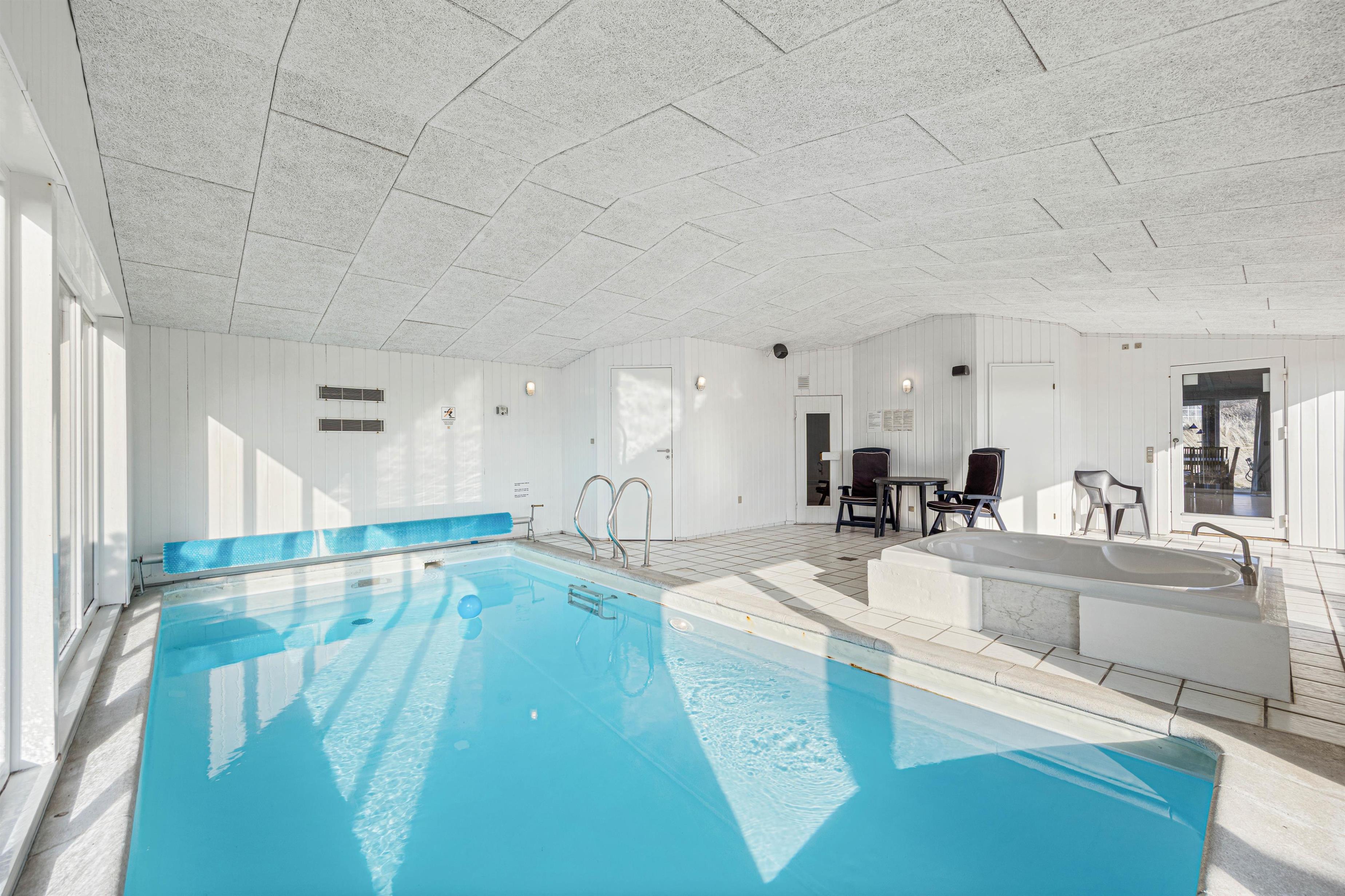 Et særligt highlight i sommerhuset er poolrummet, hvor I finder en indendørs pool med svømmetræner samt sauna og spa – perfekt til både leg og afslapning.