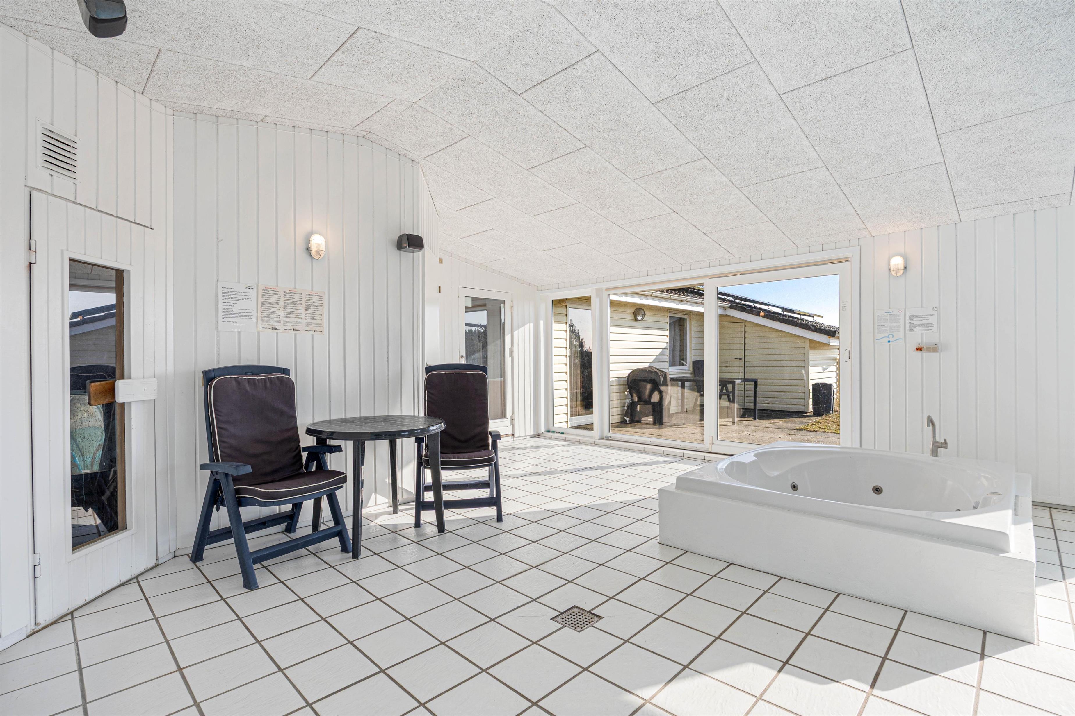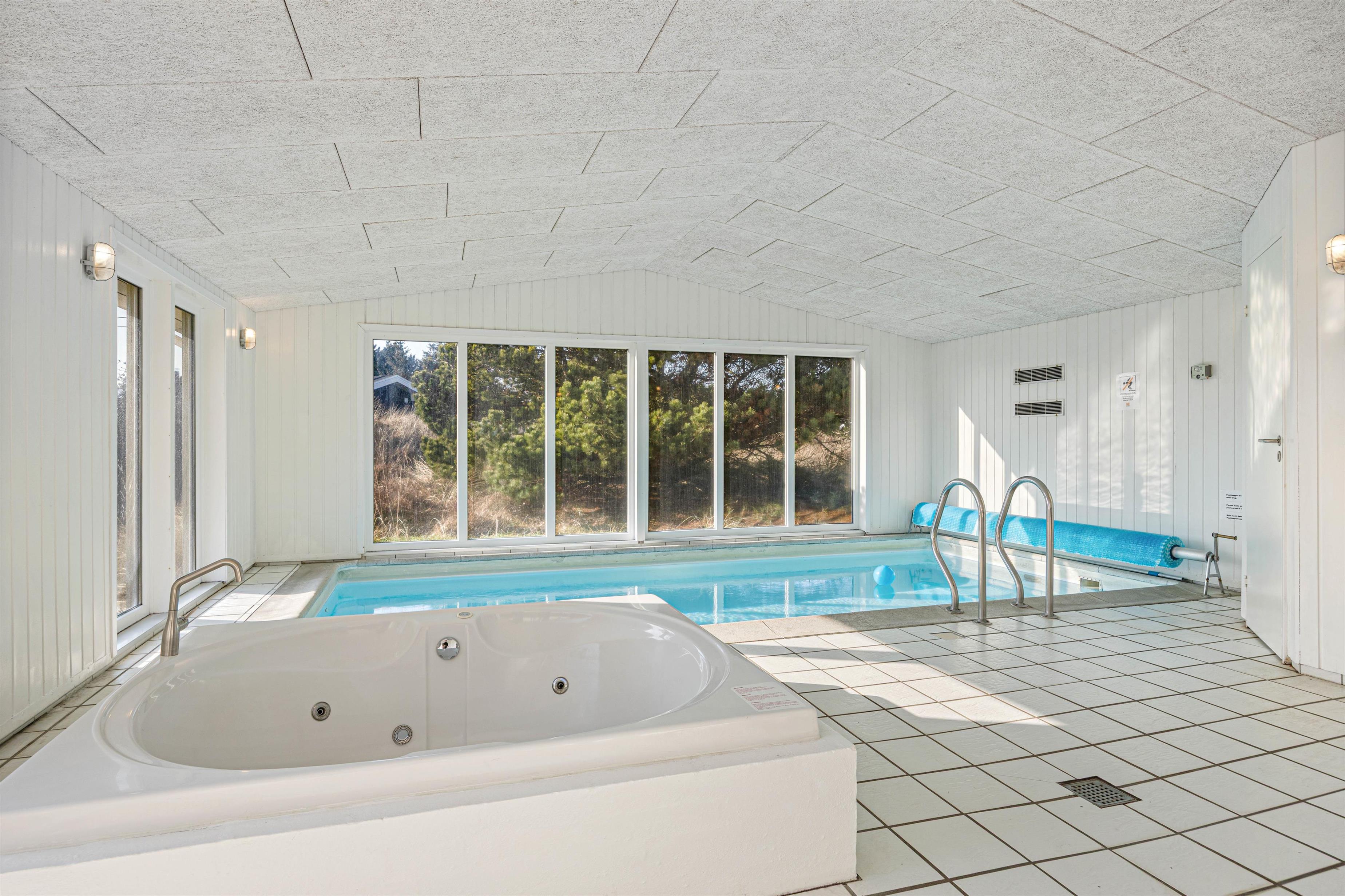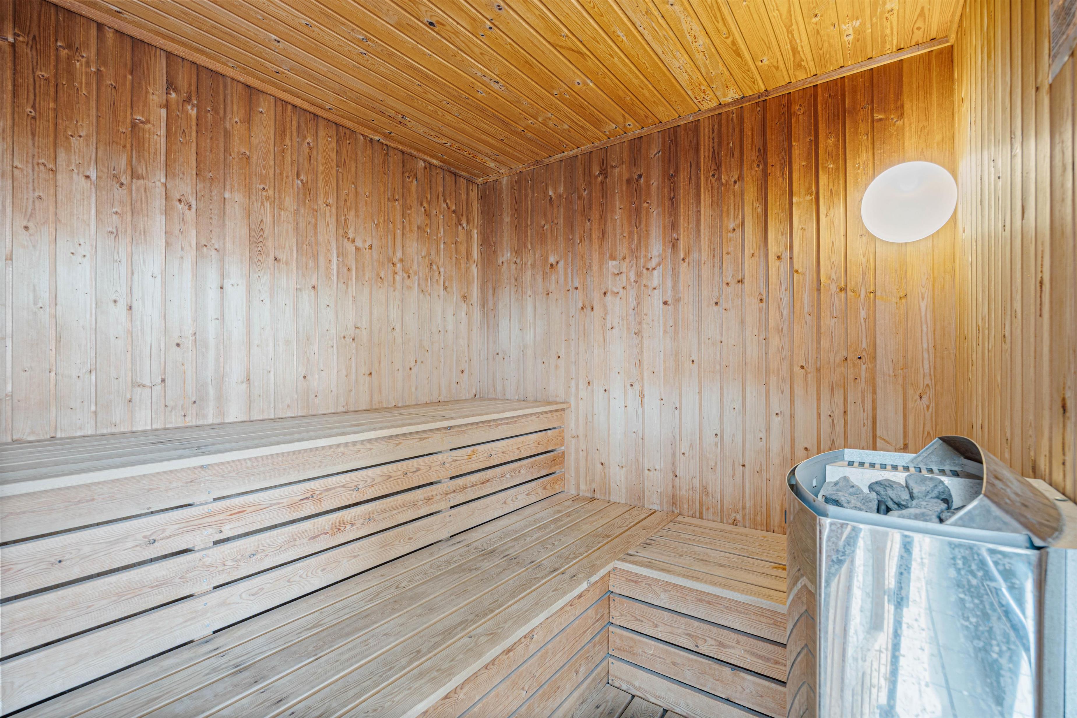 Et særligt highlight i sommerhuset er poolrummet, hvor I finder en indendørs pool med svømmetræner samt sauna og spa – perfekt til både leg og afslapning.