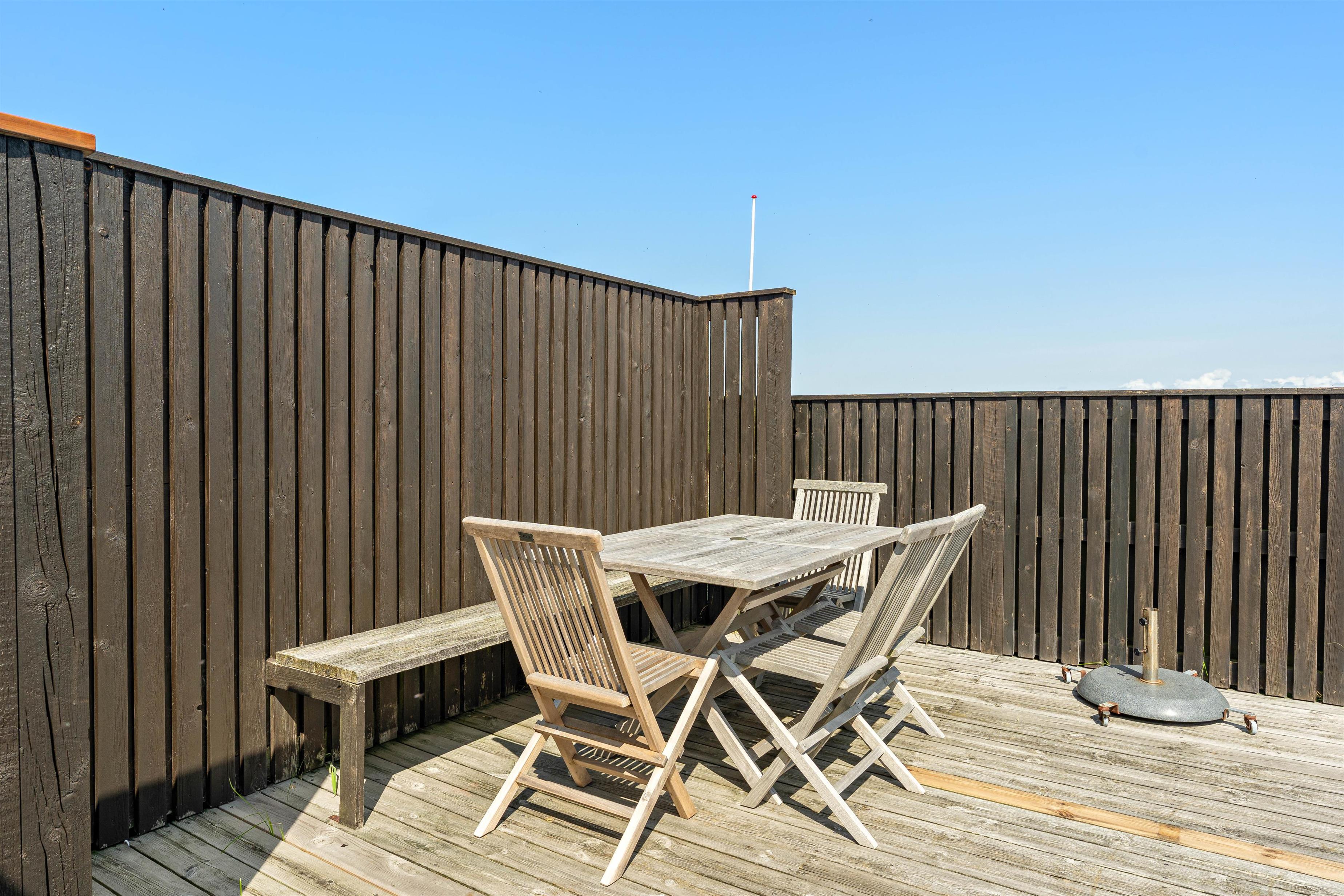 Den udendørs bruser på den store terrasse er en ekstra bonus ved dette sommerhus. Efter en gåtur på kun 250 meter kan I skylle jer af efter at have taget en dukkert i Vesterhavets friske bølger.