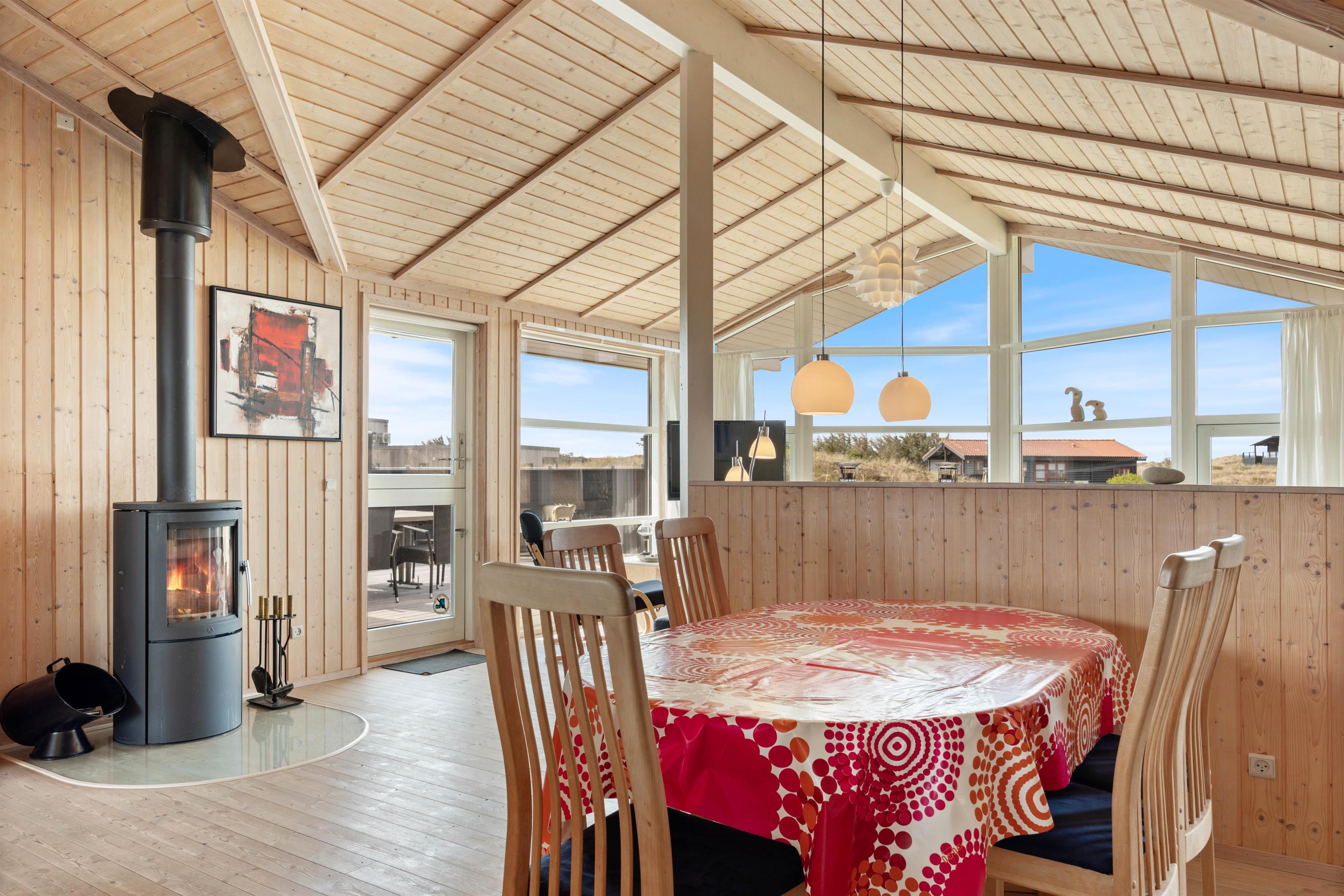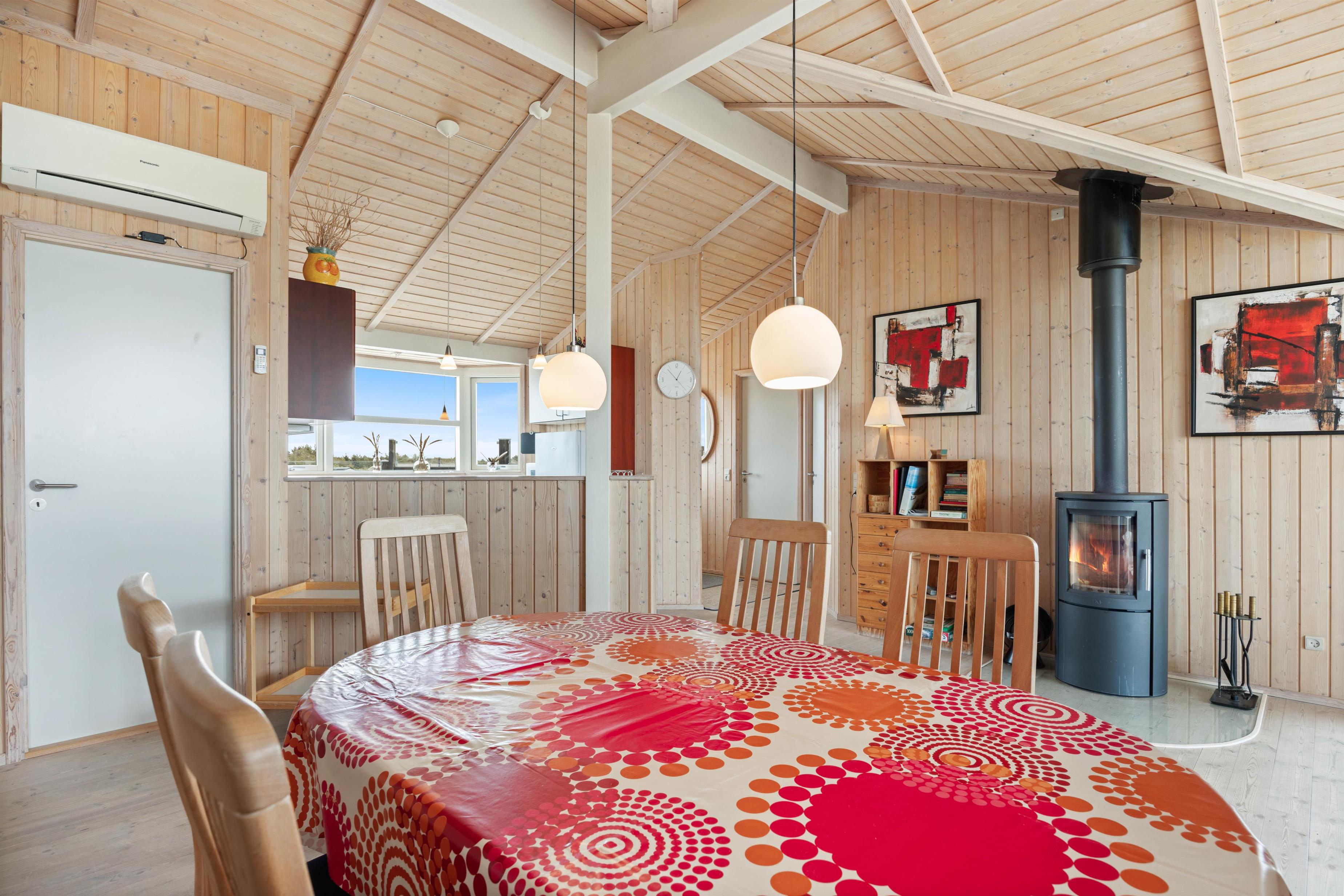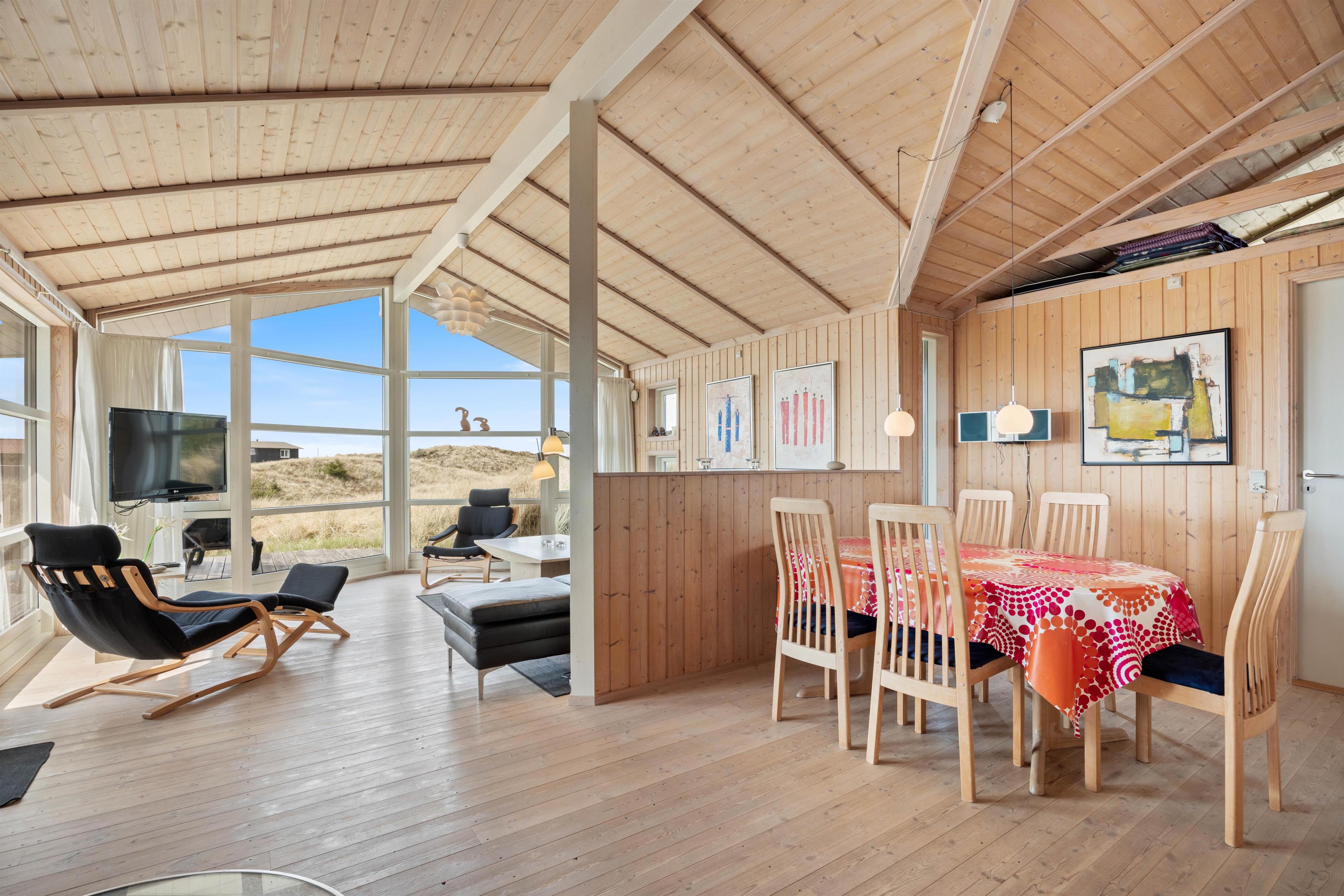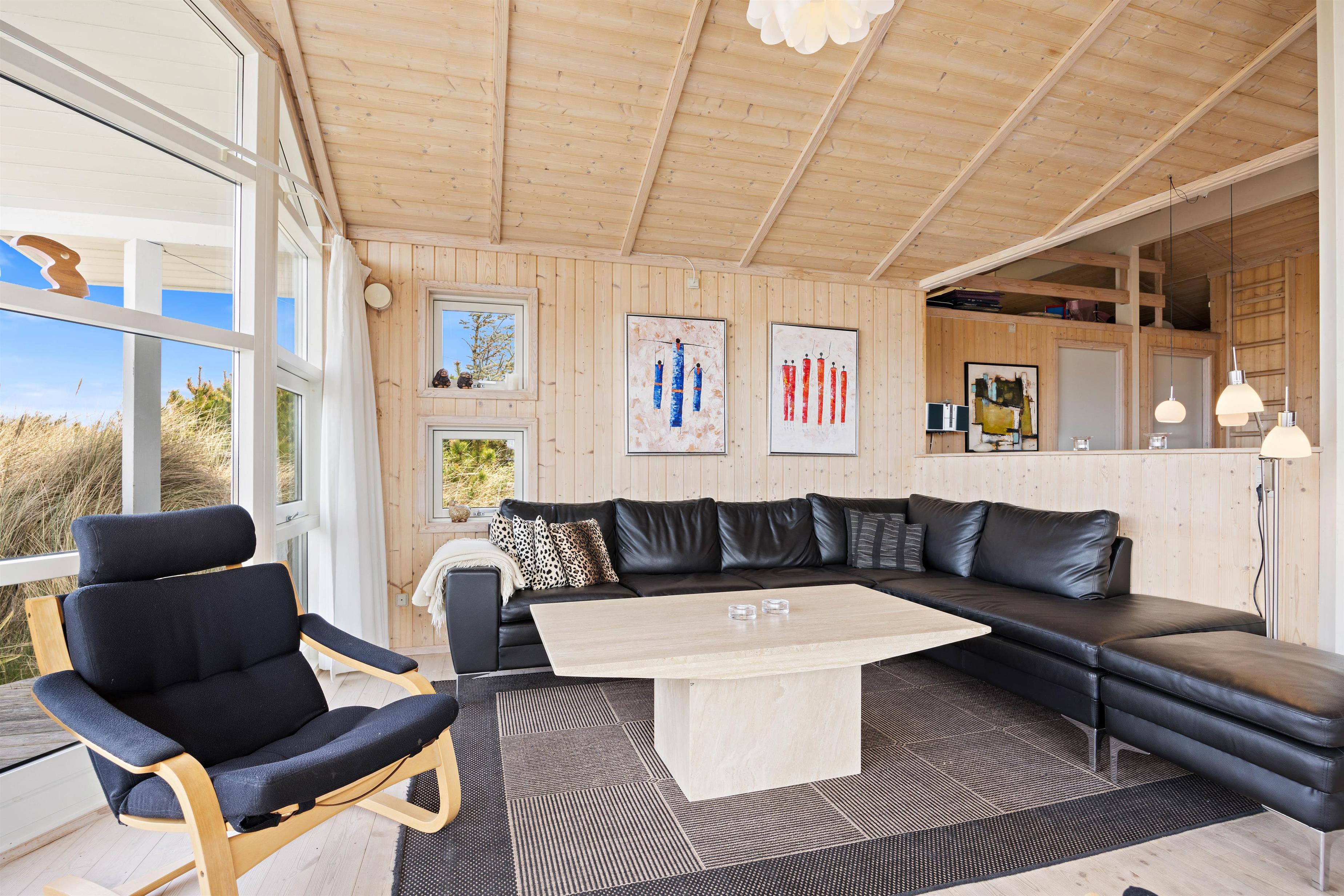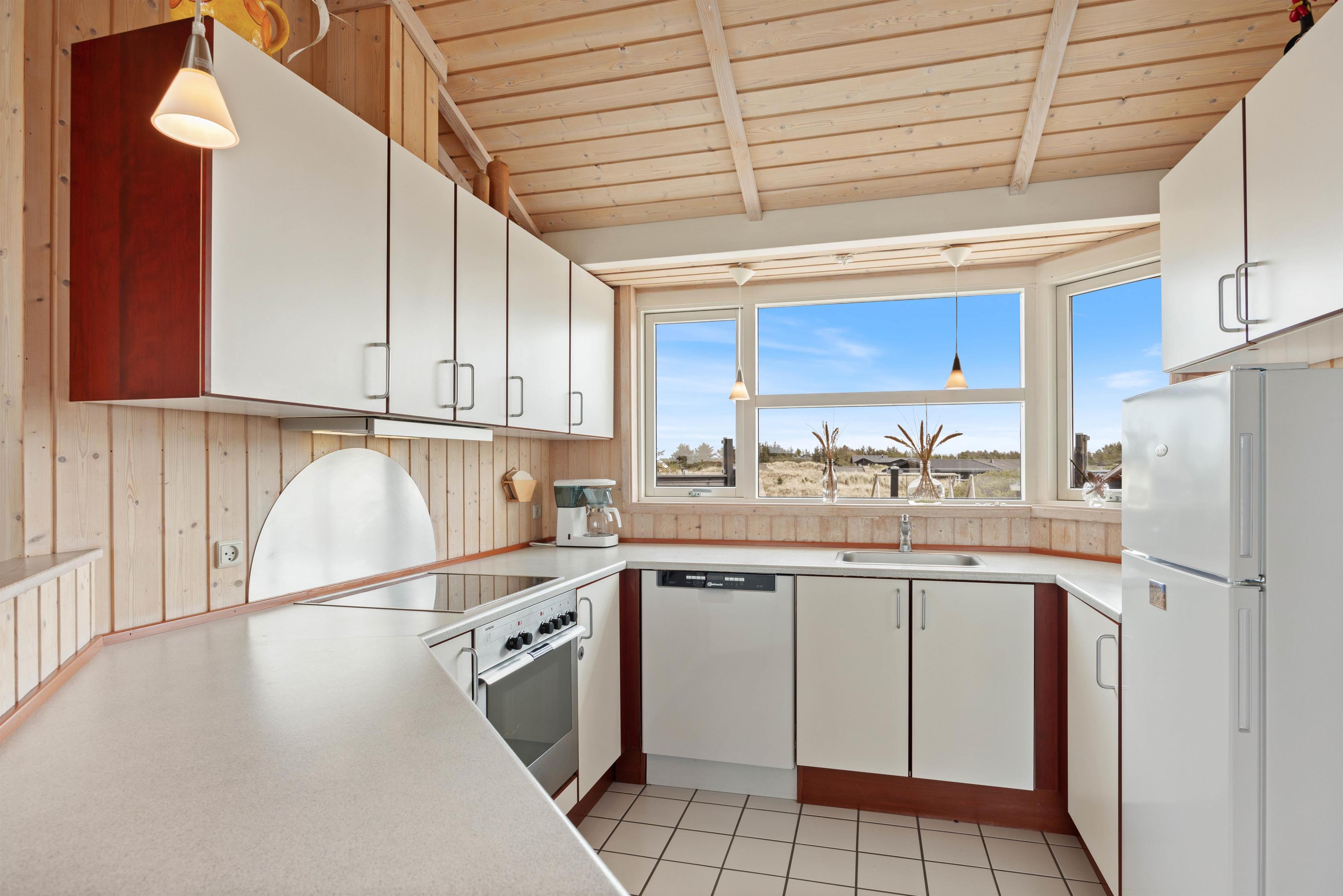 På Trikavej 6 vil I blive mødt af et charmende sommerhus beliggende på en skøn naturgrund med det velkendte klitlandskab. Når I træder ind ad hovedindgangen, vil I blive mødt af de store gulv til loft vinduer, som lyser køkkenalrummet helt op og giver det skønneste lysindfald. Køkkenalrummet fremstår derfor både lyst og rummeligt og giver en rigtig afslappende atmosfære.