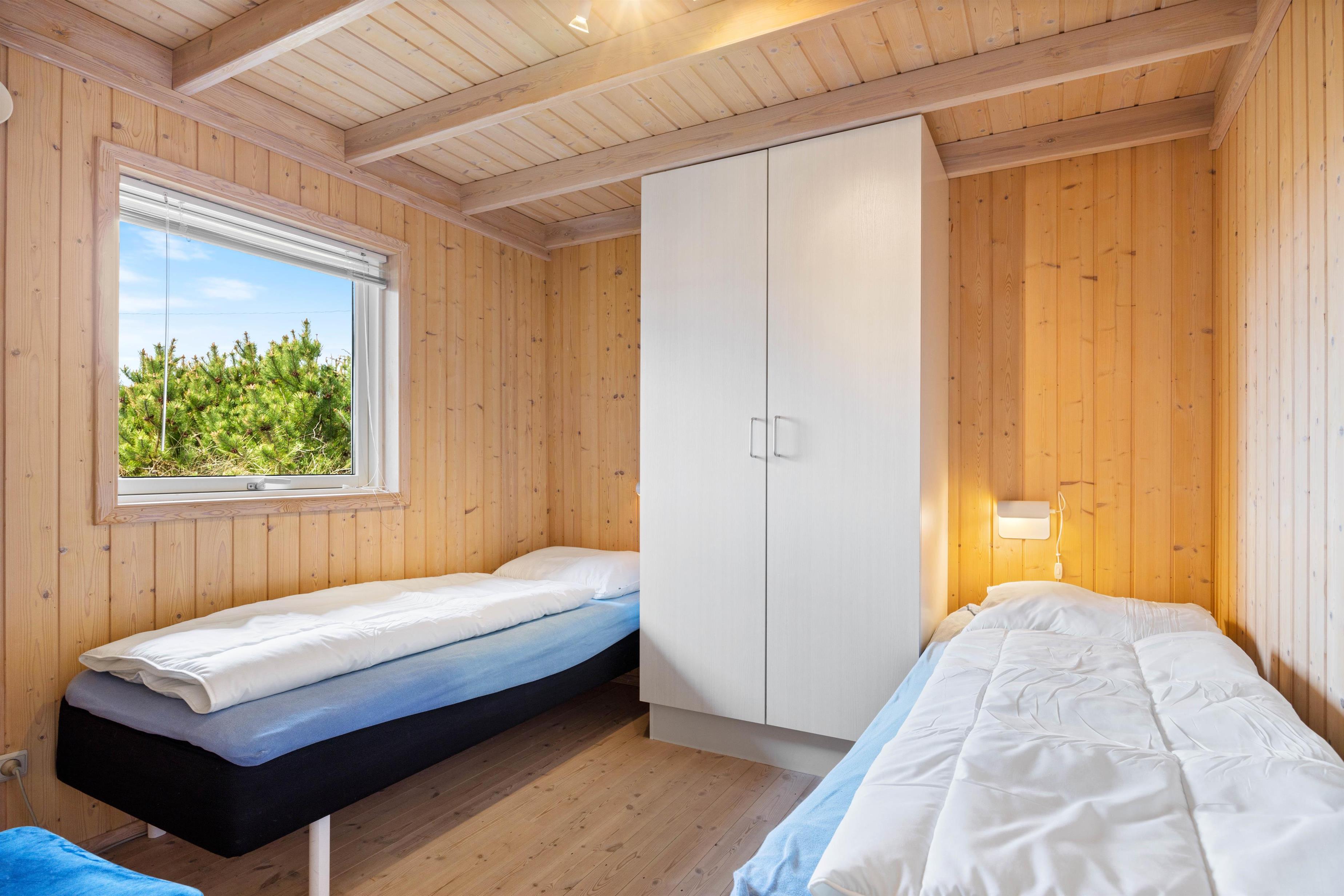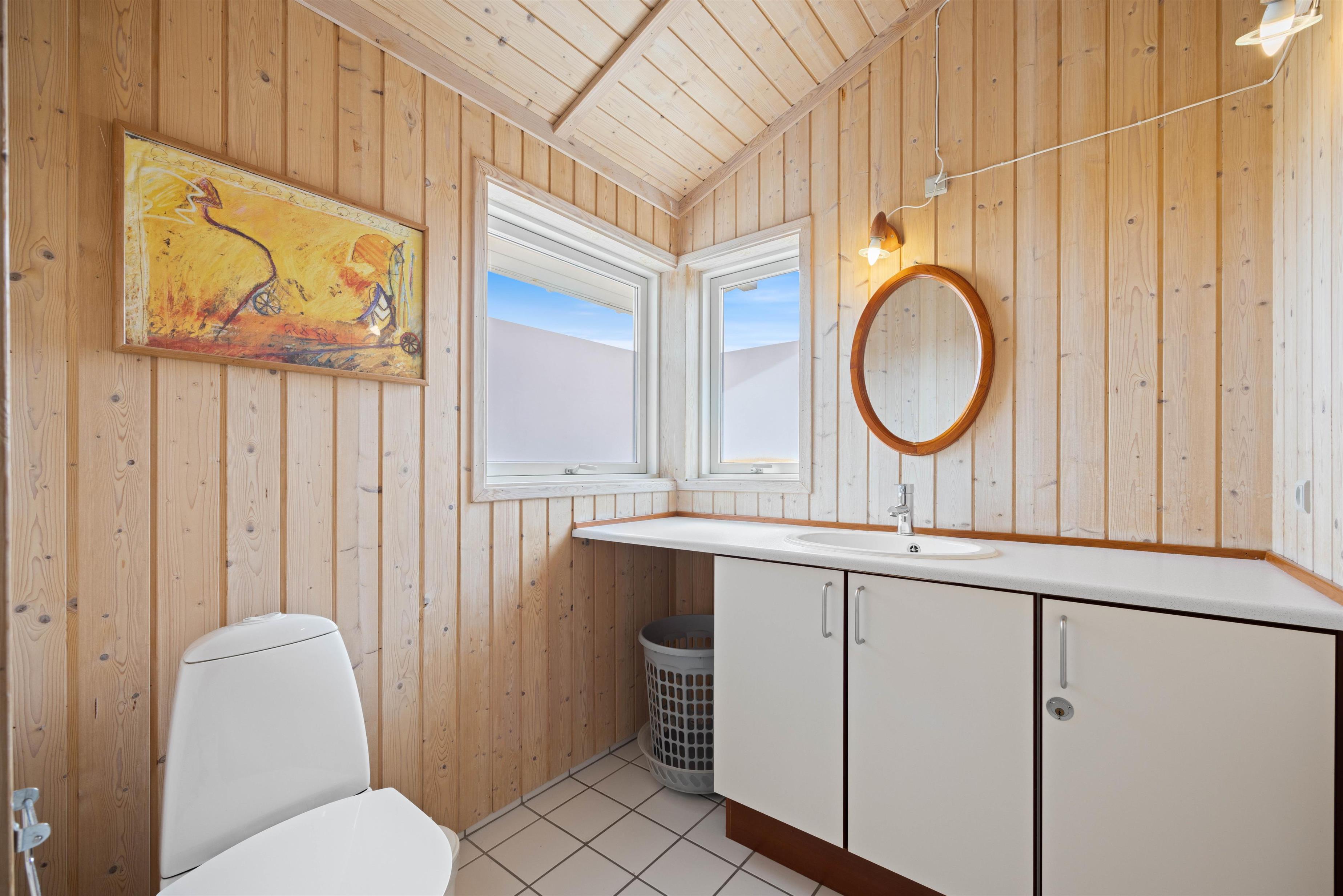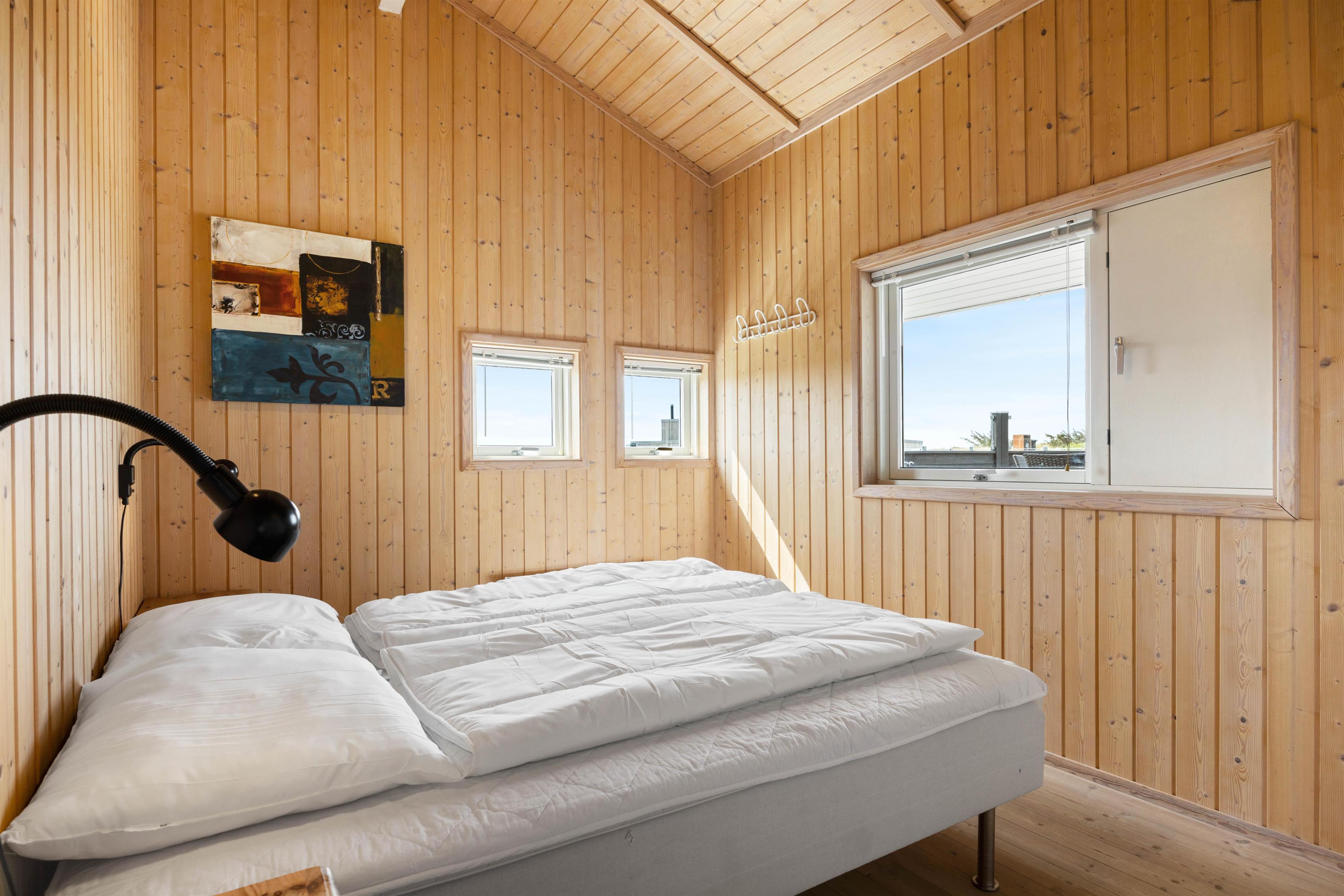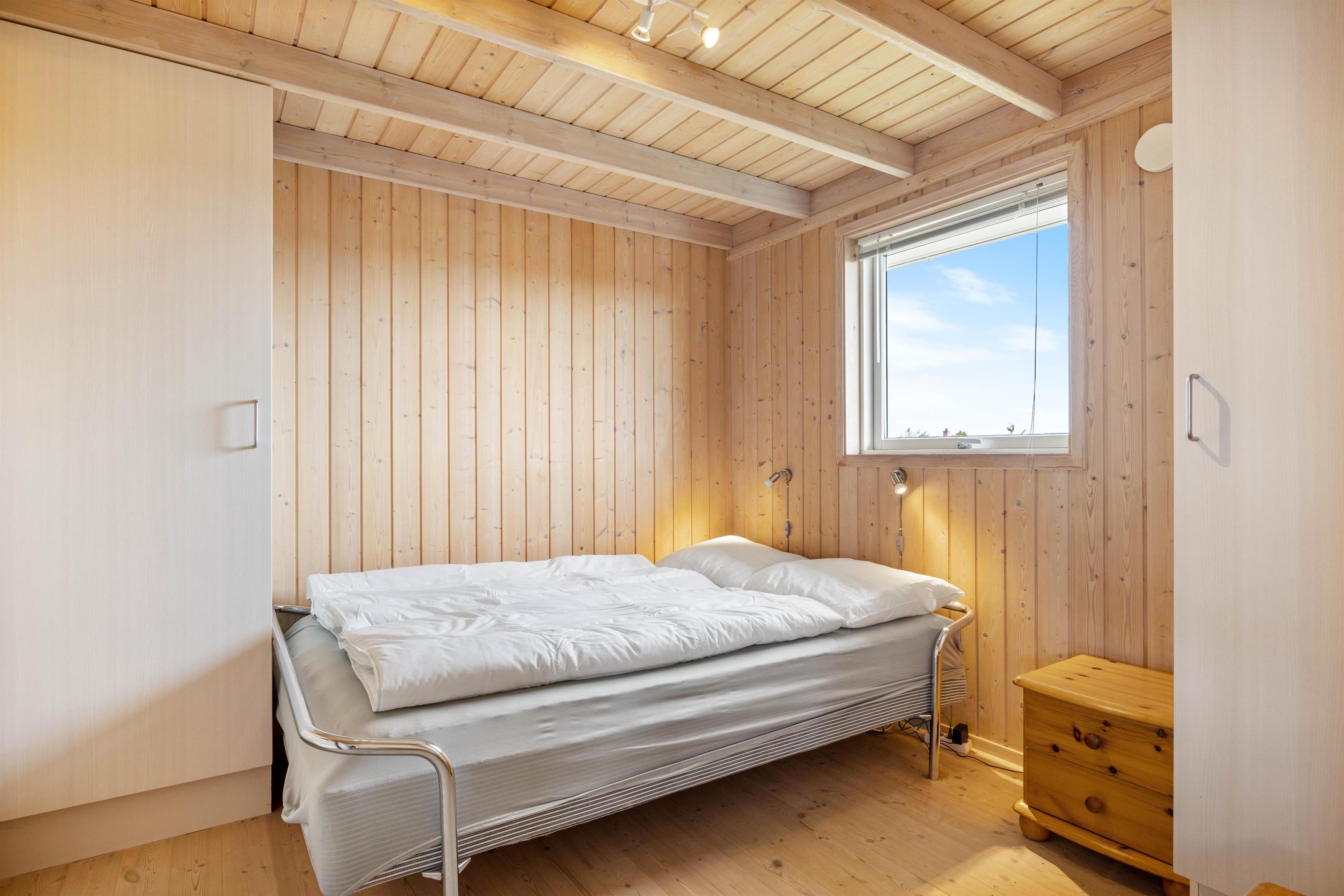 Til aften venter nogle hyggelige og rummelige værelser med lyse trævægge, loft og gulve. Her er I sikre på at få en god nats søvn, så I er klar til næste dags oplevelser. Der er også ét badeværelse i sommerhuset, som har gulvvarme. Her finder I også vaskemaskinen, som sørger for at børnenes tøj kan blive vasket efter en sjov dag med leg og grin i naturen.