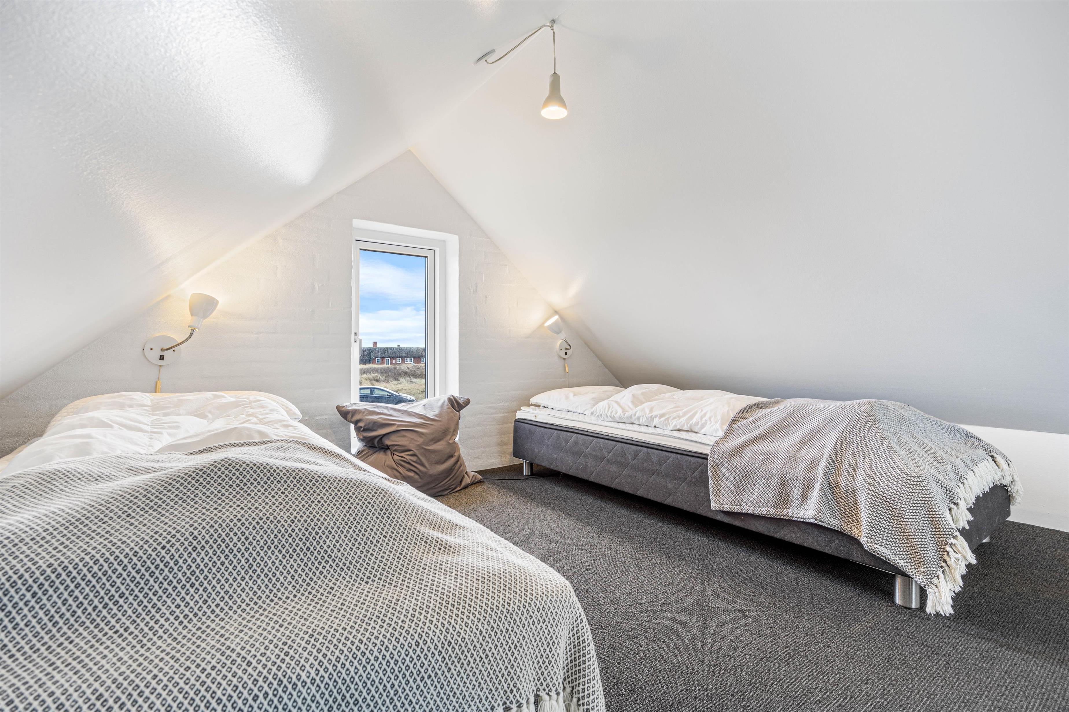 Sommerhuset har en dejlig beliggenhed på en skøn naturgrund et stenkast fra Vesterhavets brusende bølger og dejligt, hvidt strandsand. Er du frisk på en morgendukkert, har du kun et par få minutteres gang til vandet. Huset har desuden to flotte terrasser mod øst og vest og med både havemøbler, liggestole og gril.