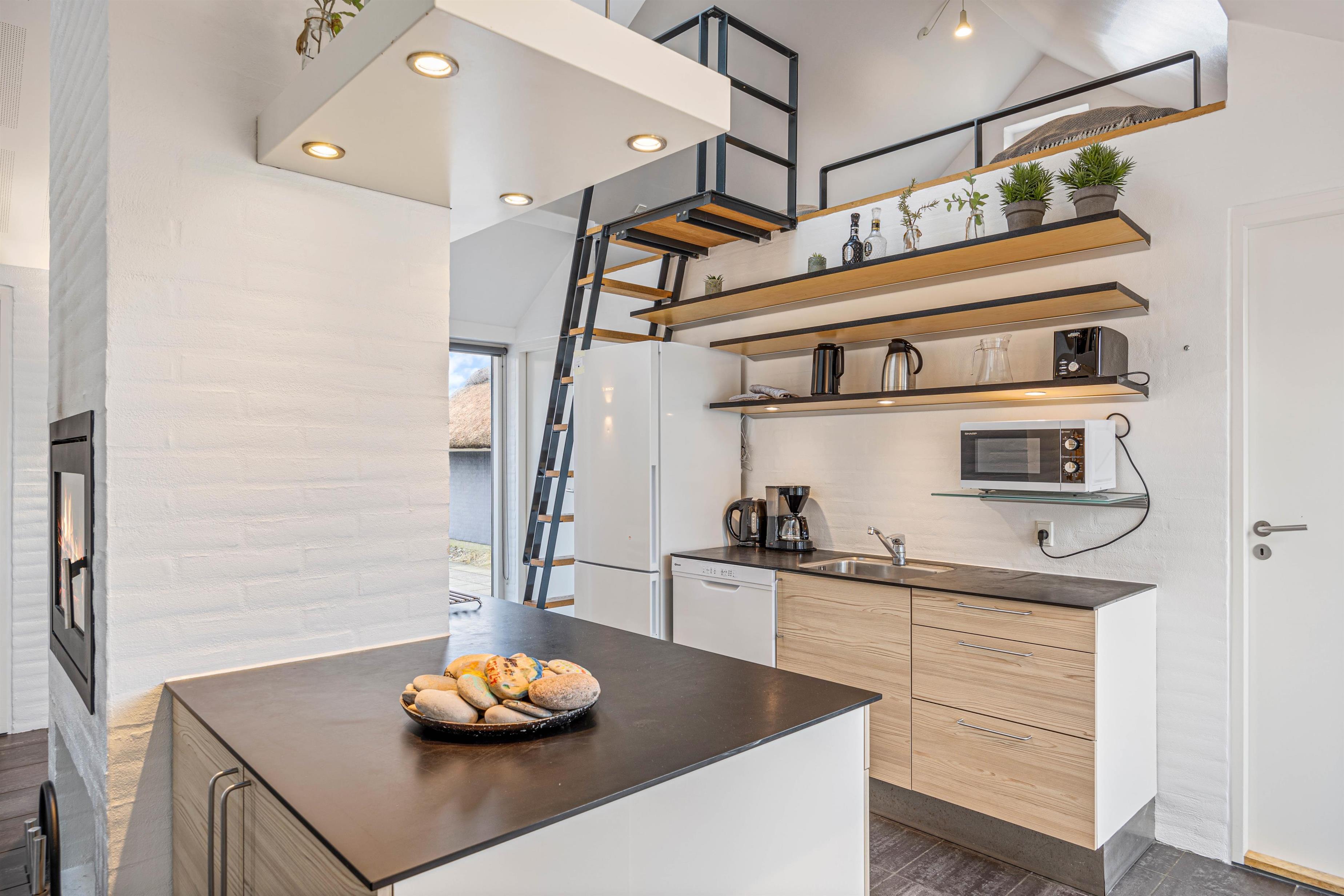 Sommerhuset er bygget i 2004 og både indvendigt og udvendigt fremstår huset moderne, flot og velholdt. Huset har en flot og moderne indretning, der sammen med loftet, der går til kip, giver en masser af luft og lysindfald til det store åbne køkken og opholdsrum. Her kan familien samles over madlavningen eller hygge i sofagrupperne.