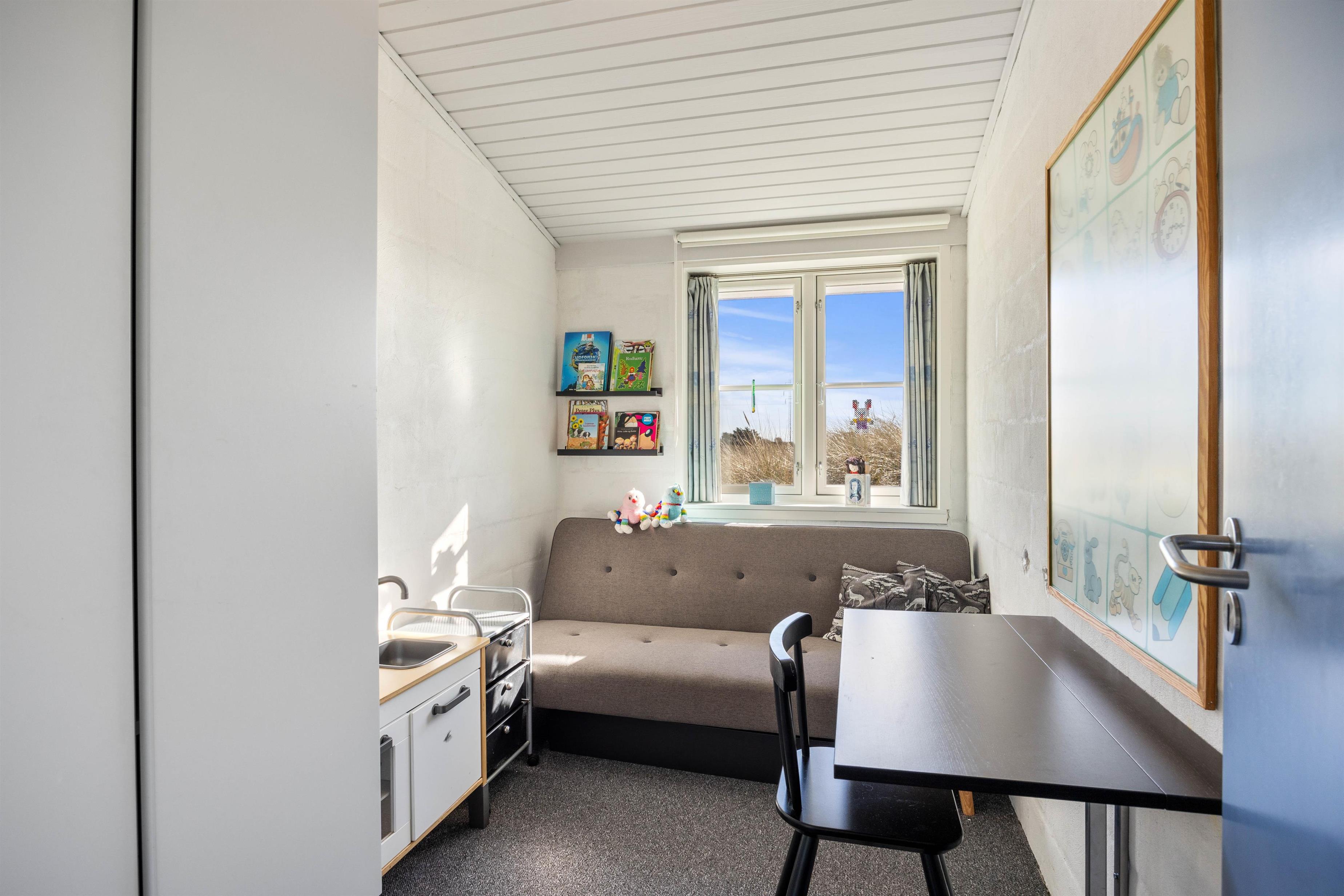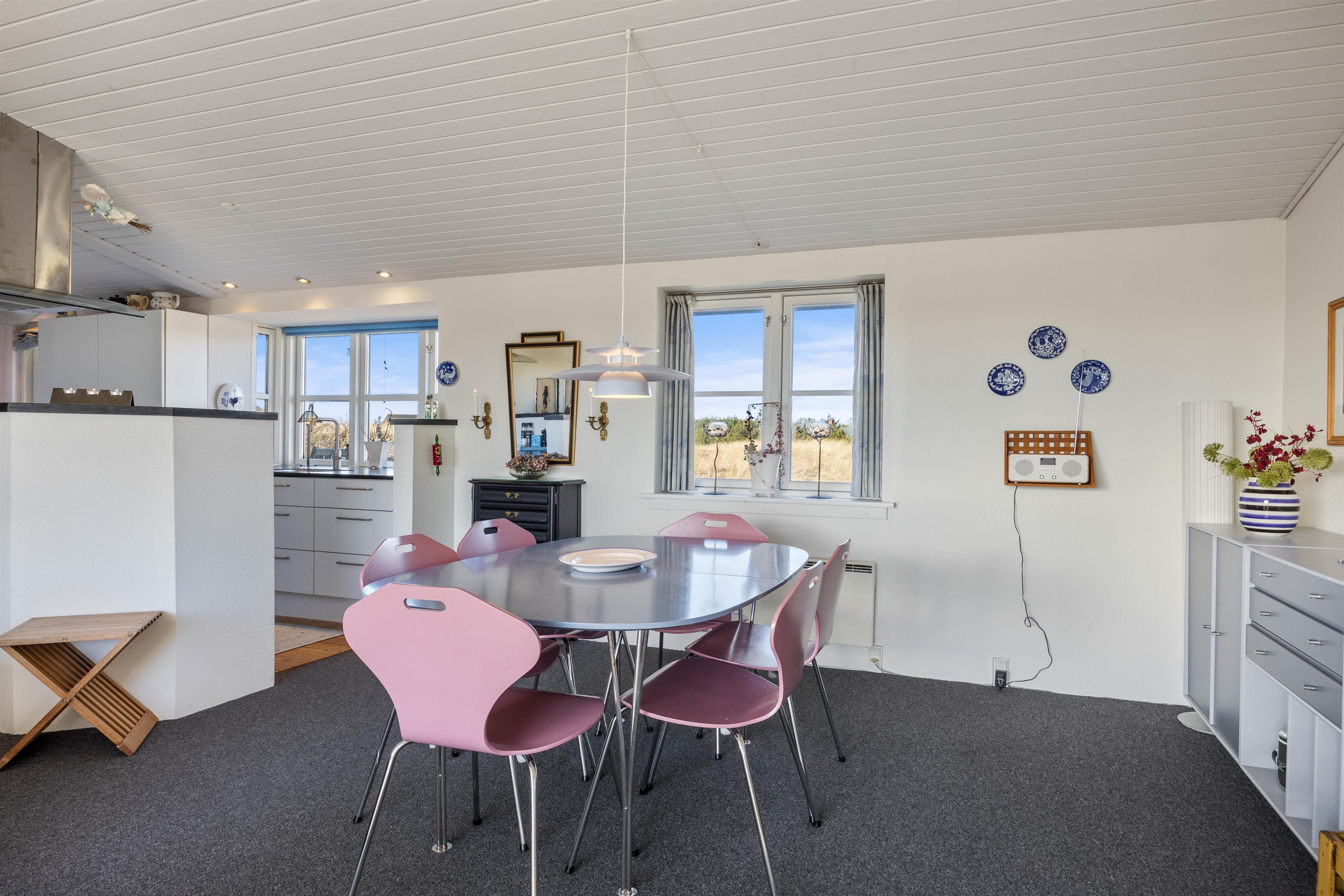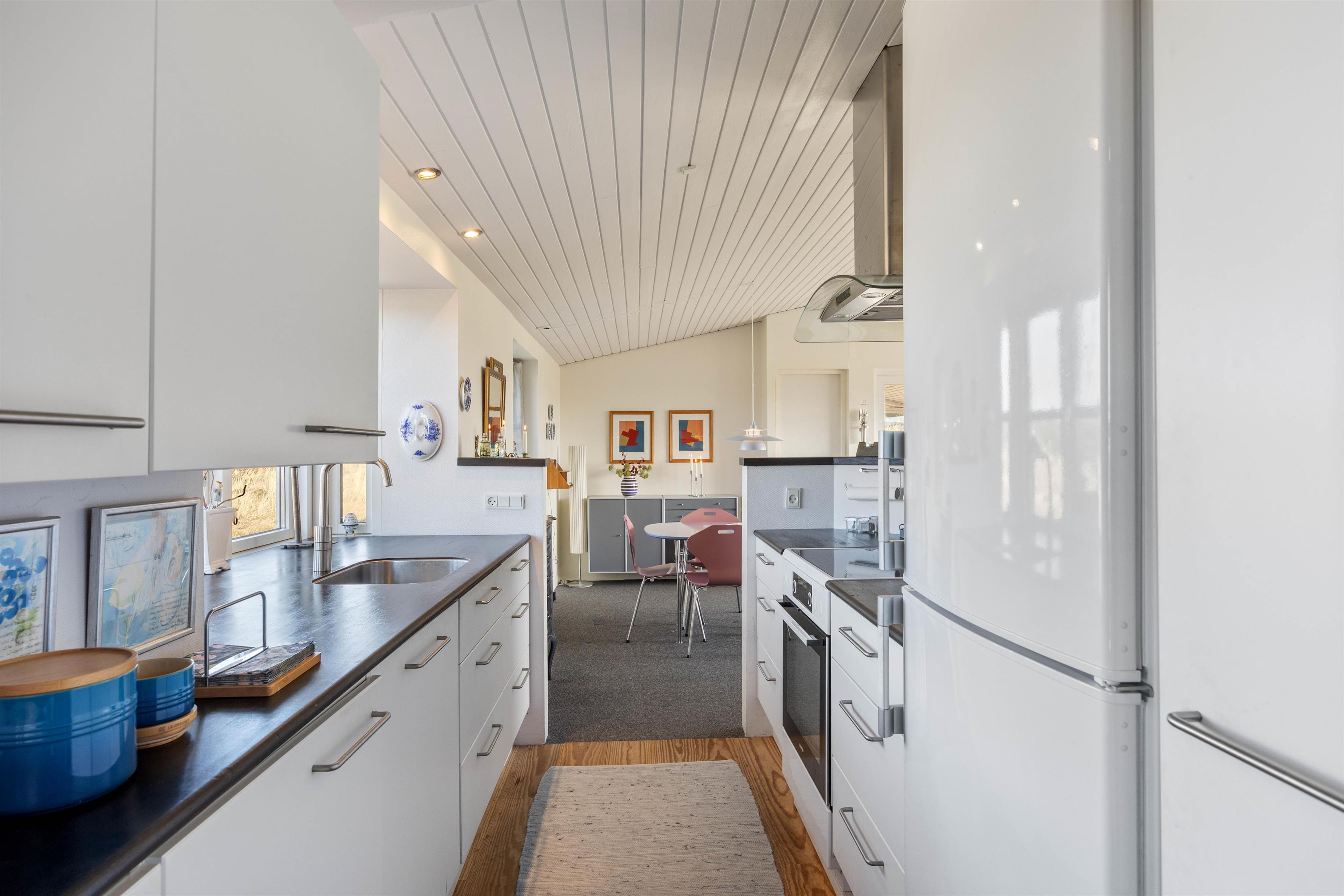 Nyd den afslappende atmosfære dette sommerhus byder på. Om det er i det dejlige rummelige køkkenalrum med et lækkert måltid, et brætspil eller et tv-program på husets fladsskærms-tv. I Køkkenalrummet vil I også møde den skønne brændeovn, som altid kan give lidt ekstra varme eller de hyggelige knitrende lyde, som er medvirkende til en hyggelig og klassisk sommerhusstemning.