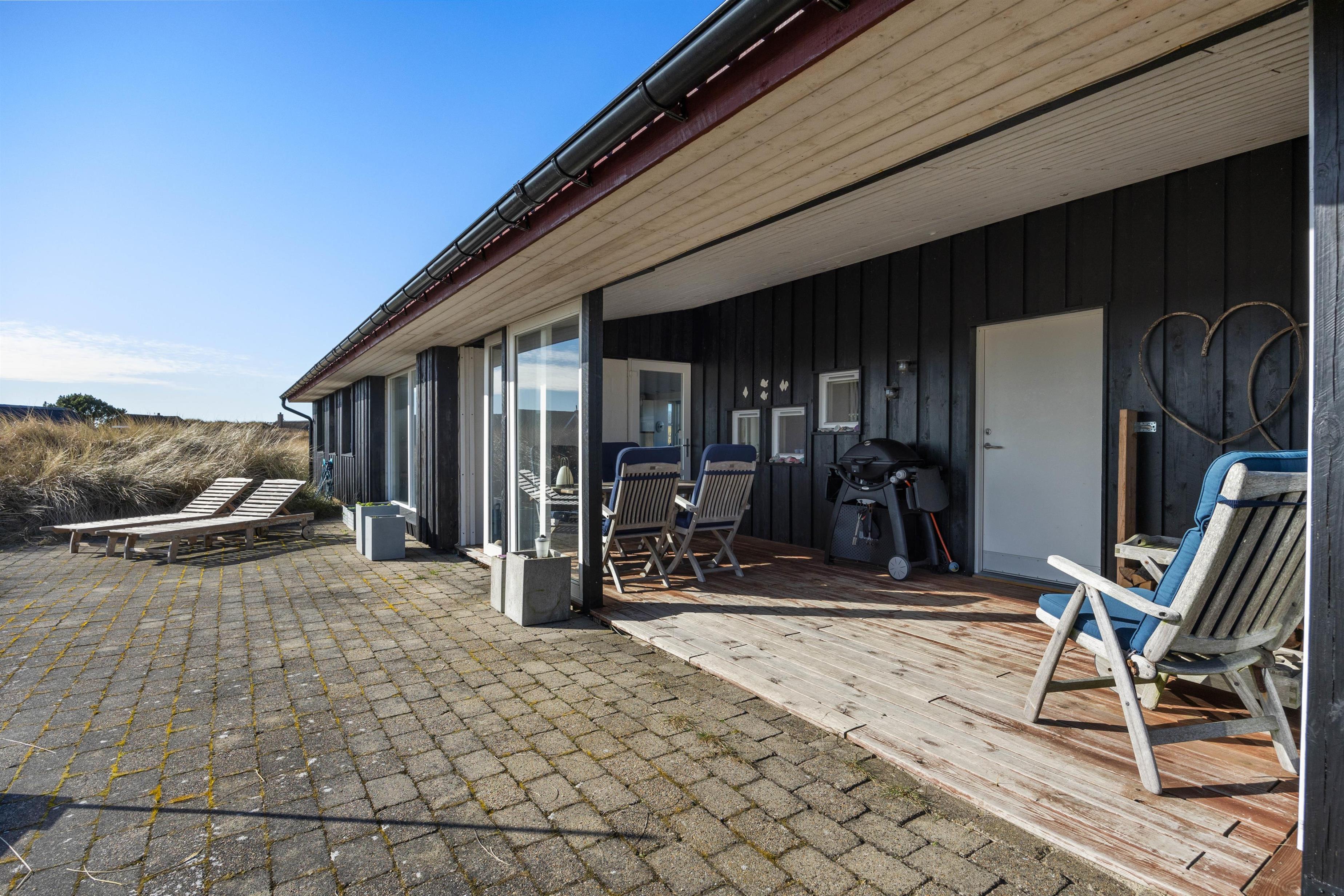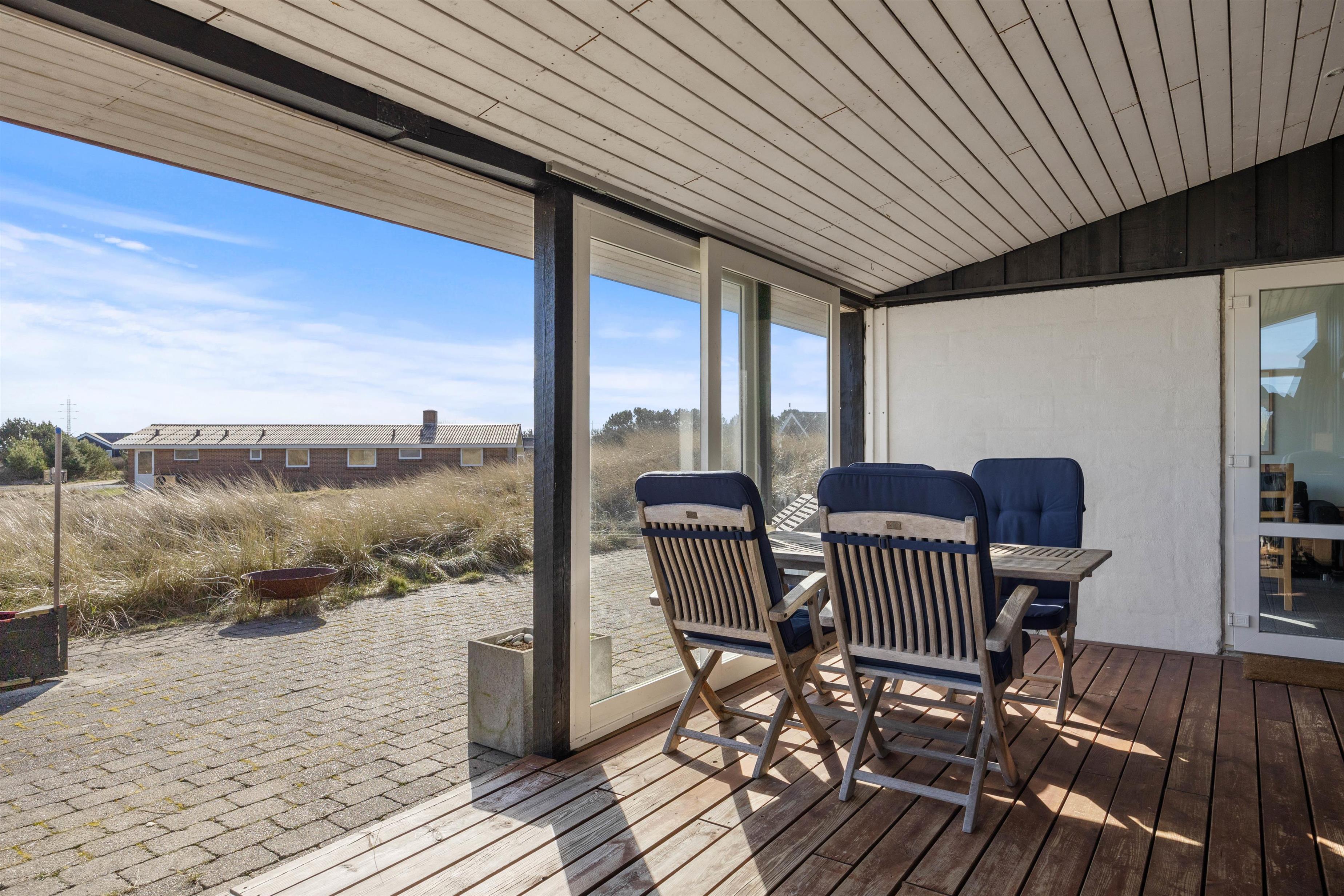 Hvis I ønsker at nyde det skønne danske vejr, kan I med fordel bevæge jer ud på sommerhusets skønne terrasse. Der er både en åben terrasse, hvor I kan nyde solstrålerne i husets solvogne. Ellers kan I trække jer ind i skyggen på den overdækkede og afskærmede terrasse. Her kan I sidde i læ for alt slags vejr, så I ikke går glip af udendørslivet.