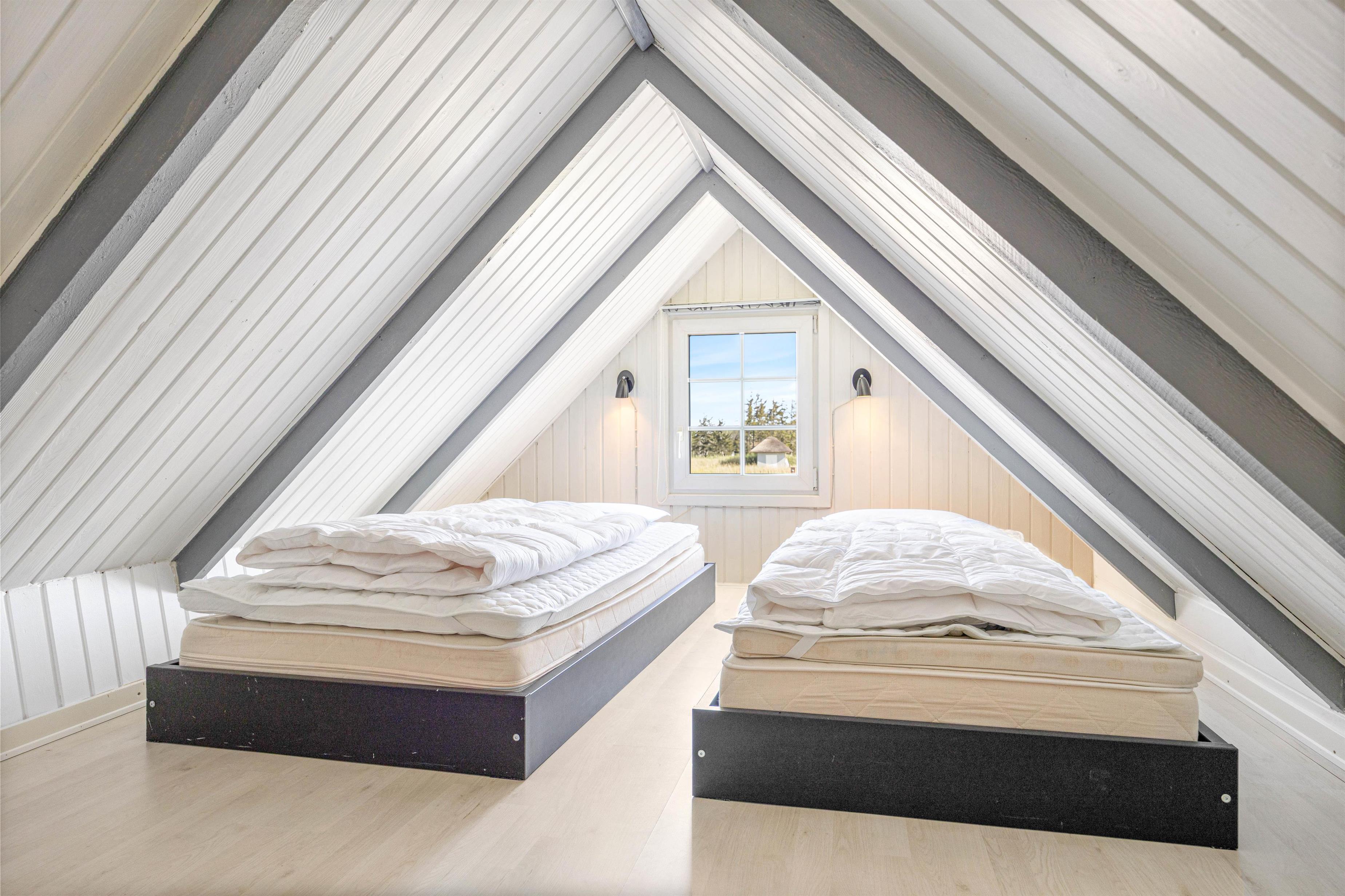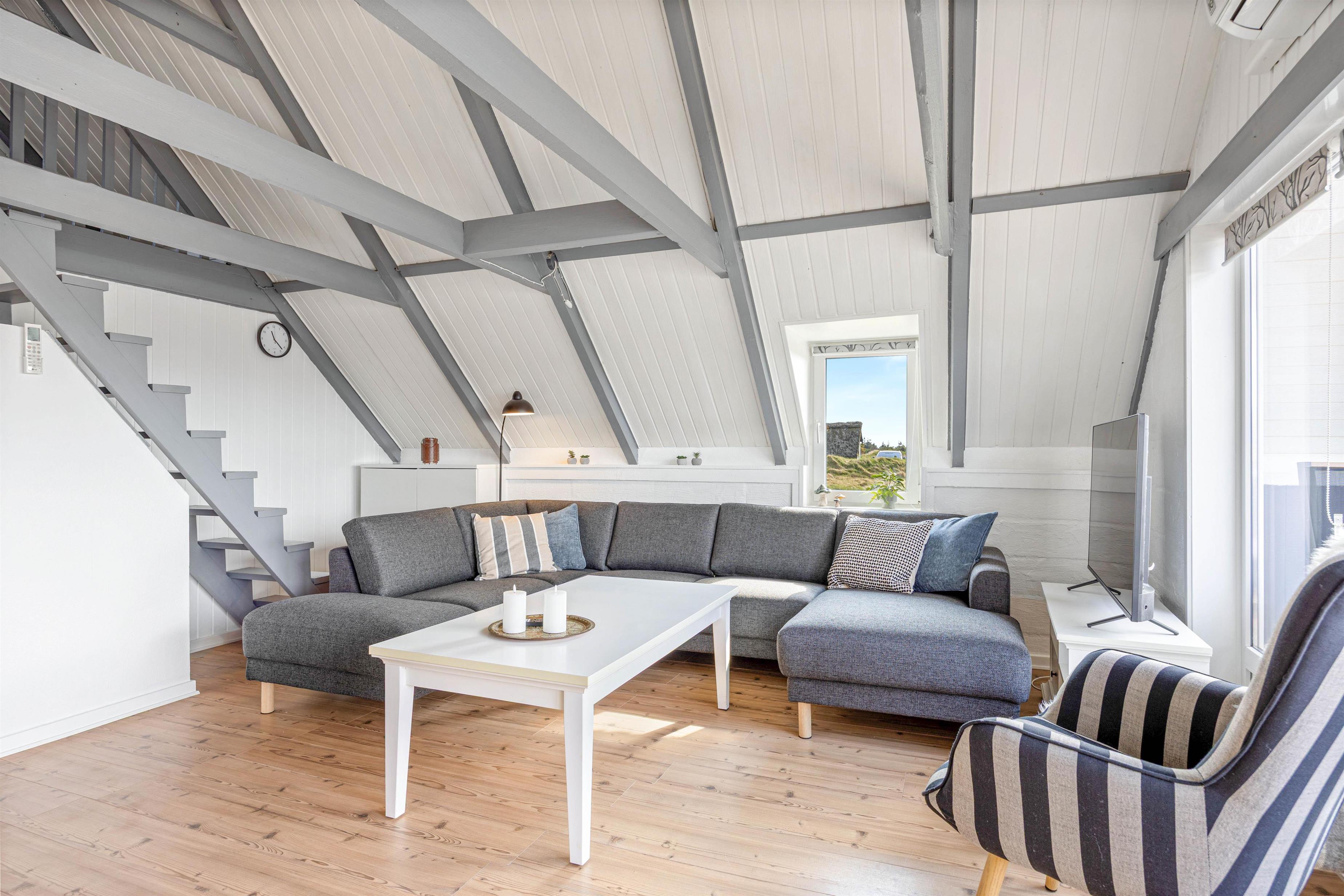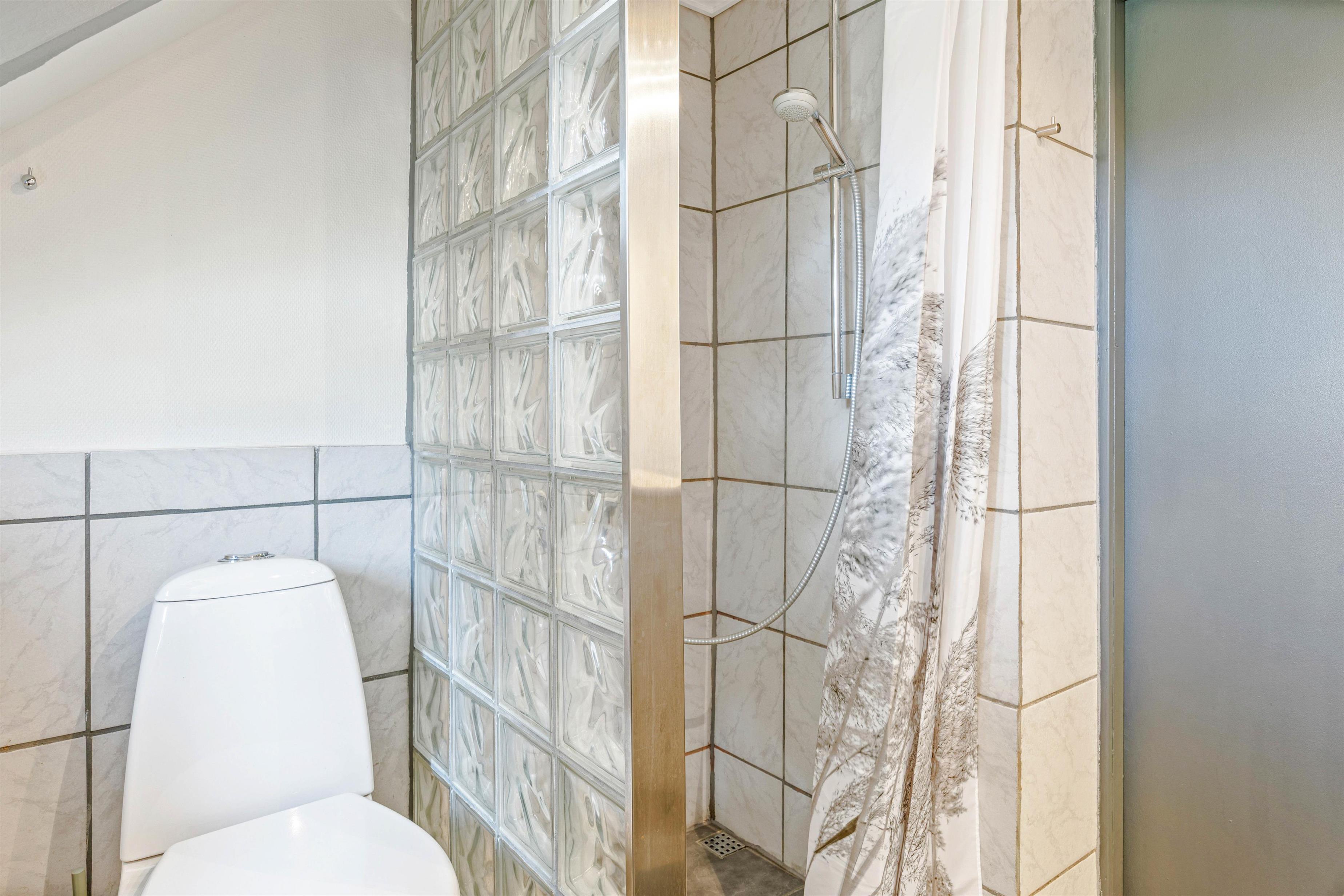 De 6 sovepladser fordeler sig på 2 soveværelser og en hems, så der er god mulighed for at få en god nats søvn efter en dejlig dag. Gulvvarmen på sommerhusets badeværelse sikrer en behagelig start på dagen, selv på de køligere morgener.