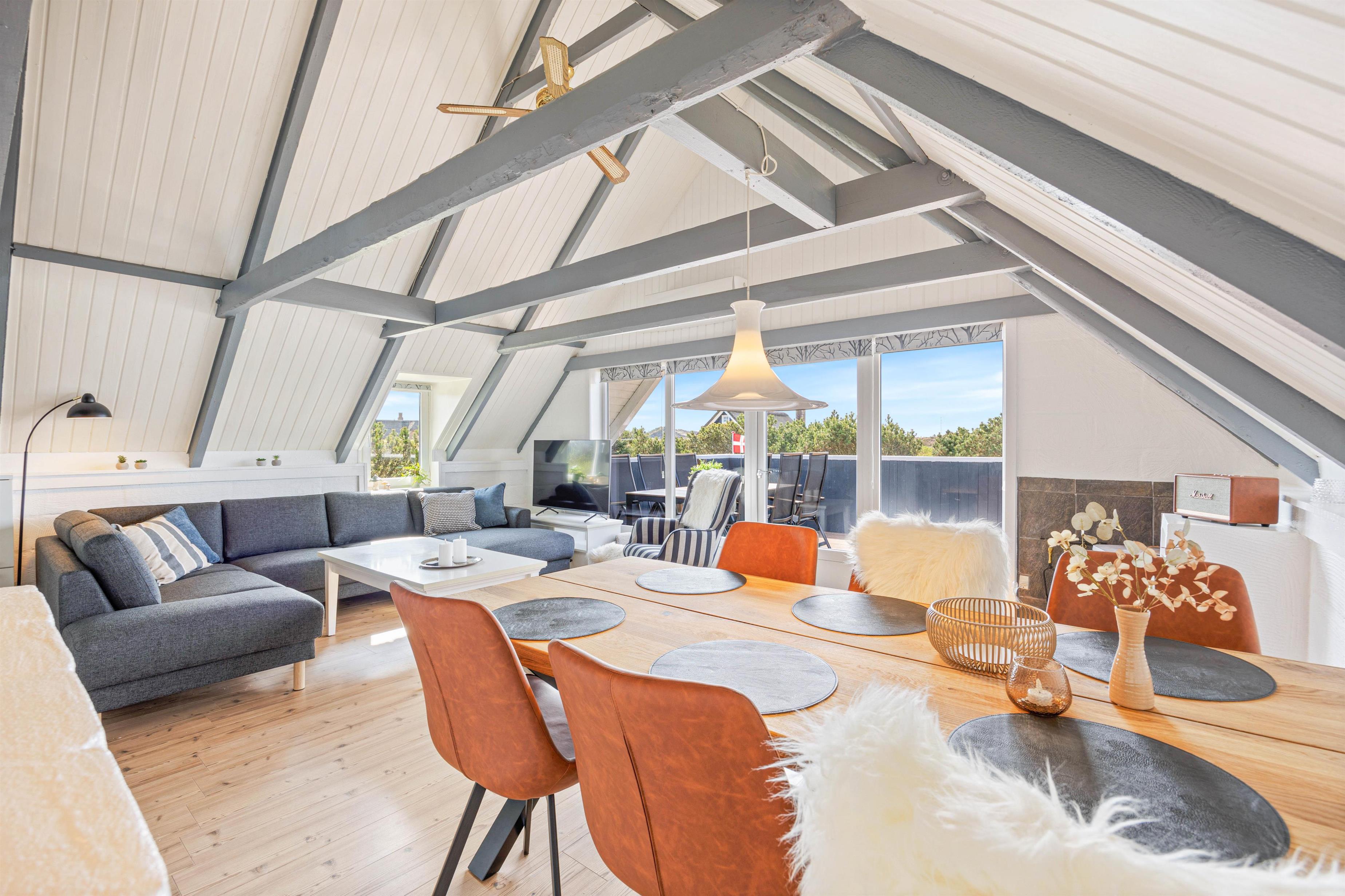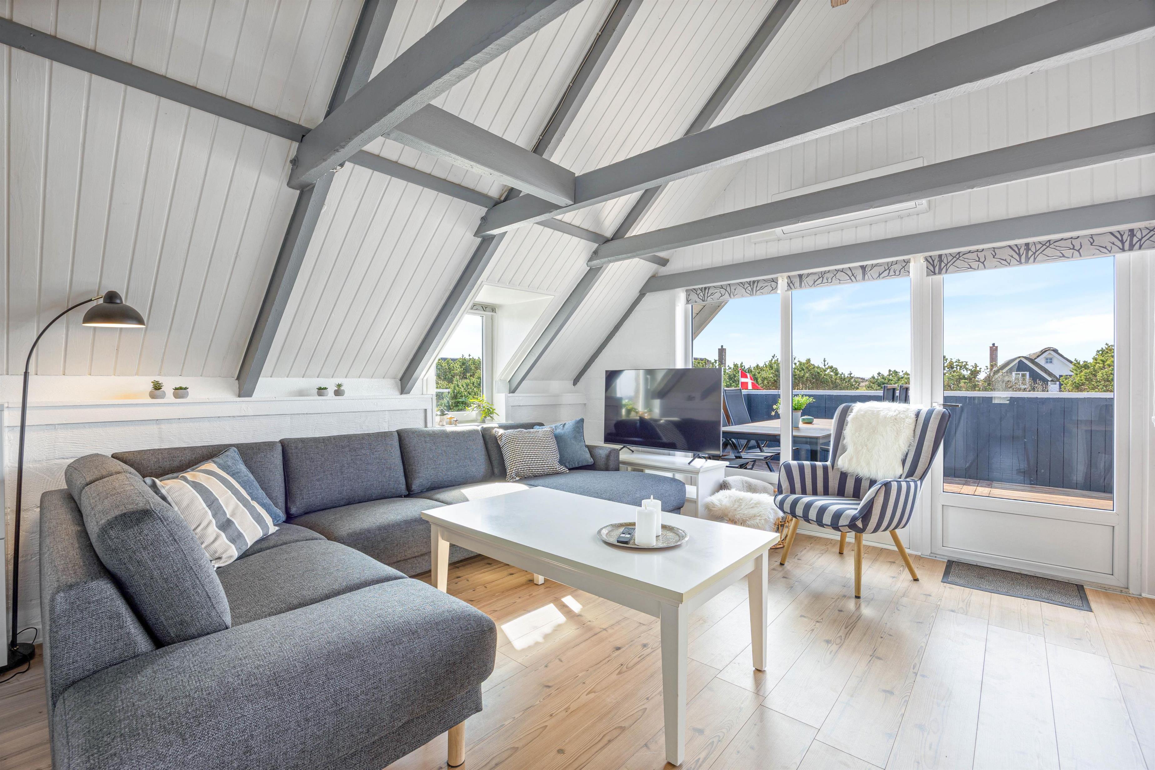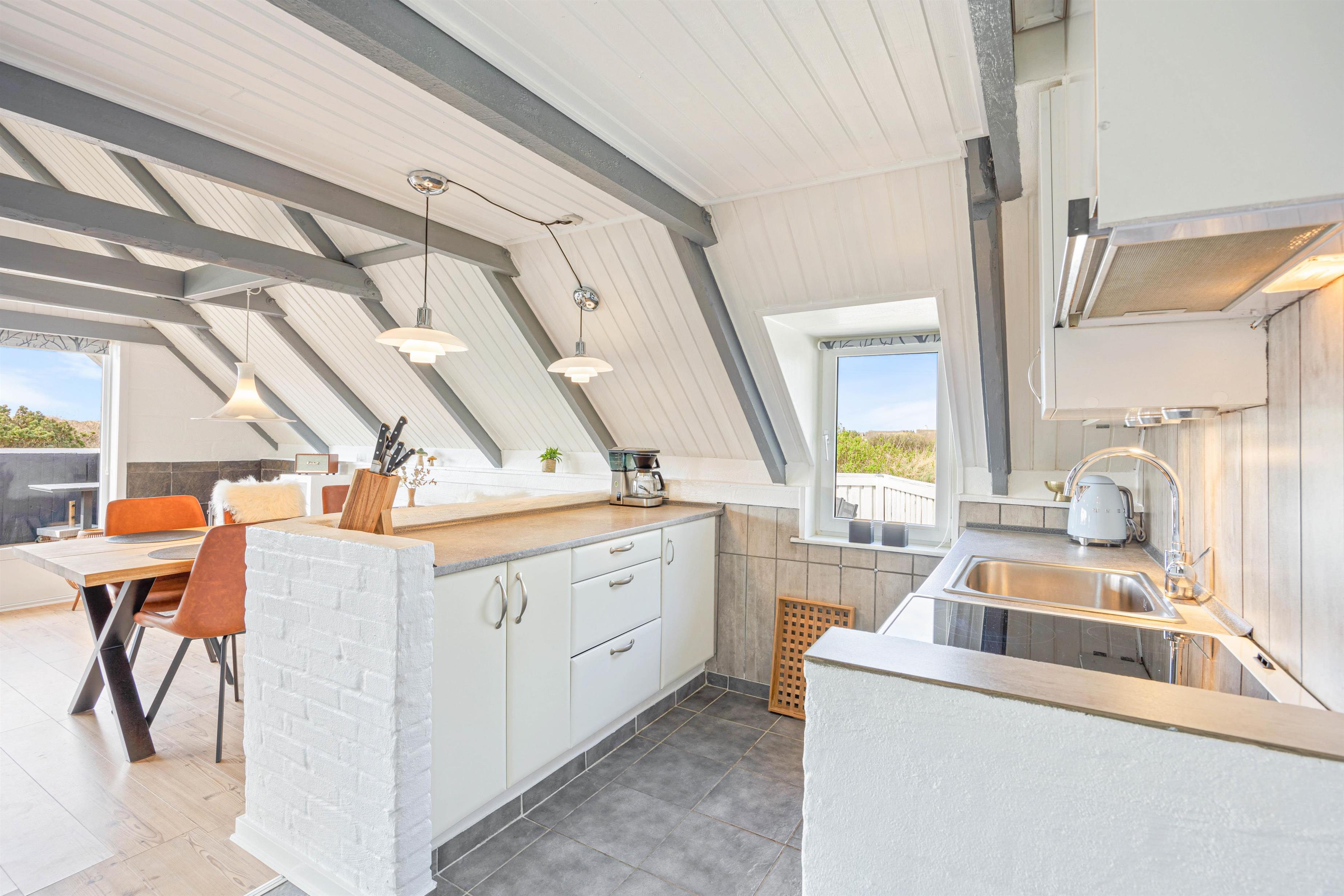 De 6 sovepladser fordeler sig på 2 soveværelser og en hems, så der er god mulighed for at få en god nats søvn efter en dejlig dag. Gulvvarmen på sommerhusets badeværelse sikrer en behagelig start på dagen, selv på de køligere morgener.
