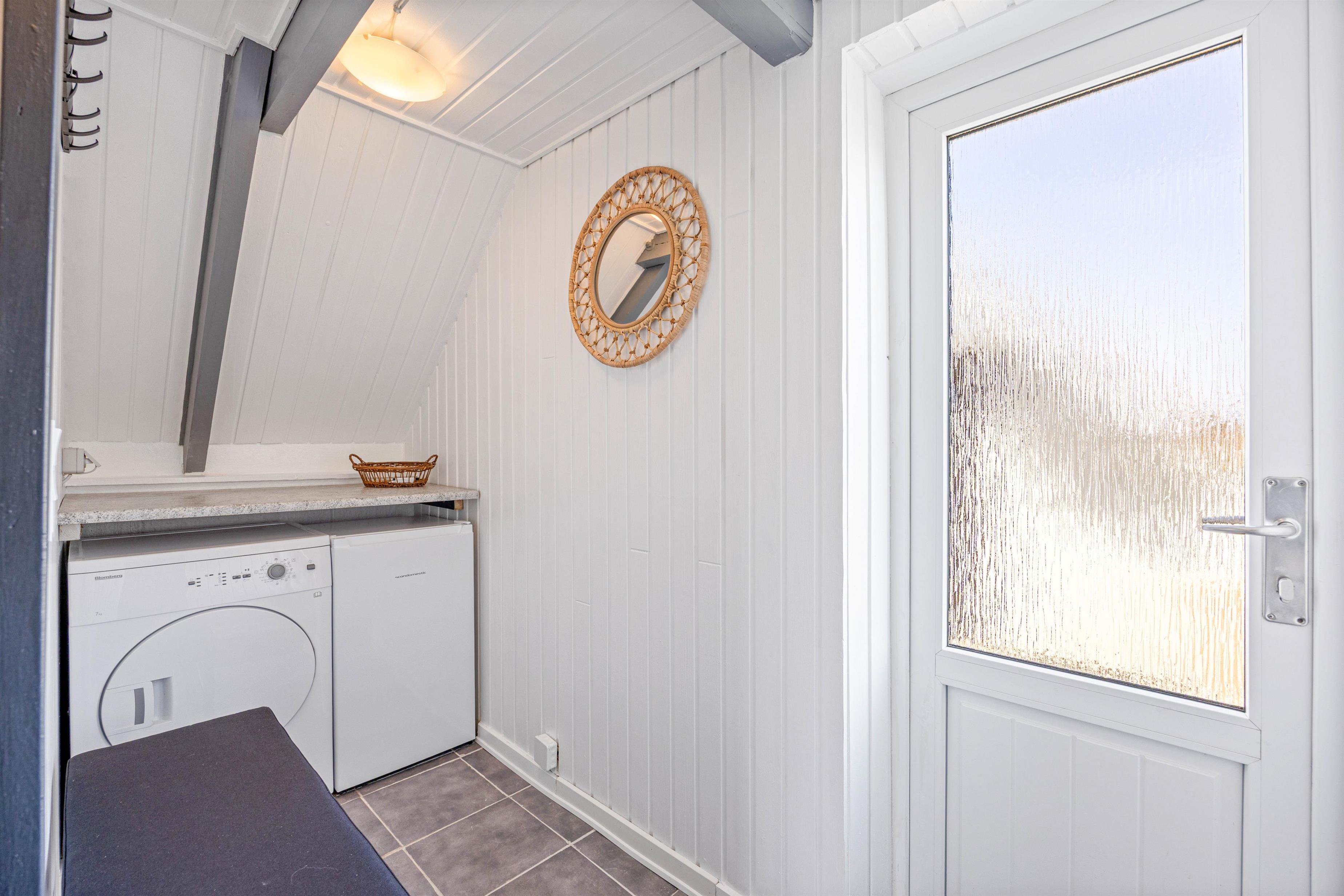 De praktiske gøremål skal I ikke bruge lang tid på, da der i sommerhuset både er opvaskemaskine og vaskemaskine.