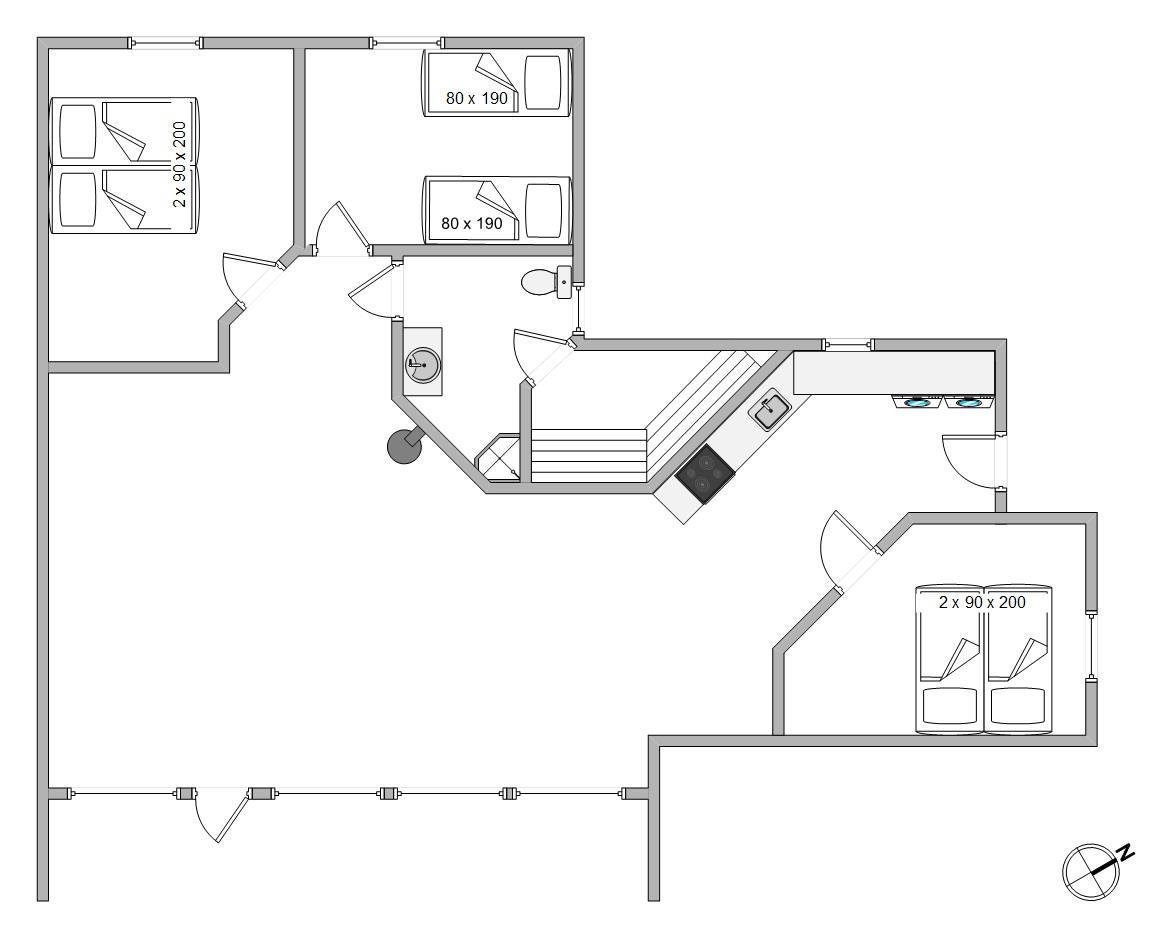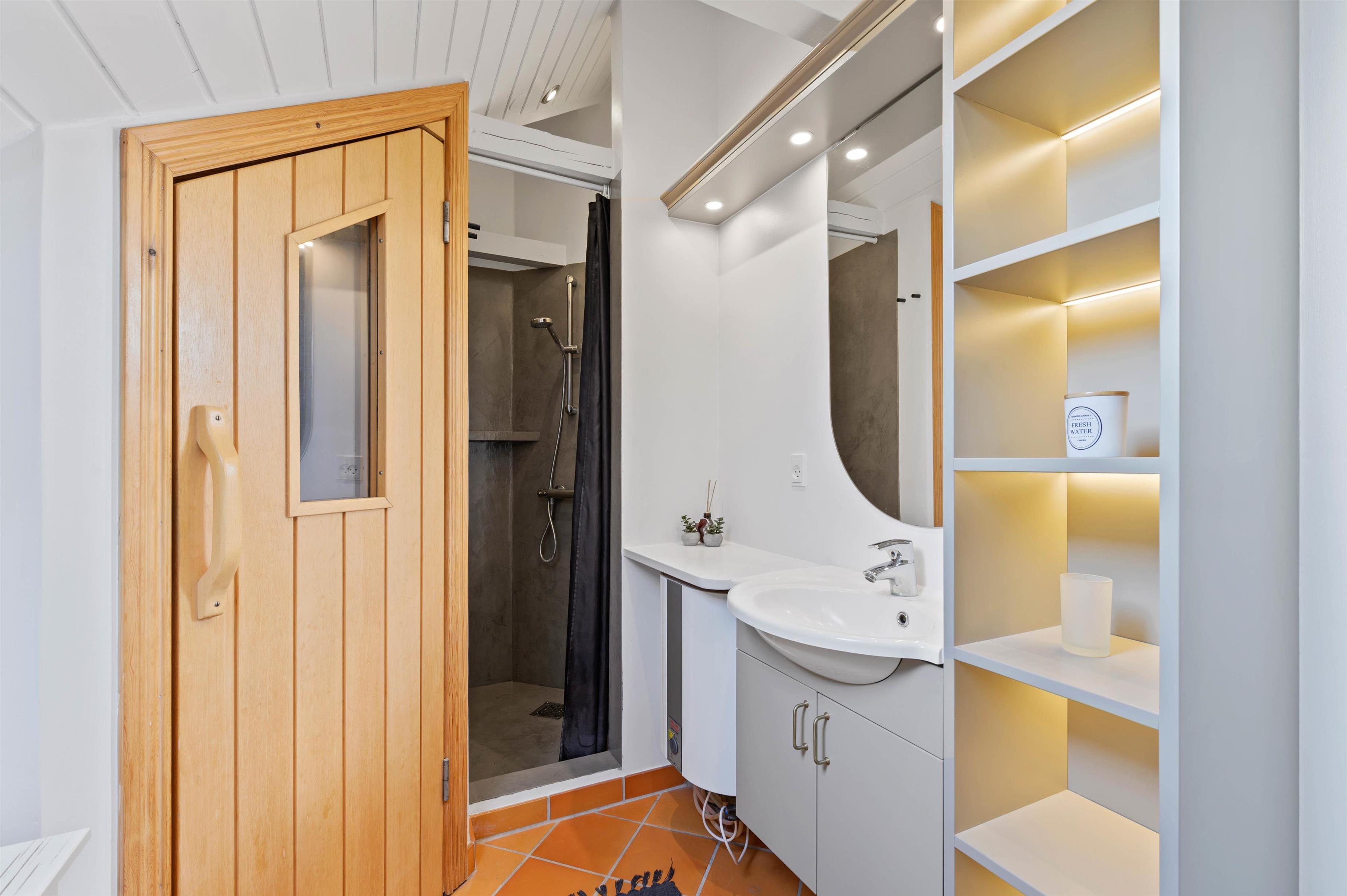 Feriehuset har 3 soveværelser samt et badeværelse med gulvvarme og sauna. I saunaen kan I trække jer tilbage og slappe af eventuelt efter en dukkert i det brusende Vesterhav.