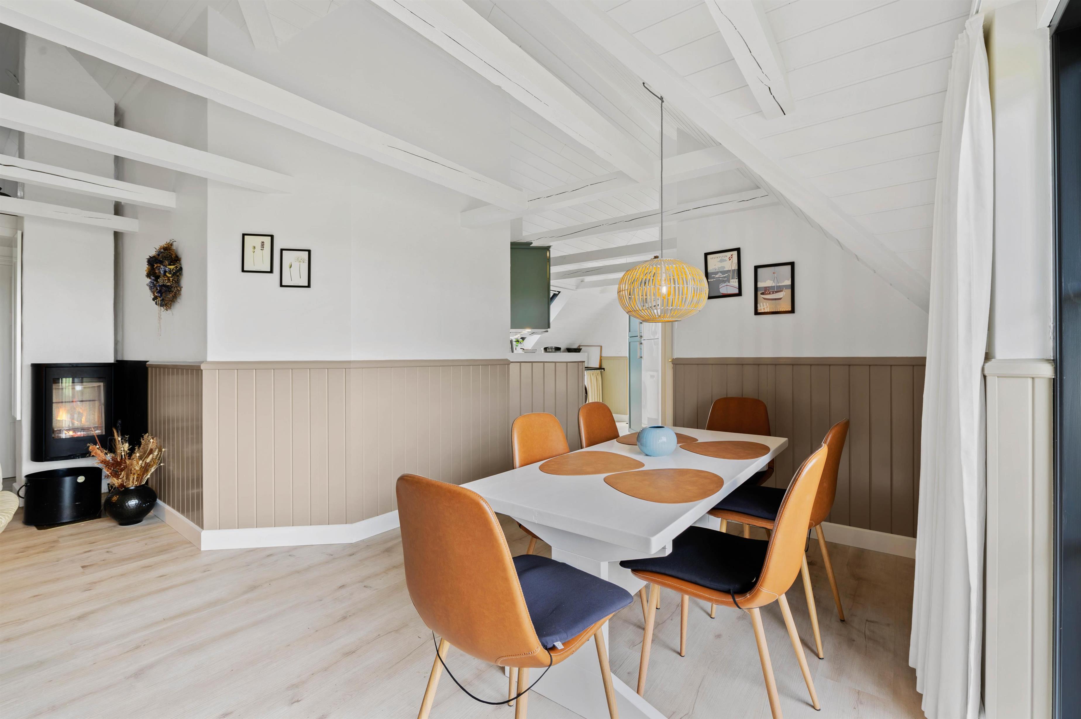 Feriehus med brændeovn samt moderne og lys indretning