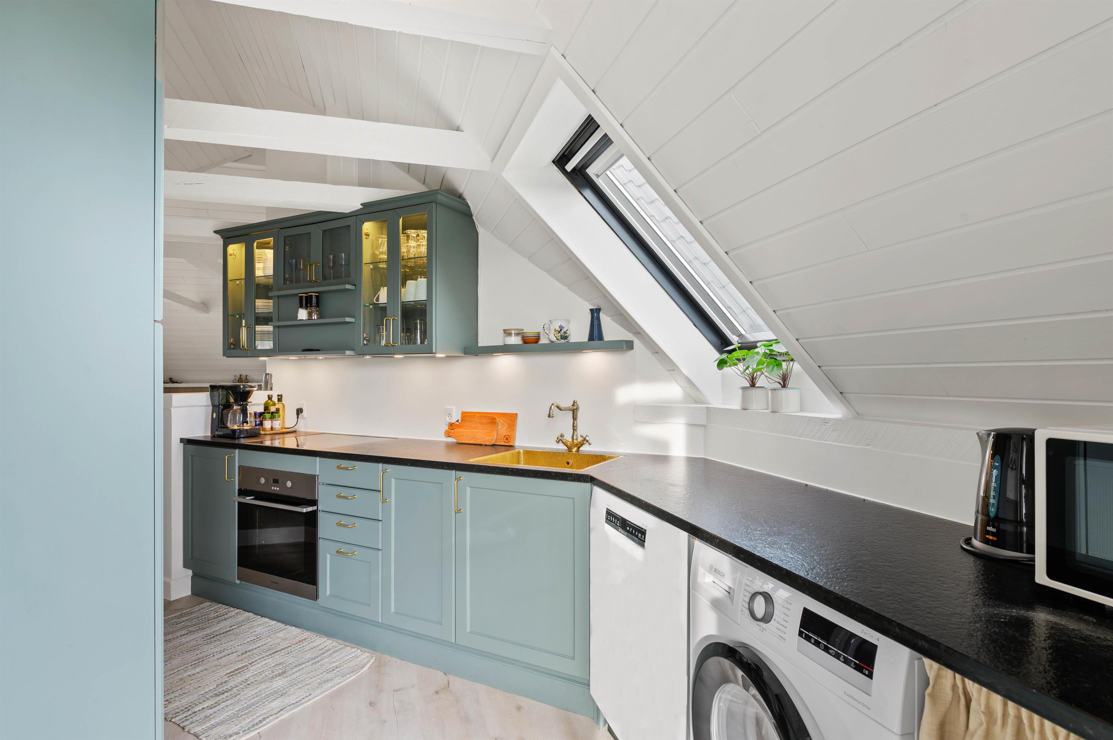 Det renoverede sommerhus er moderne og lyst indrettet med komfortable møbler. I køkkenet finder I både opvaskemaskine og vaskemaskine, så dagens gøremål kan klares nemt og hurtigt. I den store lyse stue kan I slå jer ned i sofaen og tænde op i brændeovnen og suge varmen til jer. De knitrende gløder i flammerne spreder en særlig hyggestemning og byder ind til filmhygge med dyner og popcorn. Huset opvarmes dog også af en energibesparende luft til luft varmepumpe, som er særlig effektiv.