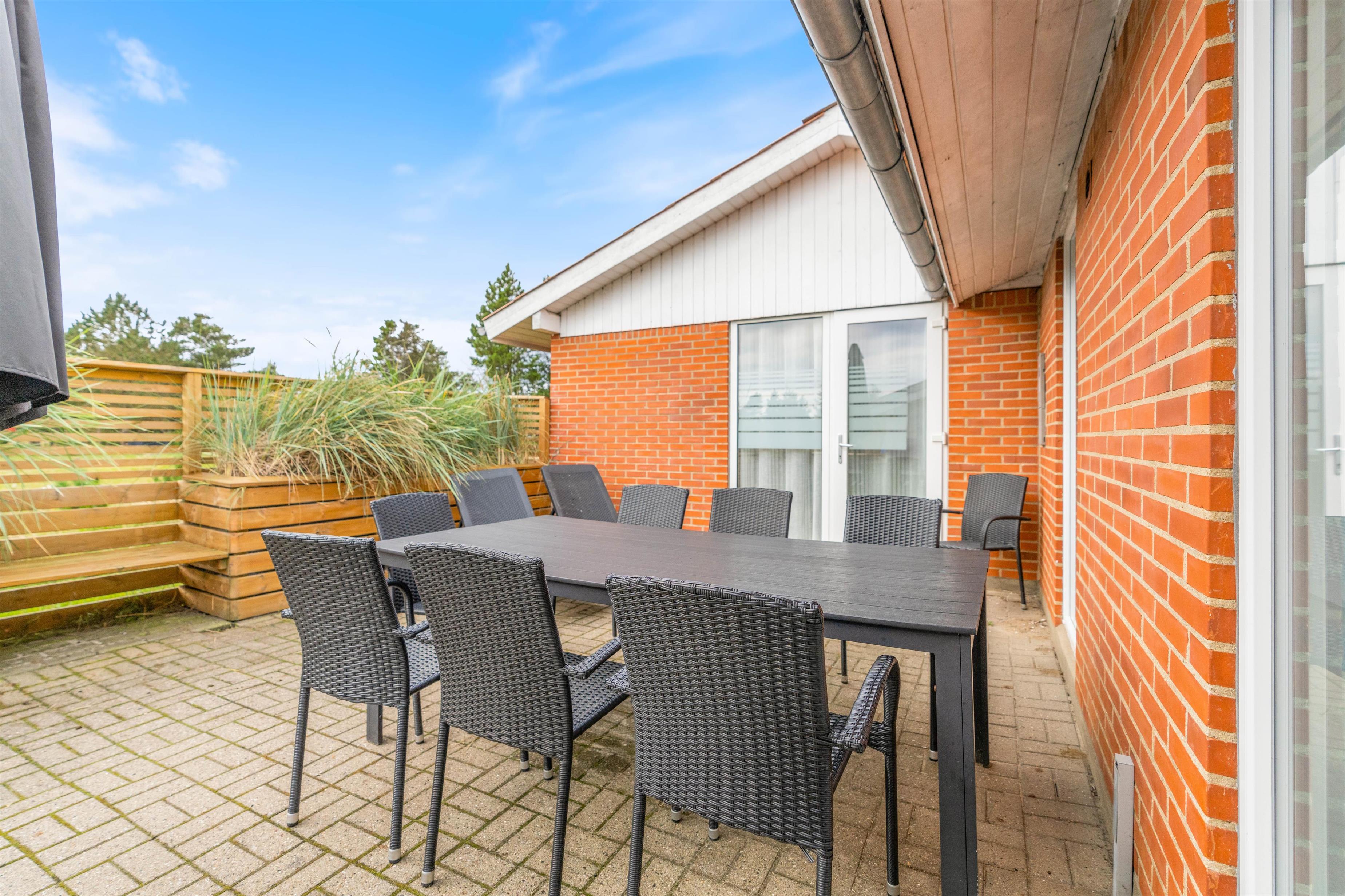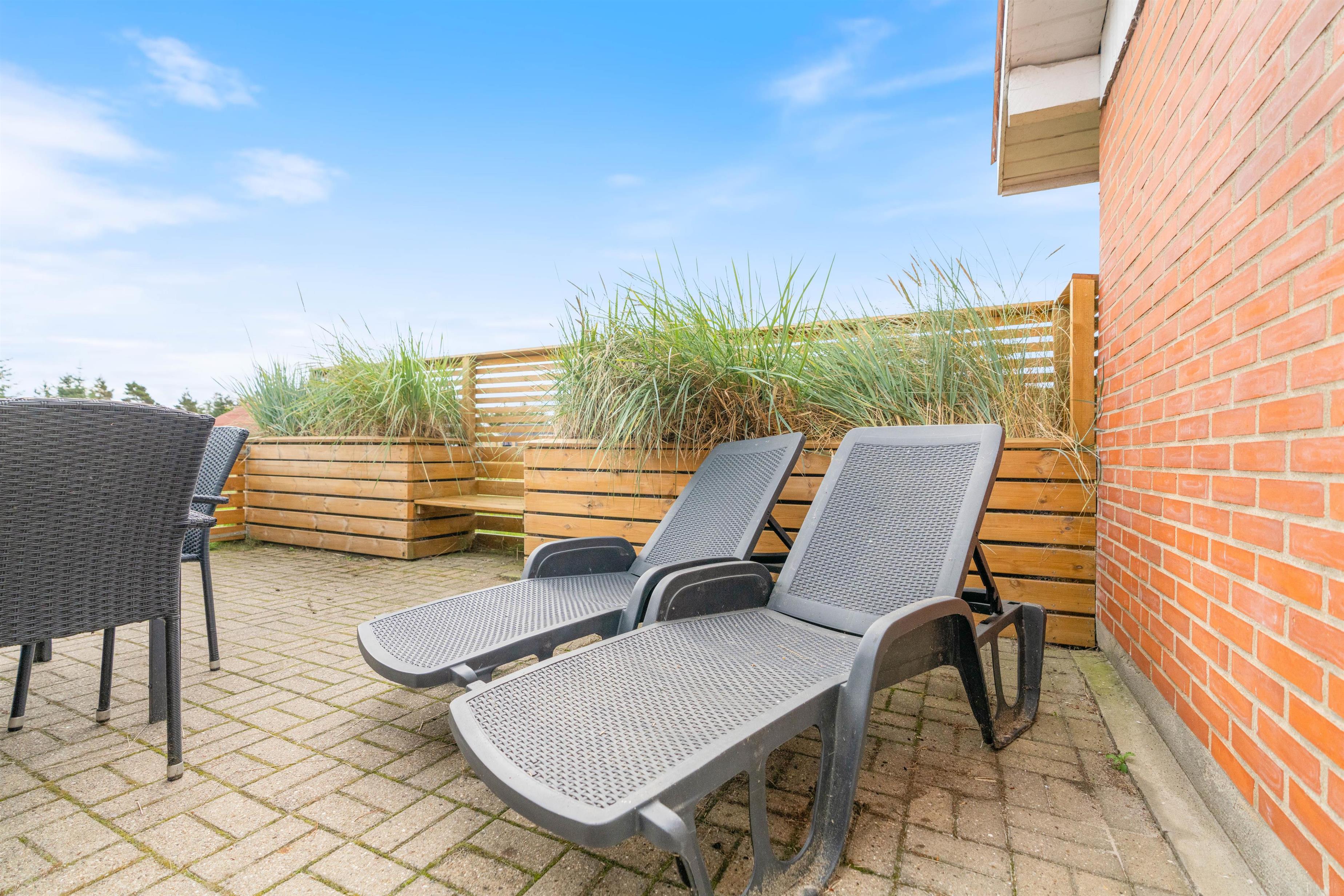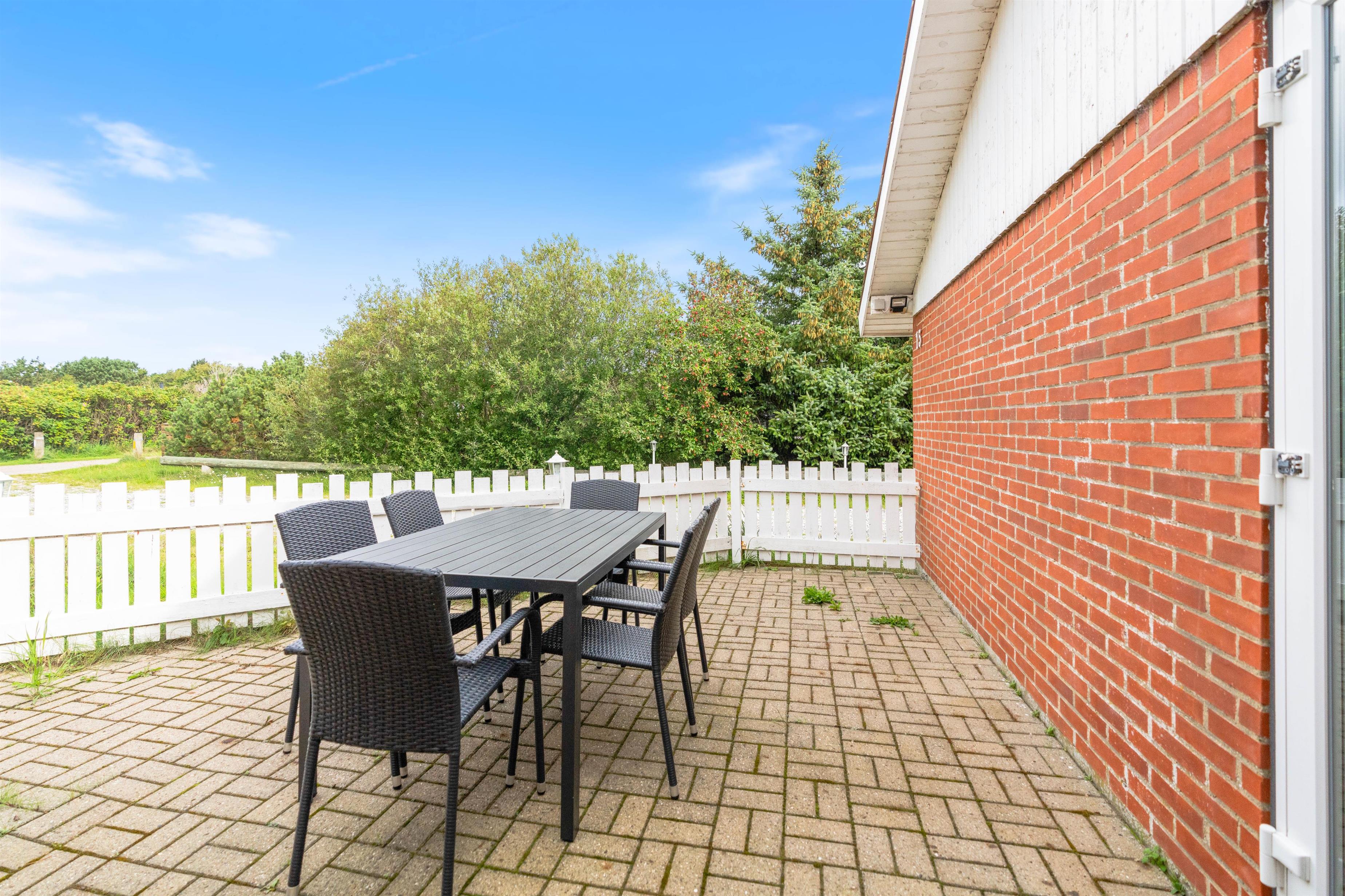 Fra spisestuen og poolrummet er der direkte adgang til feriehusets sydvendte terrasse. Fra stuen kommer I ud på den nordvestvendte terrasse. Begge terrasser er fuldt lukkede, så evt. børn og hunde ikke tager på tur uden ledsager. Begge terrasser er skønne til at spise aftensmad på eller blot nyde solen og den friske havluft.