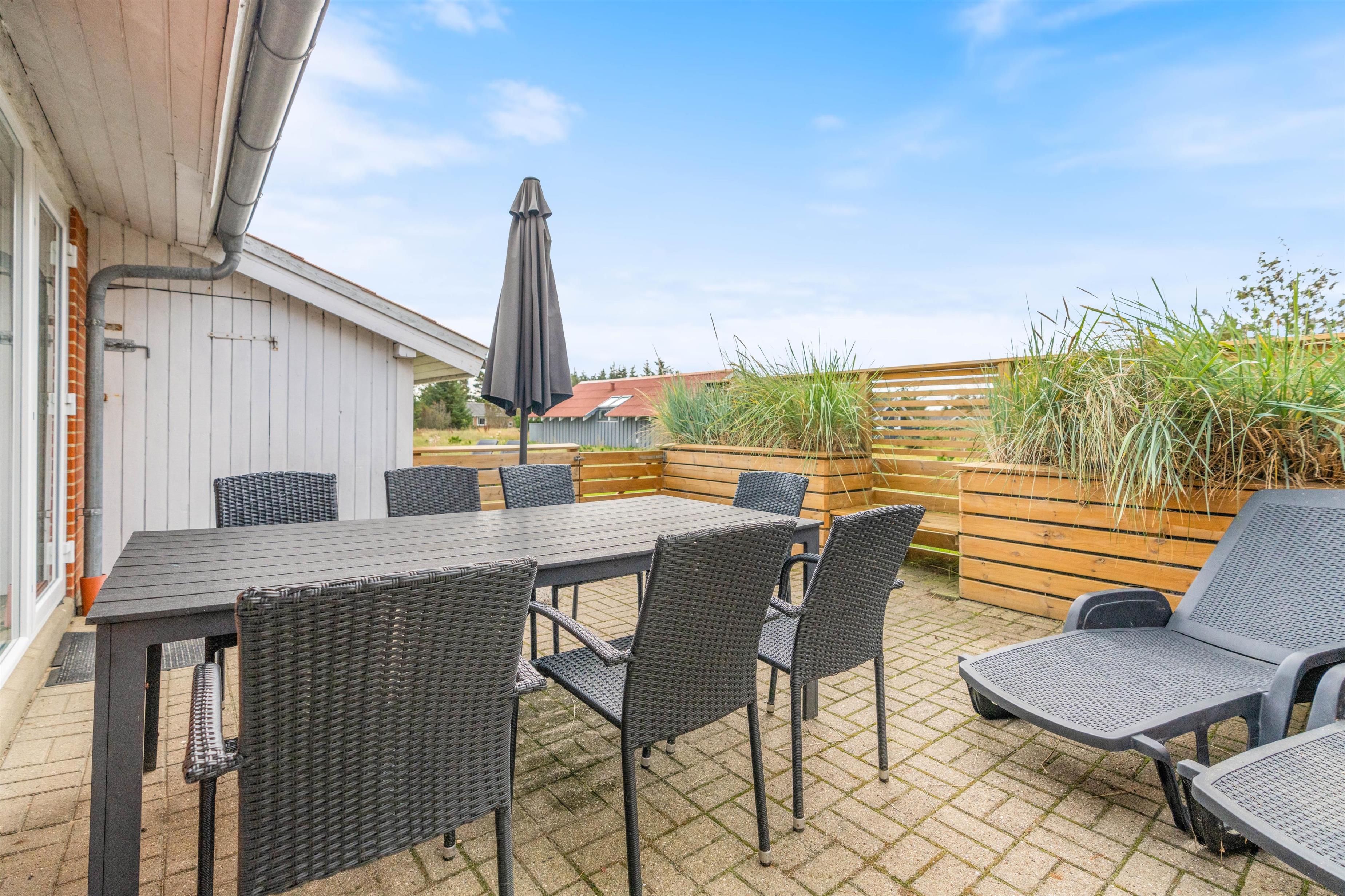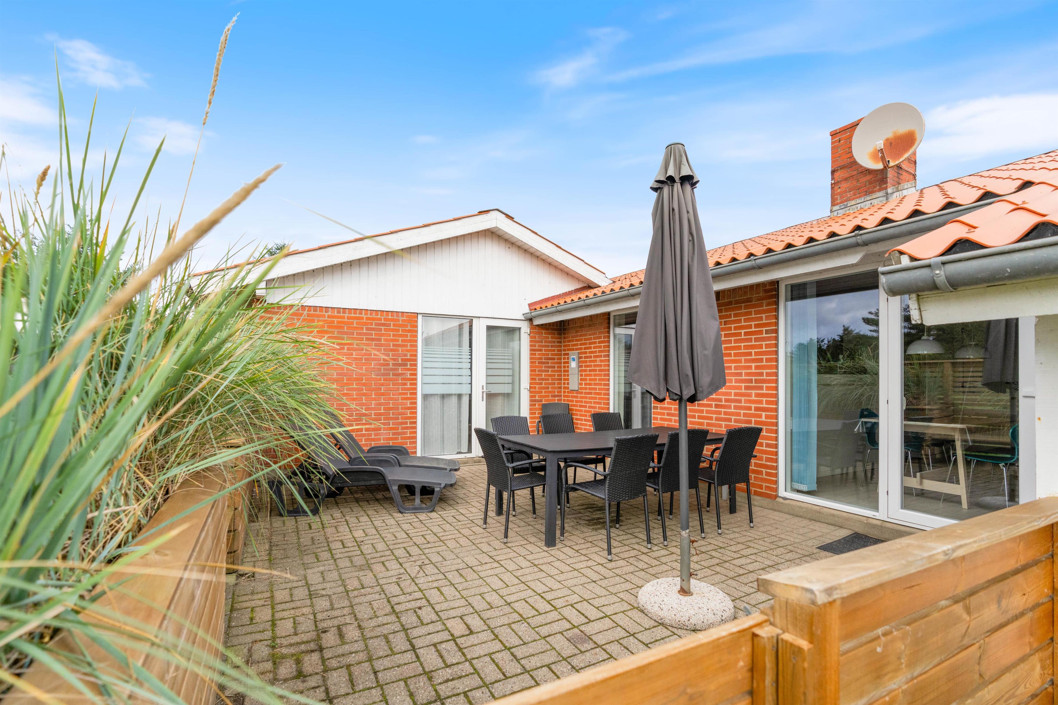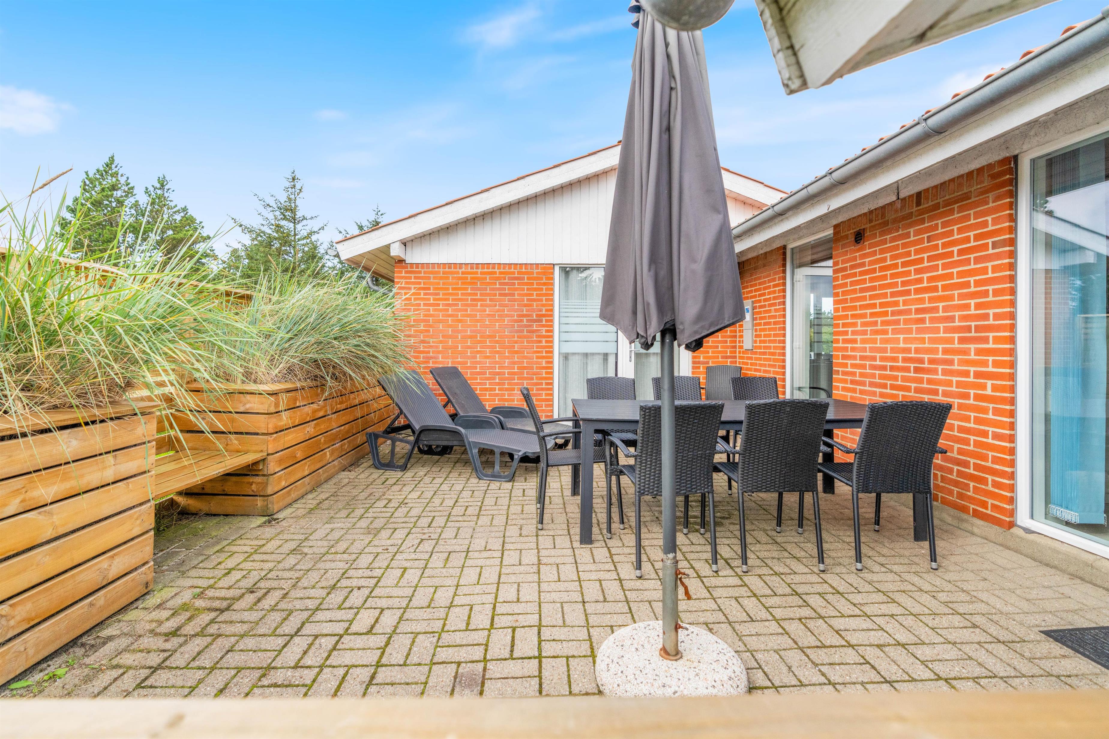Fra spisestuen og poolrummet er der direkte adgang til feriehusets sydvendte terrasse. Fra stuen kommer I ud på den nordvestvendte terrasse. Begge terrasser er fuldt lukkede, så evt. børn og hunde ikke tager på tur uden ledsager. Begge terrasser er skønne til at spise aftensmad på eller blot nyde solen og den friske havluft.