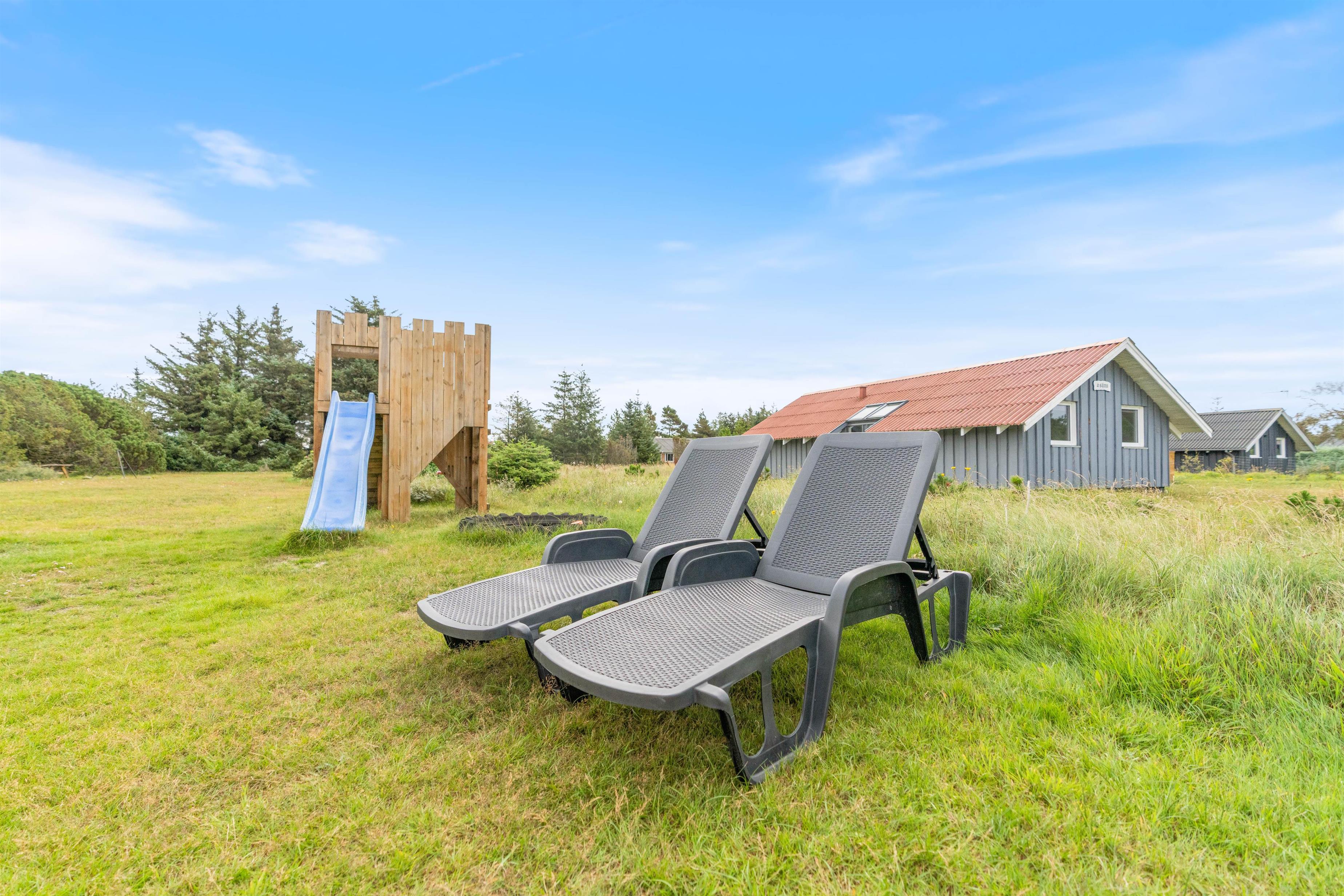Den over 2000 kvadratmeter store plæne- og naturgrund byder derudover på masser af lege- og underholdningsmuligheder. Der er både et bålsted, gyngestativ med to gynger, et legetårn og to fodboldmål. Der er ingen grund til at kede sig, mens I er på ferie i Klegod.