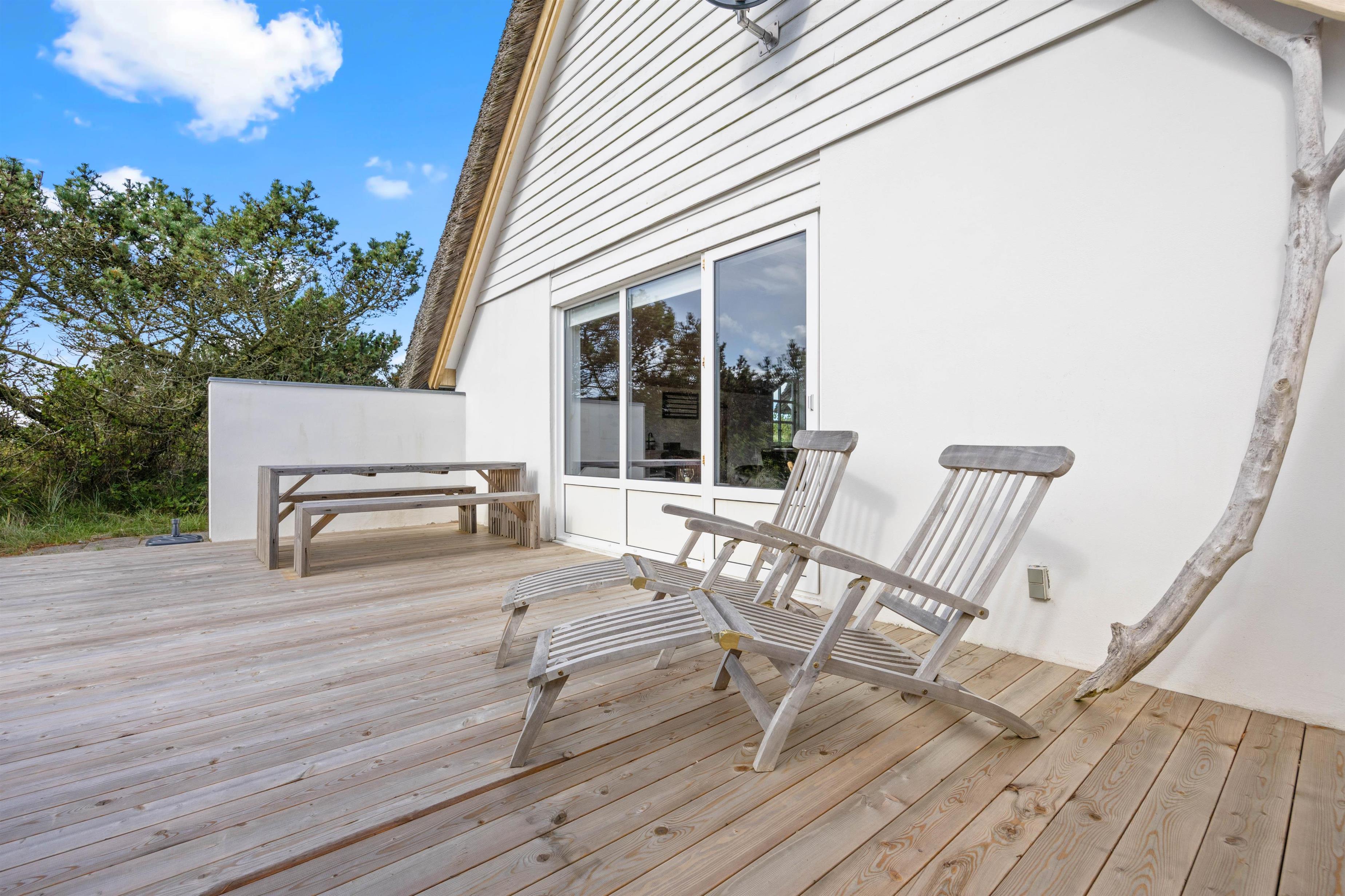 Omkring sommerhuset ligger der fliser, der forbinder sommerhusets forskellige terrasser. Med flere terrasser til rådighed vil I altid kunne finde en skøn plads i solen, hvor I kan finde jer til rette i havemøbler og liggestole.