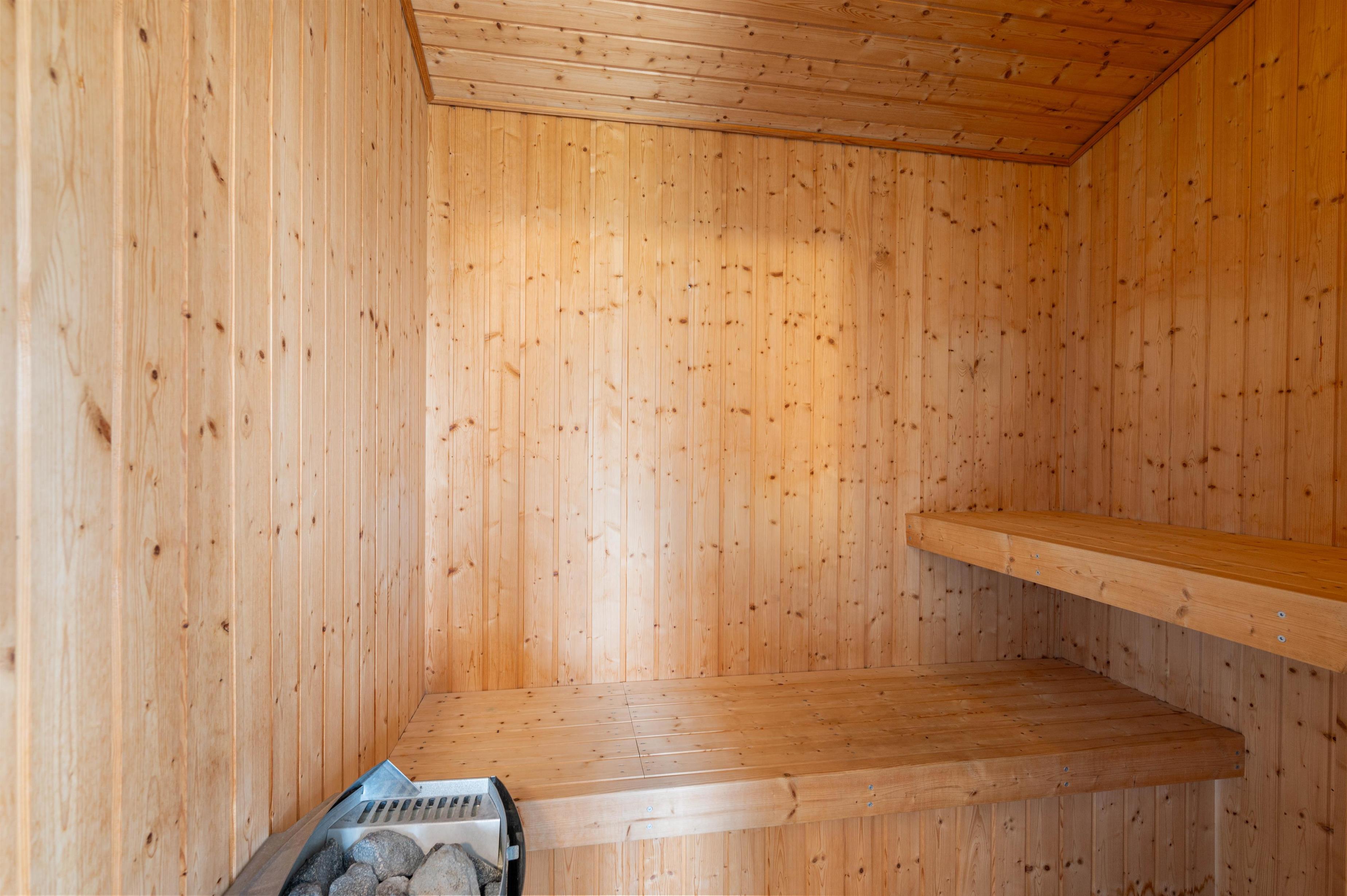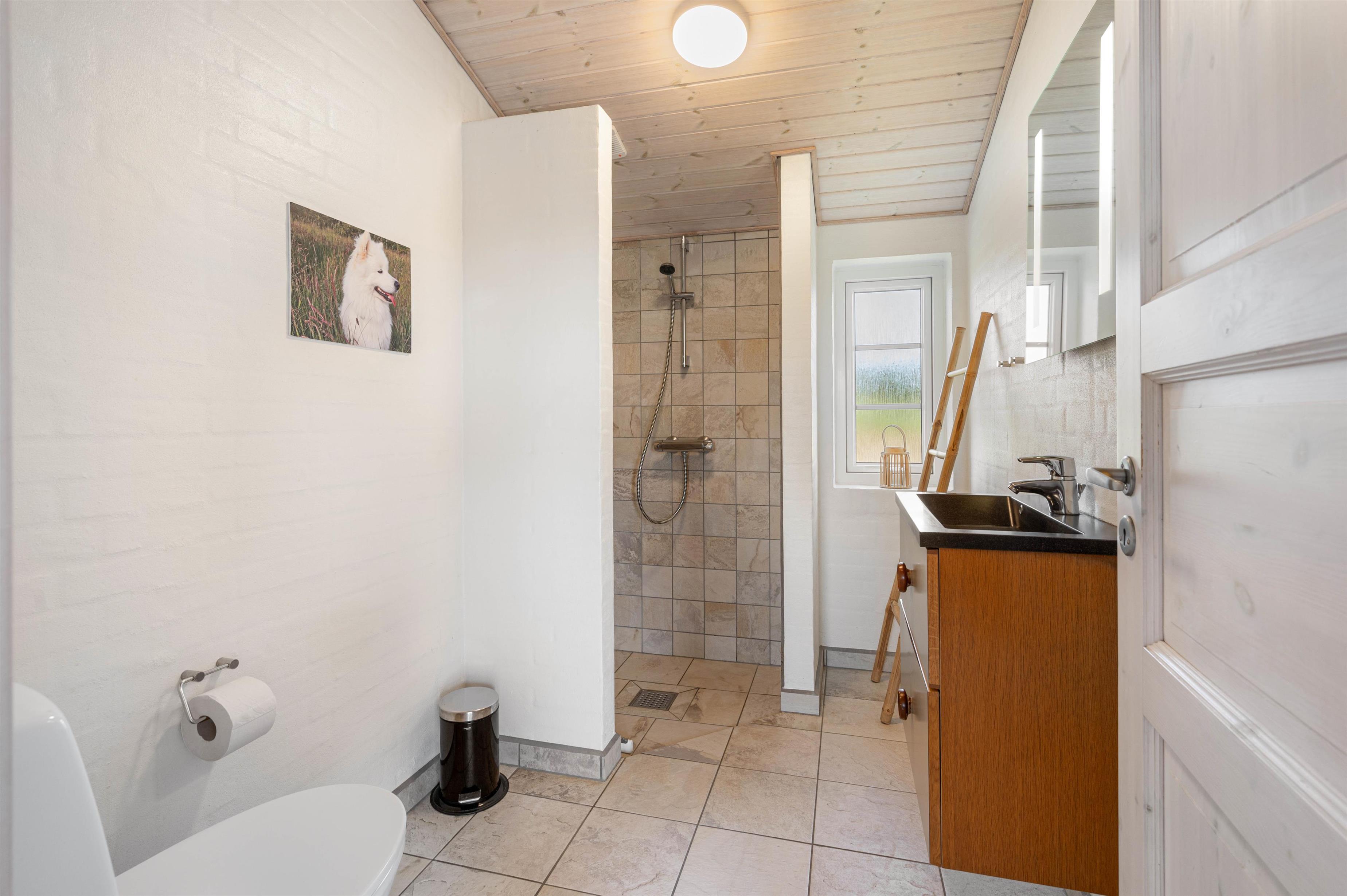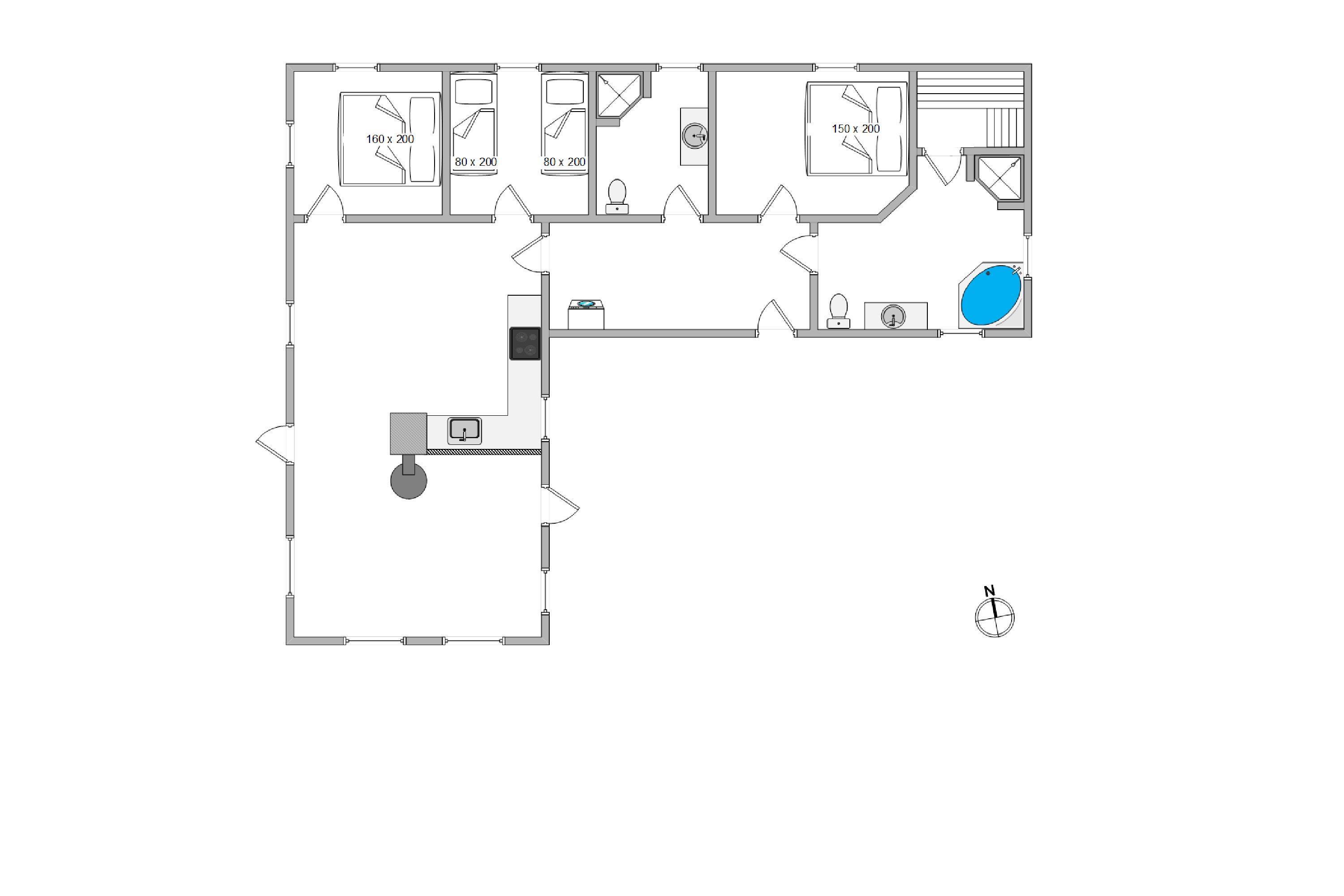 Luksussommerhuset har plads til 6 personer i de 3 gode soveværelser. Her er 2 soveværelser med dobbeltsenge og skabsplads, samt et soveværelse med 2 enkeltsenge og skabe. Alle soveværelser har gulvtæpper. De 2 flotte badeværelser er lækkert indrettede med bruser og gulvvarme. Det største badeværelse har desuden et dejligt boblebad til 2 personer samt en god sauna. Dejligt køkken/alrum i åben forbindelse med stuen. Køkkenet er udstyret med opvaskemaskine, mikroovn og køle- fryseskab. I stuen er den dejlige indmurede brændeovn centrum for rummets indretning. Nyd et glas vin i sofaen foran den knitrende ild, eller hyg jer med et spil kort ved spisebordet imens ilden brændeovnen sørger for hygge og varme. I den rummelige stue er der åbent til kip og masser af lysindfald gennem de store vinduespartier.