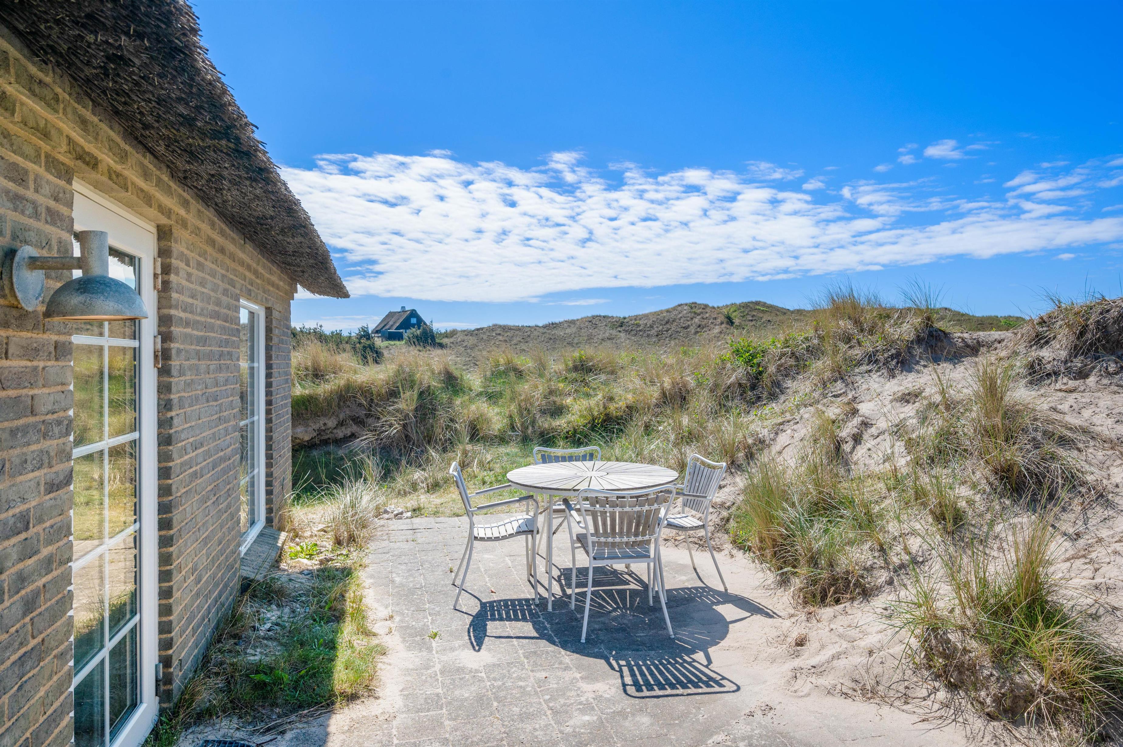På den afskærmet terrasse kan I nyde den smukke udsigt over det storslåede klitlandskab, slappe af på liggestolen eller holde en hyggelig grillaften. Her er gode læ muligheder.