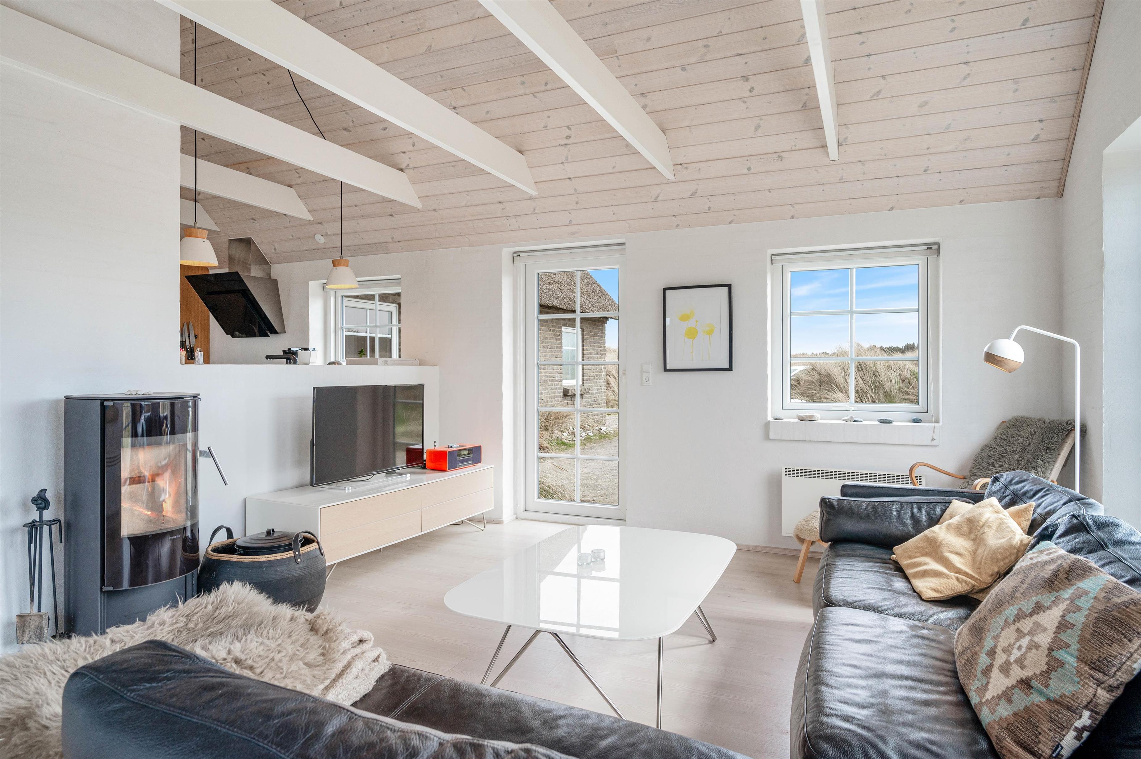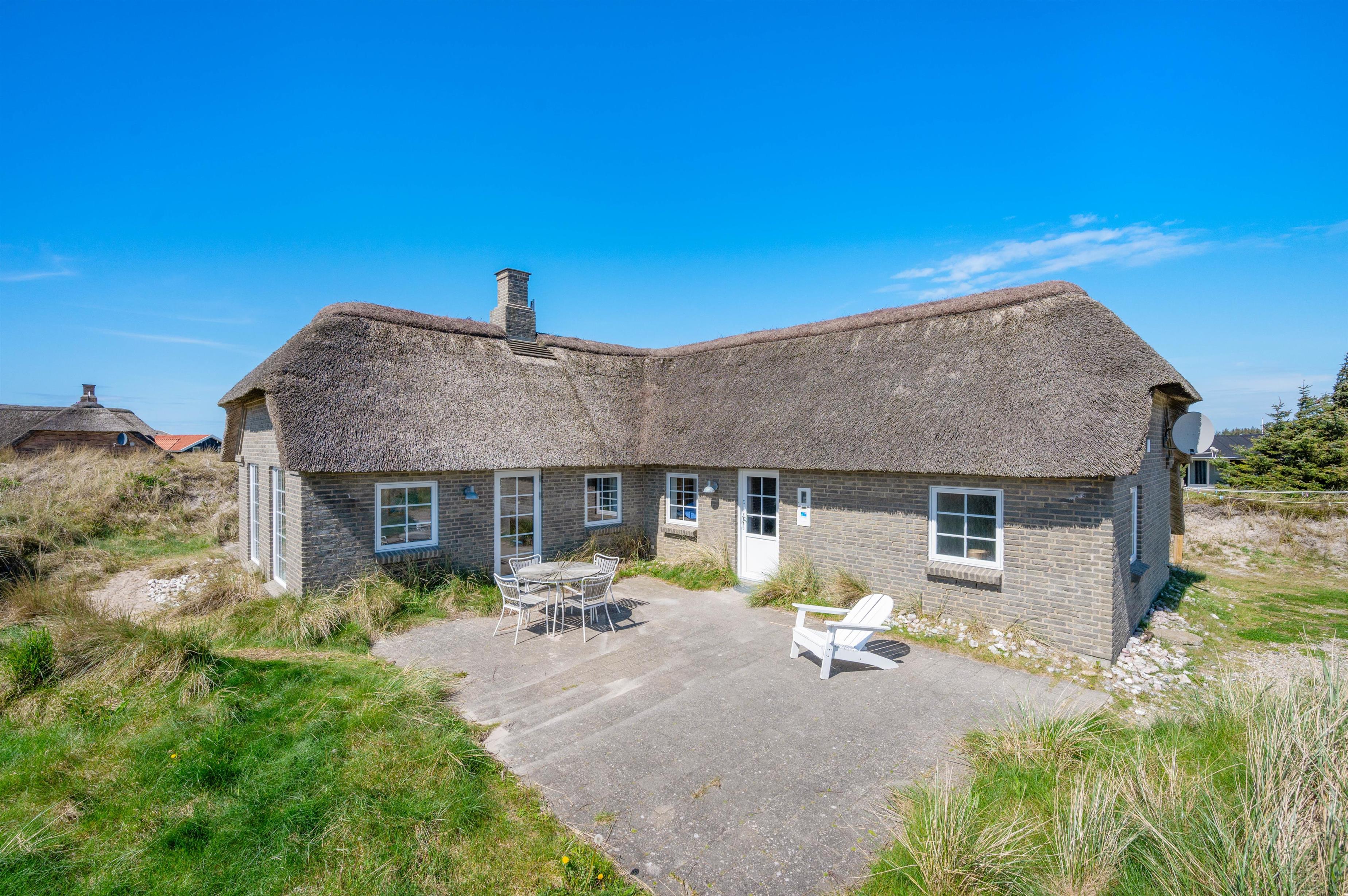 Med førsteklasses beliggenhed på en stor klitgrund ligger dette skønne luksussommerhus med stråtag. Huset er opført i de bedste materialer og i samme stil, som de smukke gamle klitgårde, der er karakteristiske for Holmsland Klit.